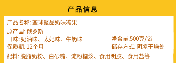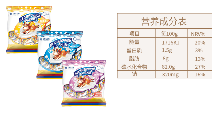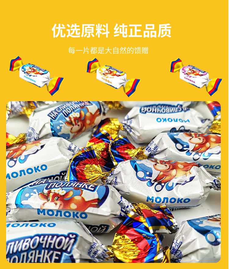 【中欧班列精选】WWJ俄罗斯QQZP奶油味糖果 太妃味糖果 原味糖果 三种口味500g