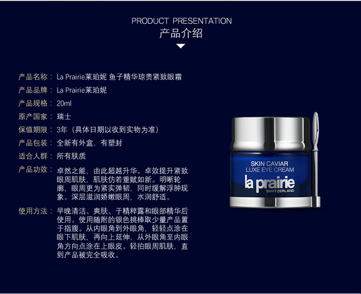 瑞士 LA PRAIRIE莱珀妮 琼贵鱼子紧致提升抚纹眼霜 20ml