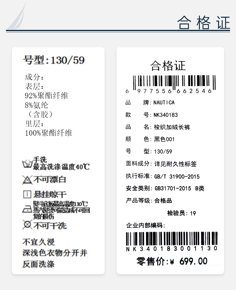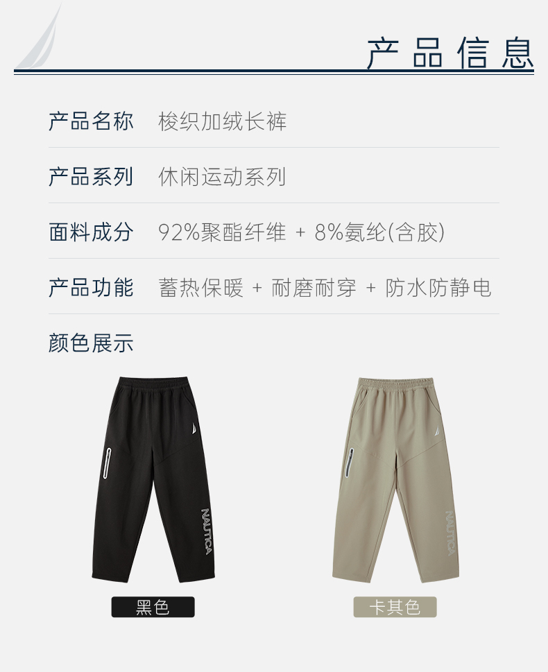 NAUTICA诺帝卡童装 梭织加绒长裤 NK340183 商品图8