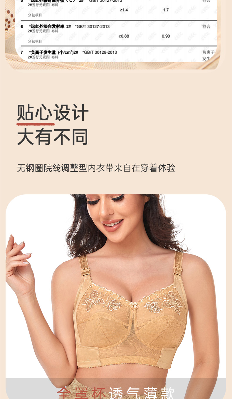 全罩杯,大胸显小,无钢圈,超强侧收,蔷薇花园短款调整型文胸