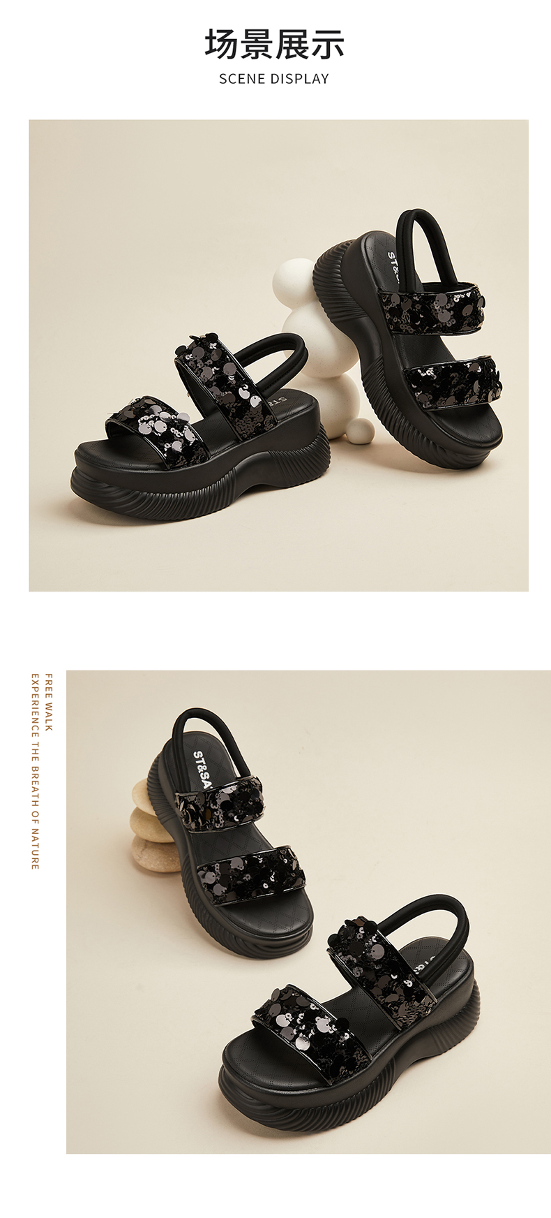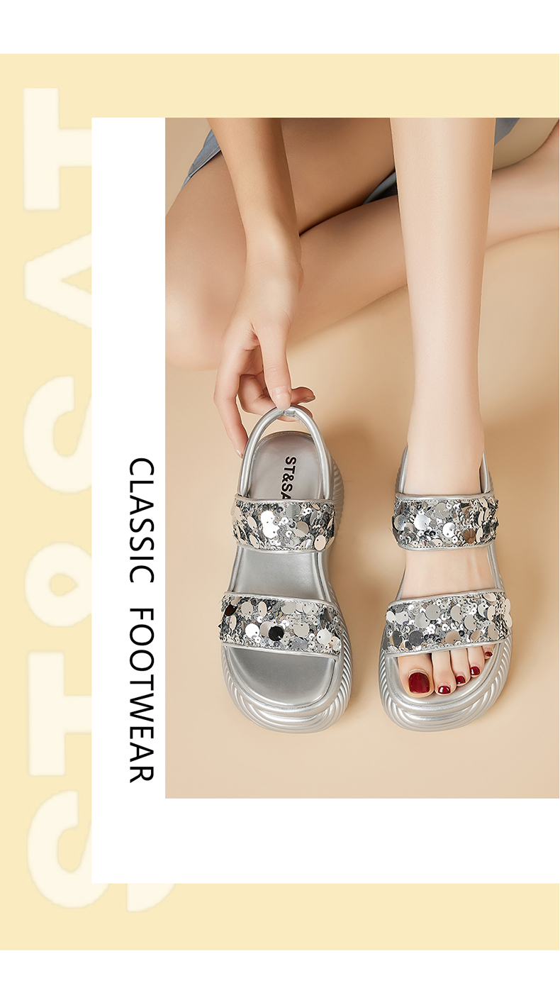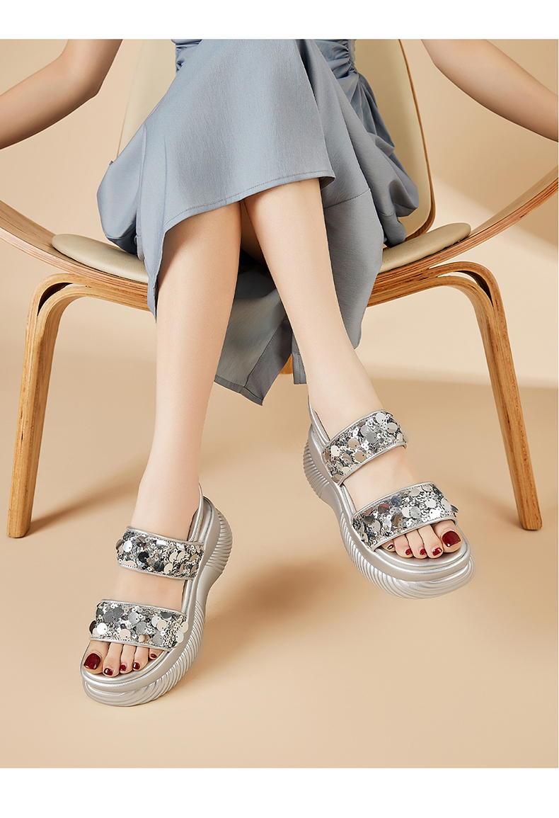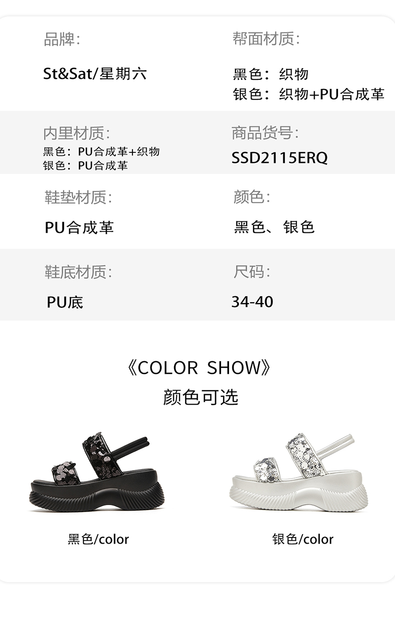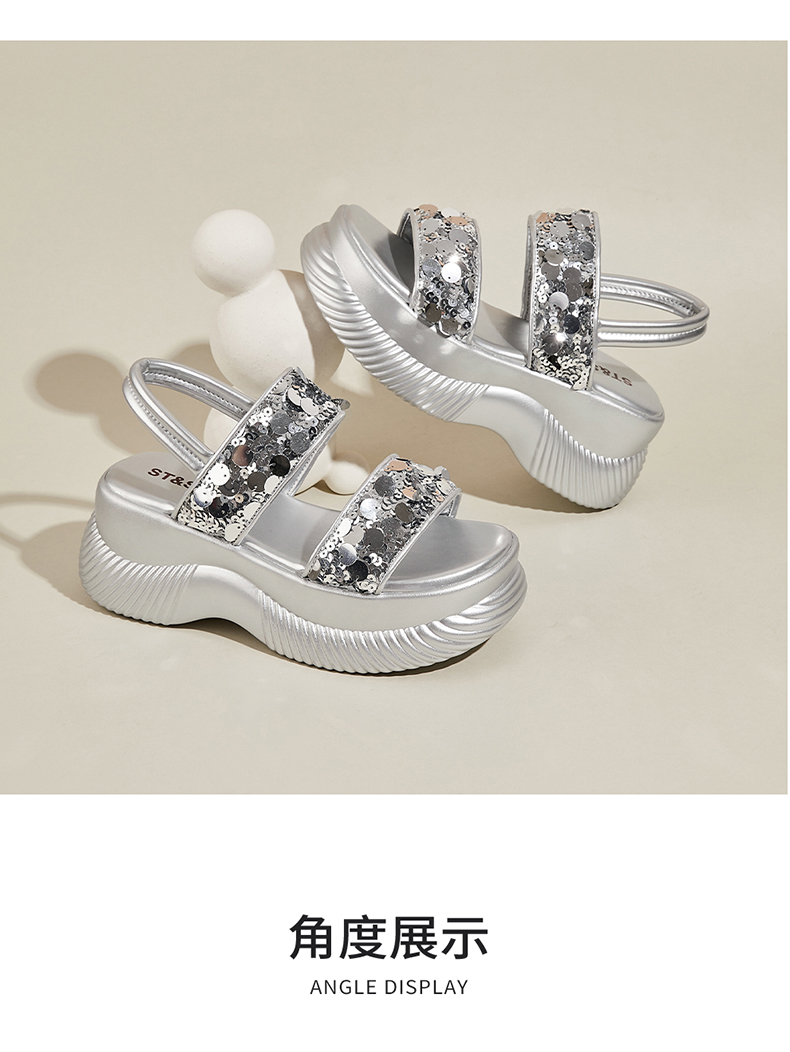 【7CM增高】星期六时尚百搭亮片凉鞋SSD2115ERQ