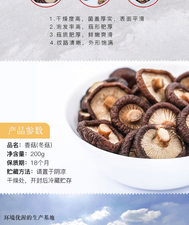 香菇家庭实惠袋装200g ,每个直径≥4cm,泡发率高,不添加防腐剂、无硫磺熏蒸
