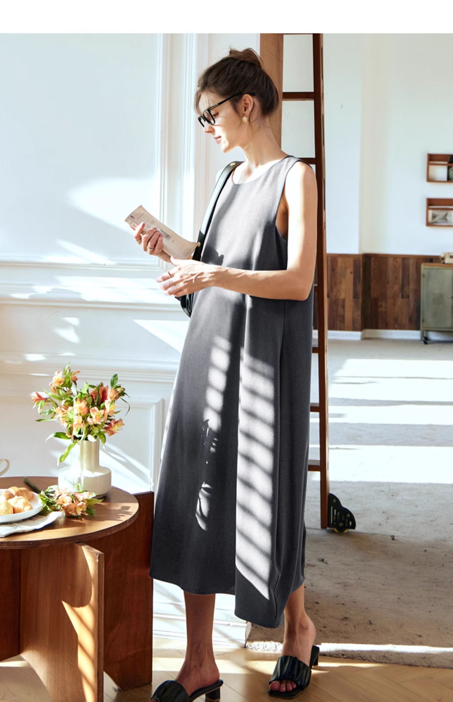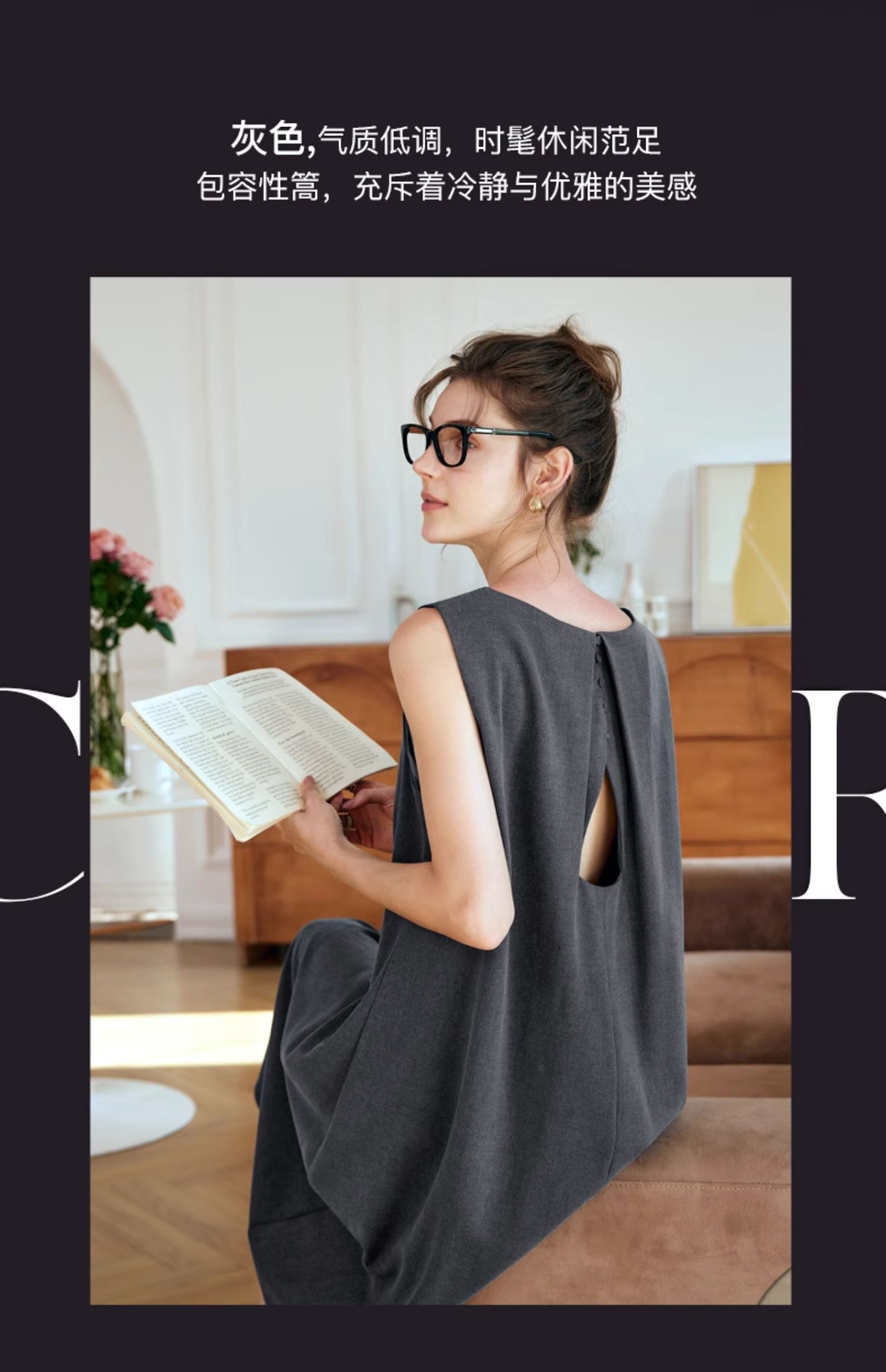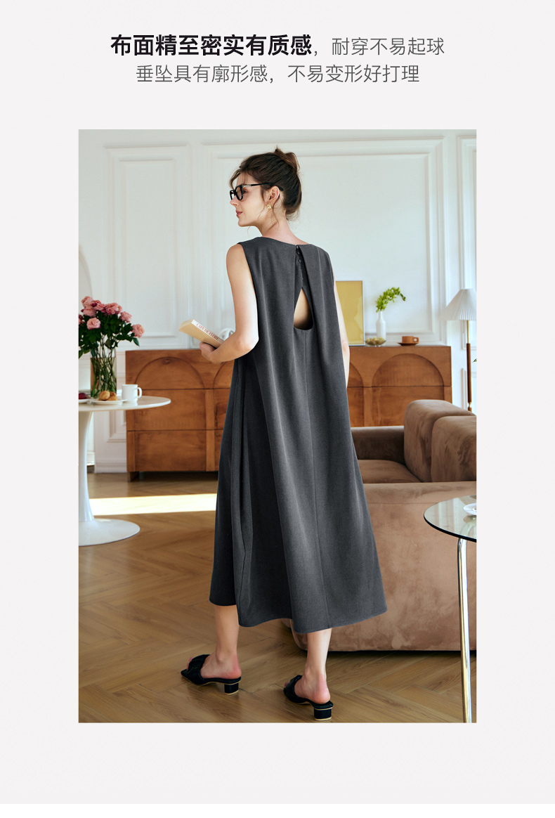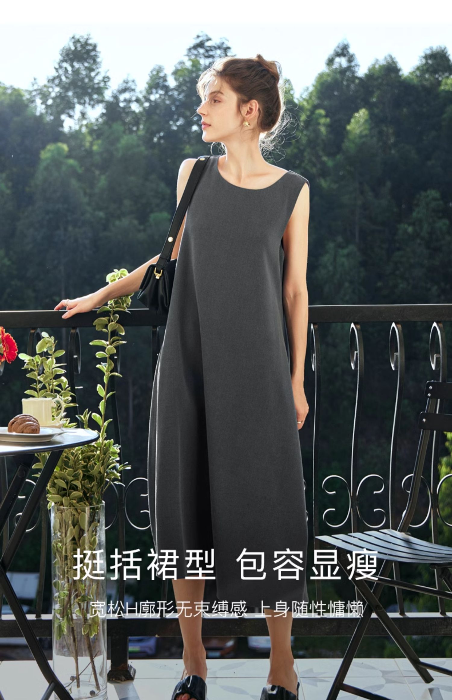 OLrain欧芮儿灰色无袖连衣裙女早春2024年新款简约气质慵懒长裙