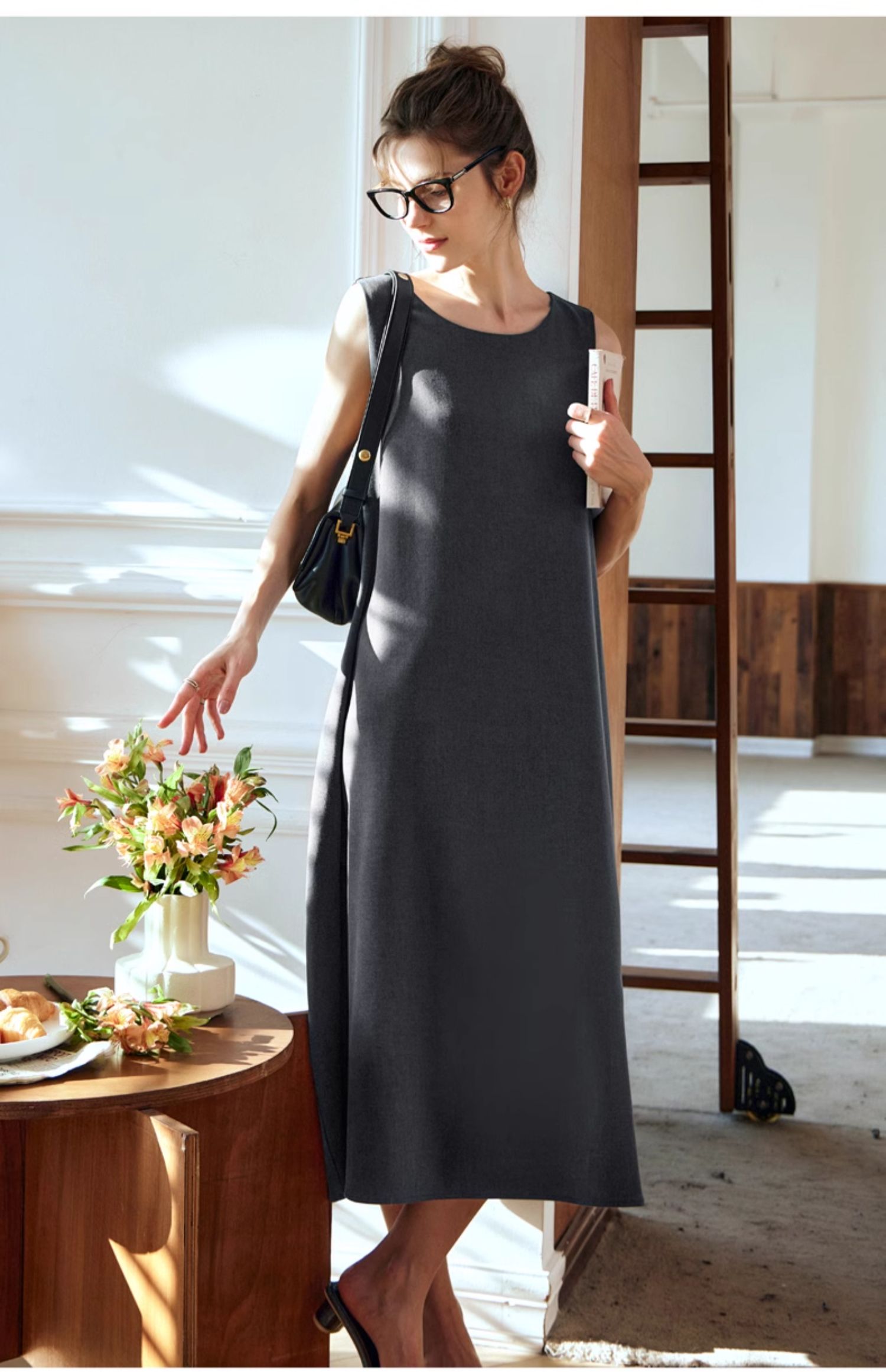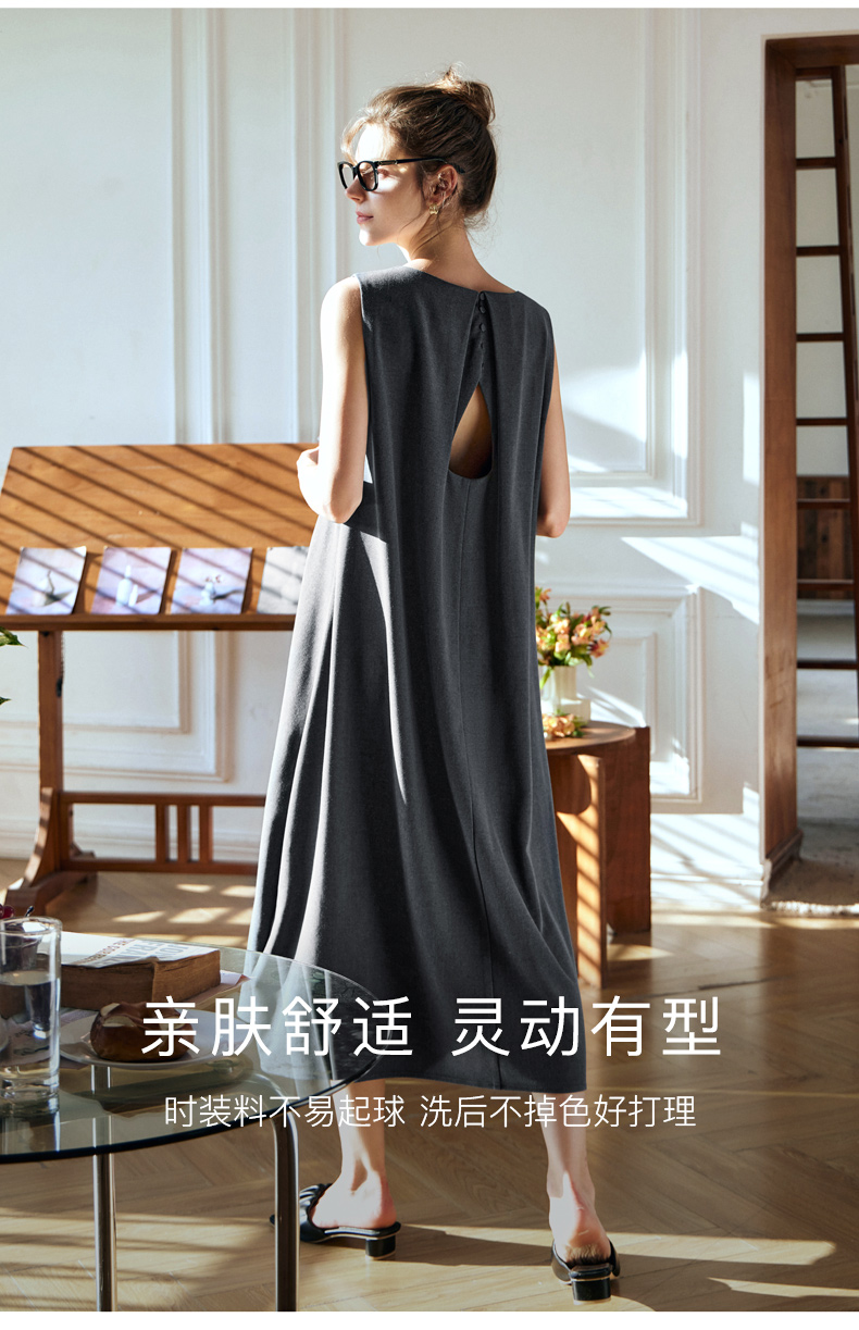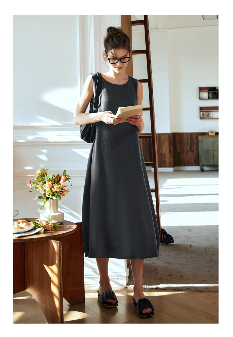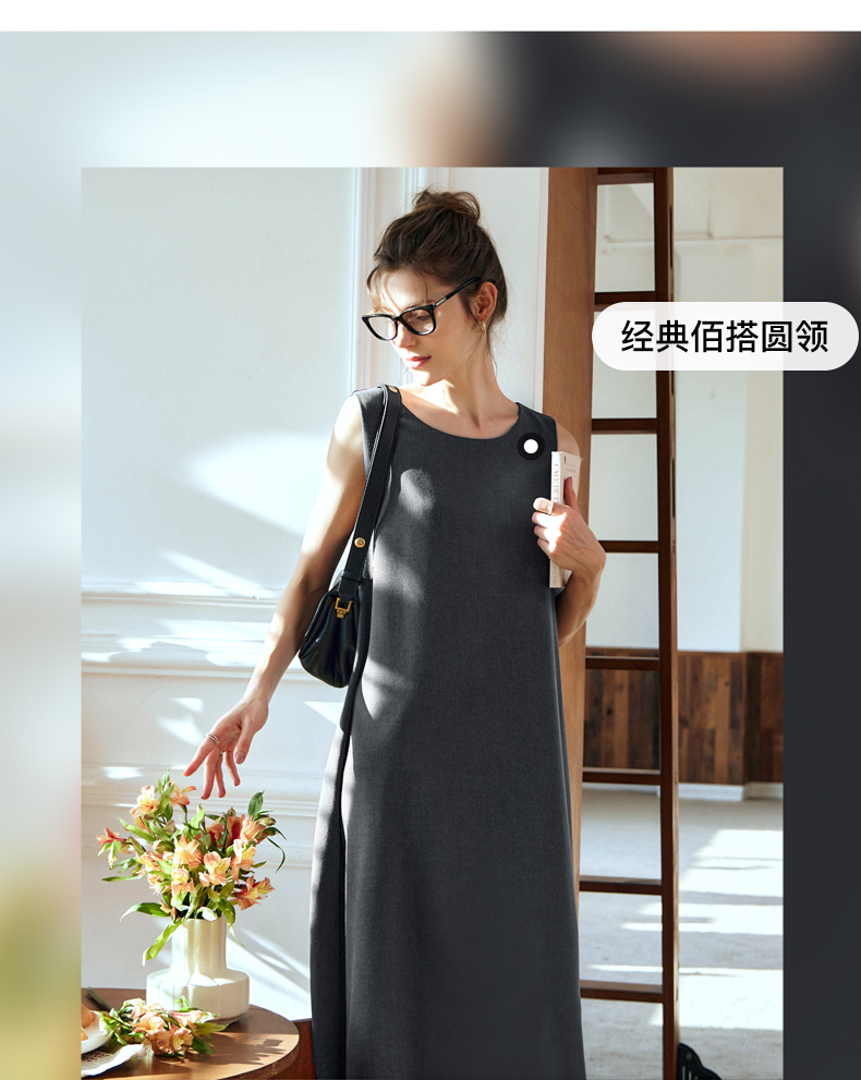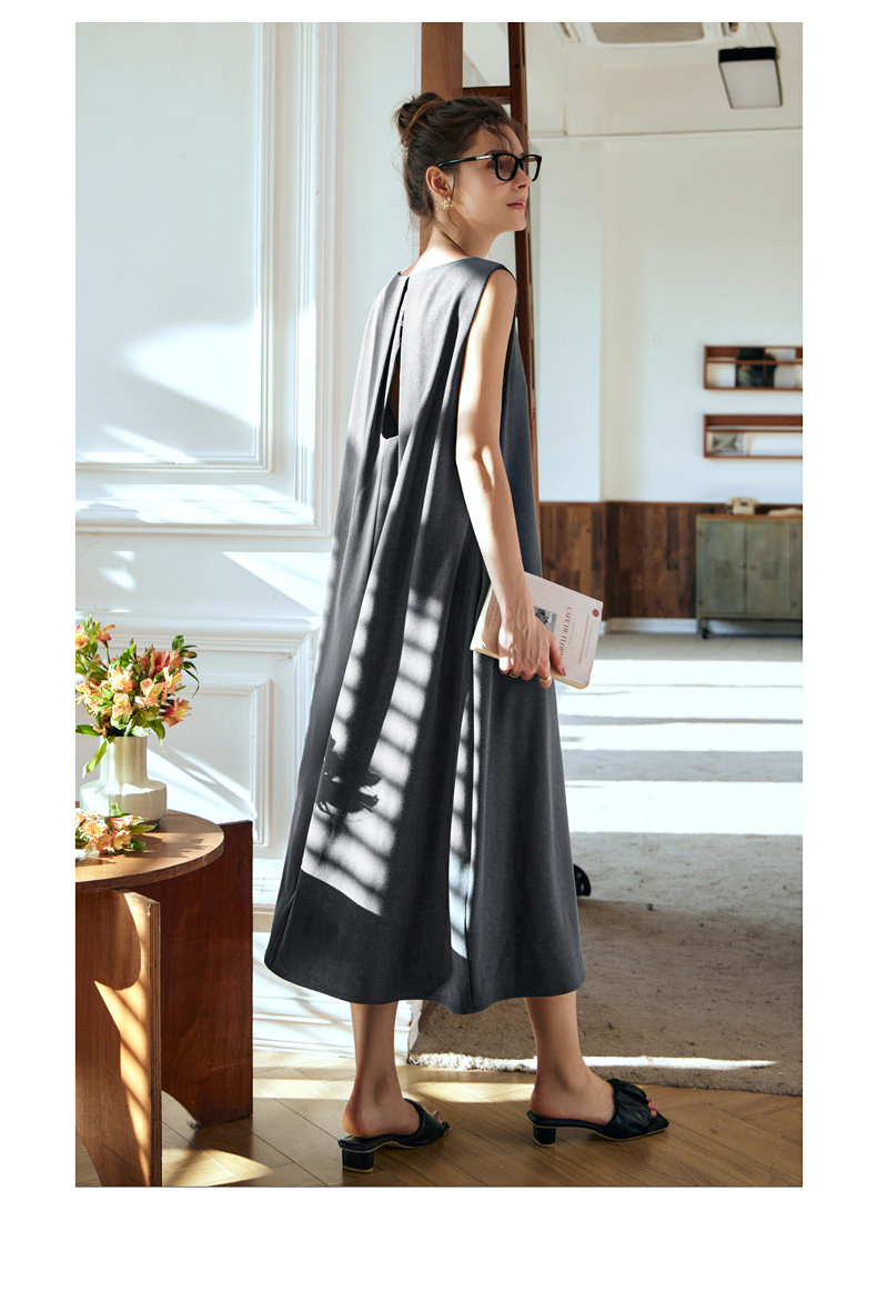 OLrain欧芮儿灰色无袖连衣裙女早春2024年新款简约气质慵懒长裙