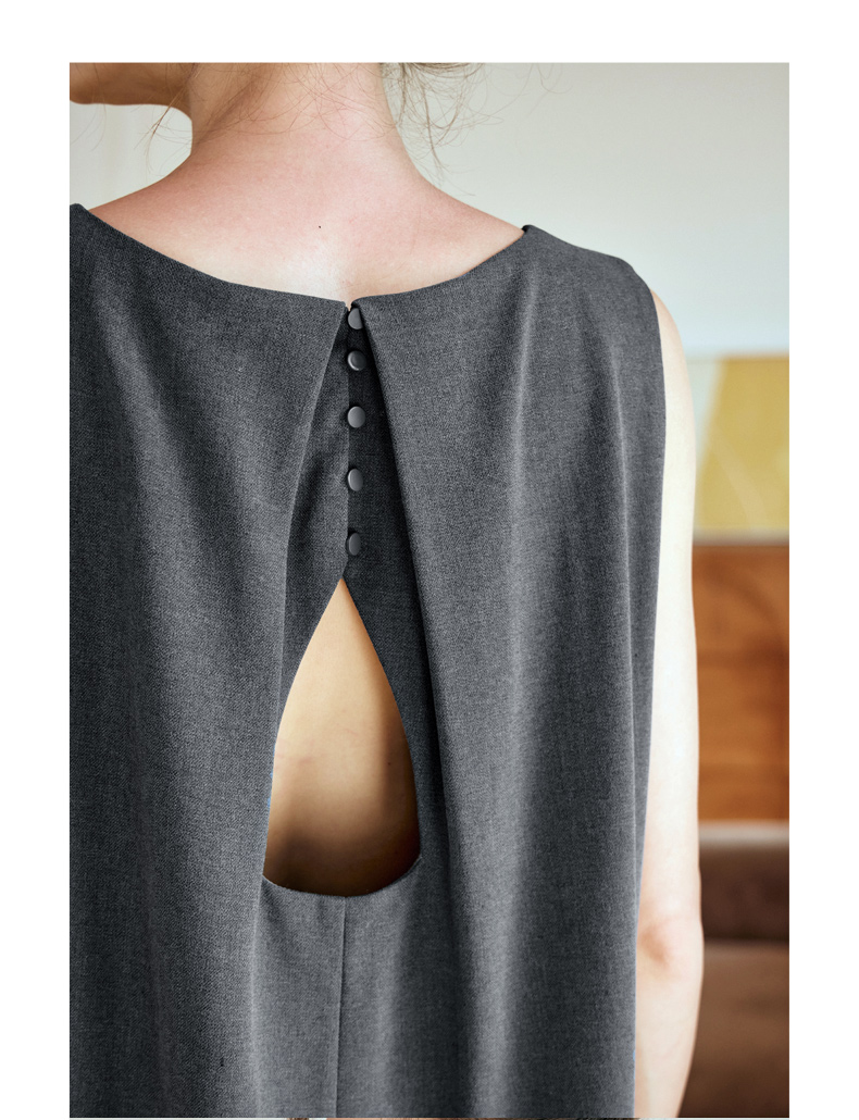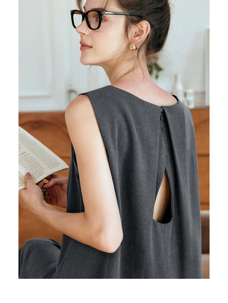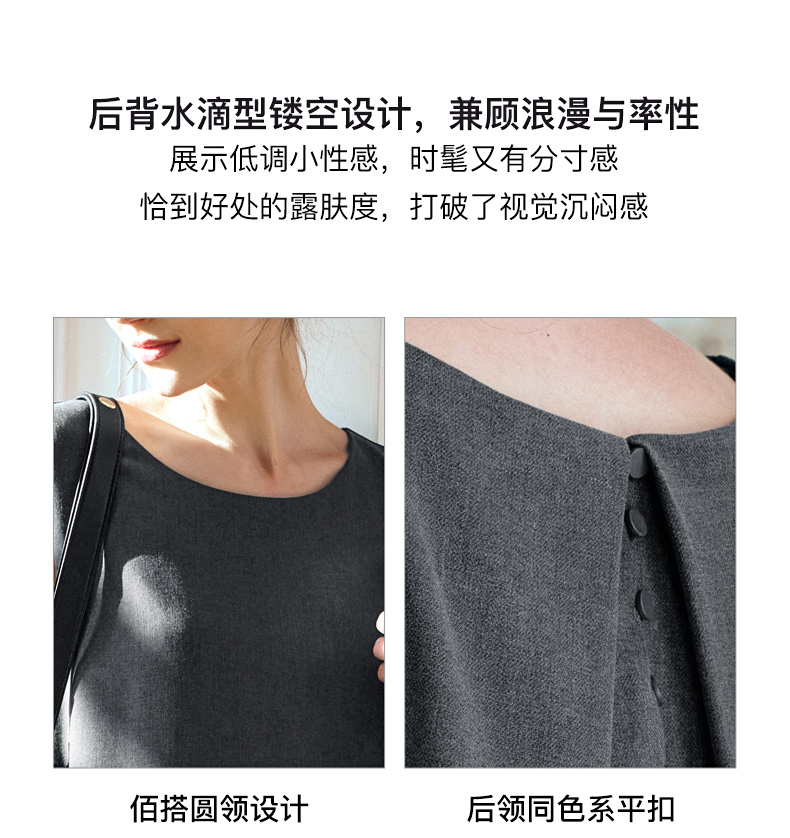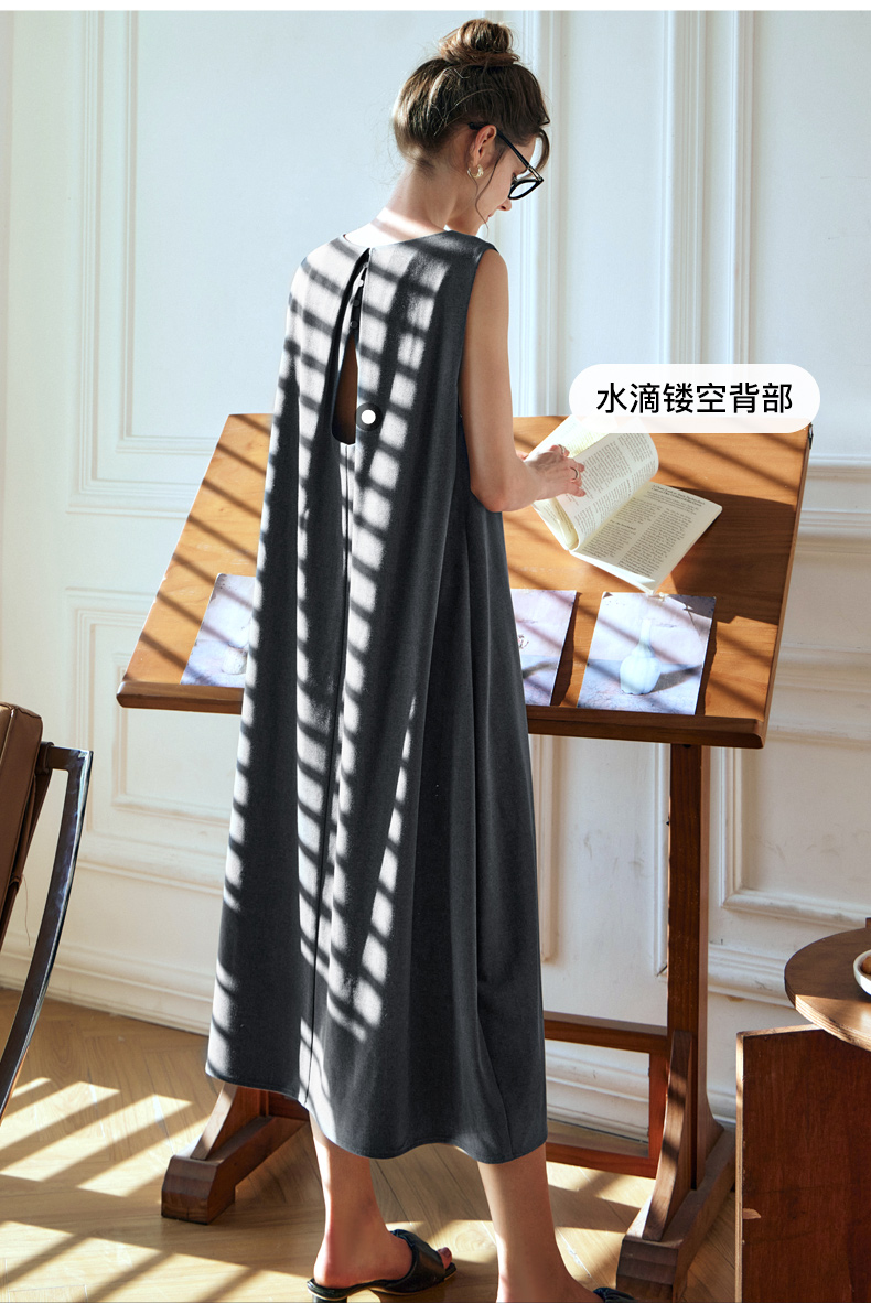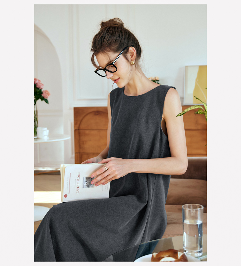 OLrain欧芮儿灰色无袖连衣裙女早春2024年新款简约气质慵懒长裙