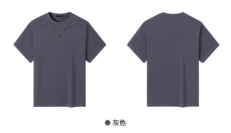 GXG男装【领口小熊】25夏季时尚弧形字母微阔版男式重磅短袖t恤K&C