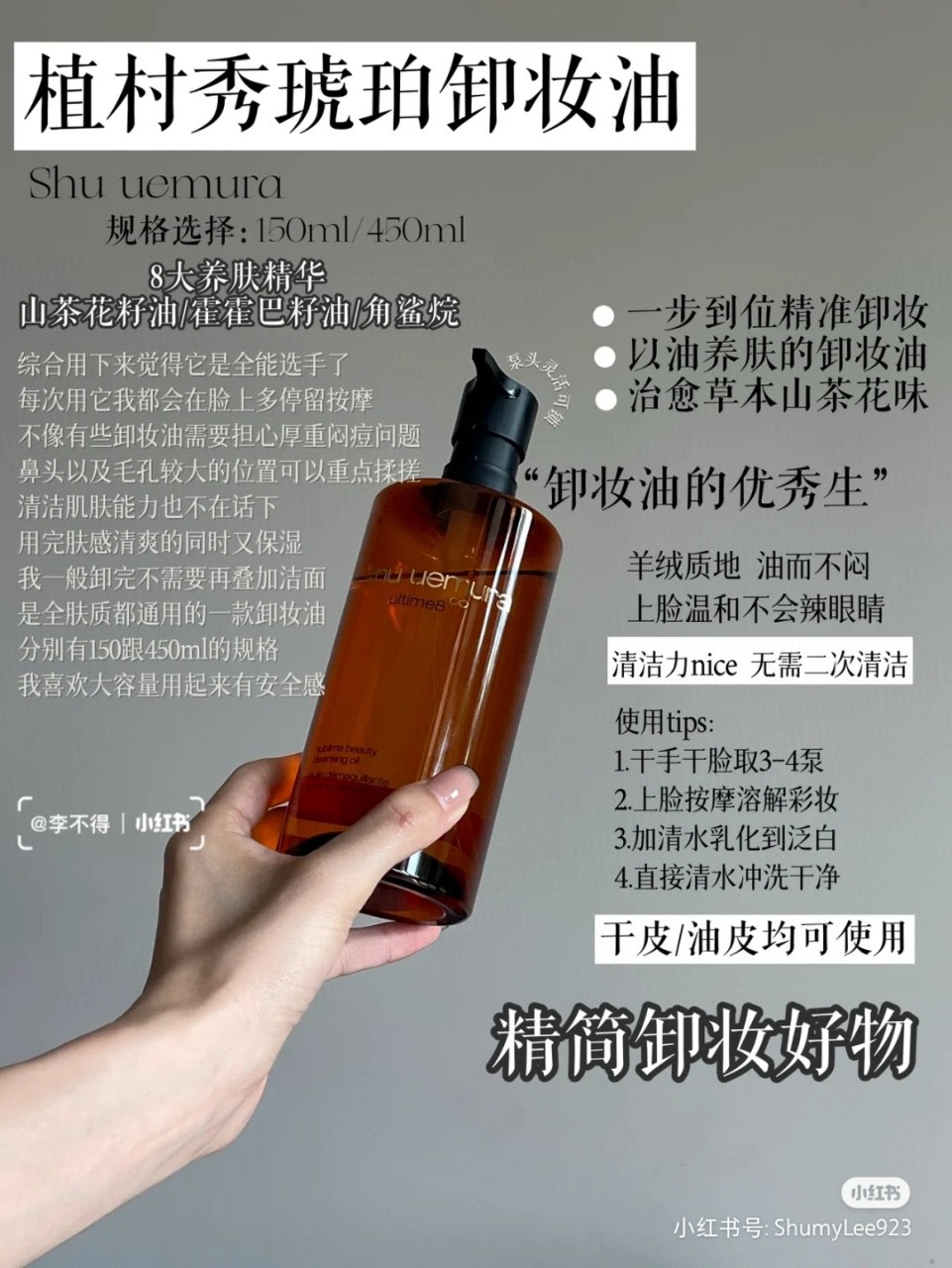 植村秀琥珀卸妆油:深层清洁,去除角质,天然山茶花籽油