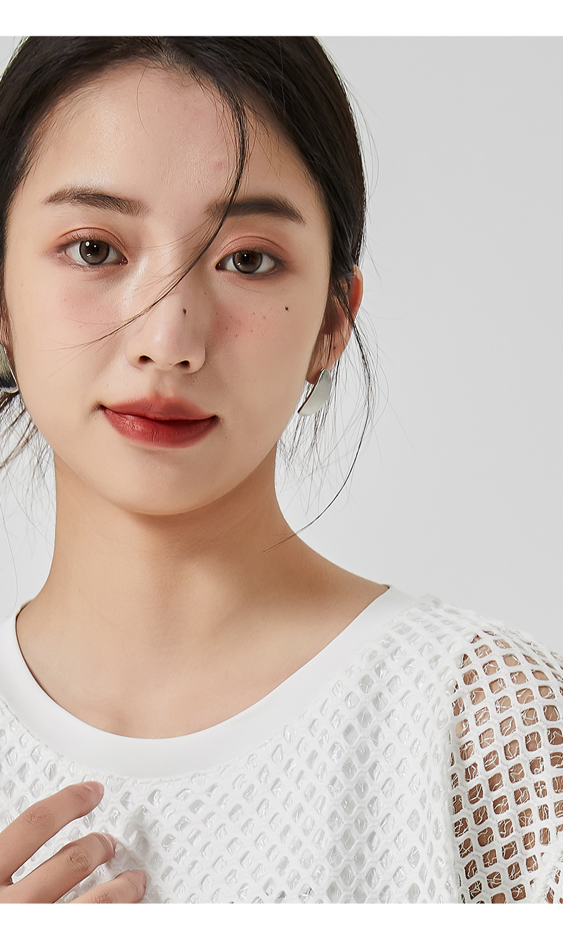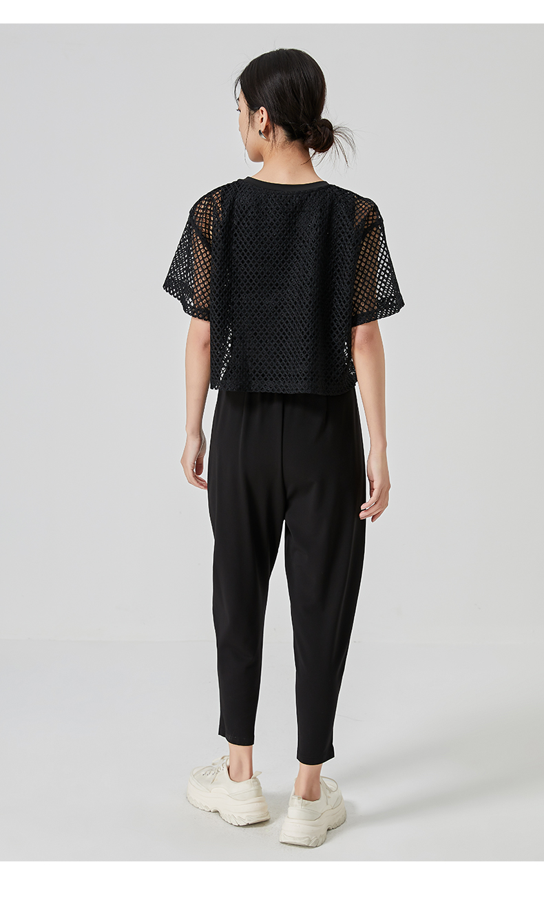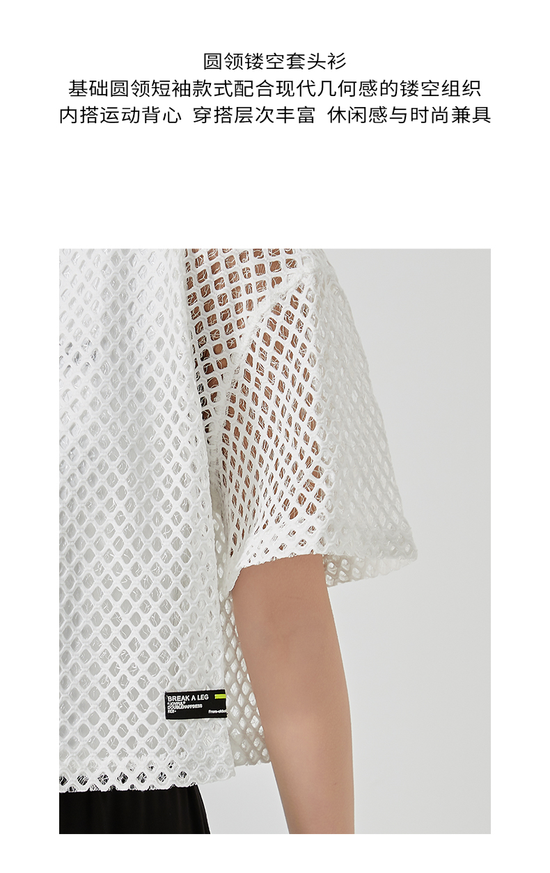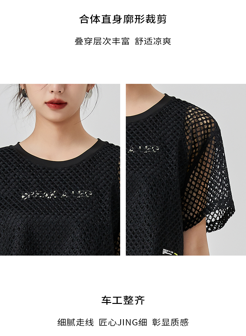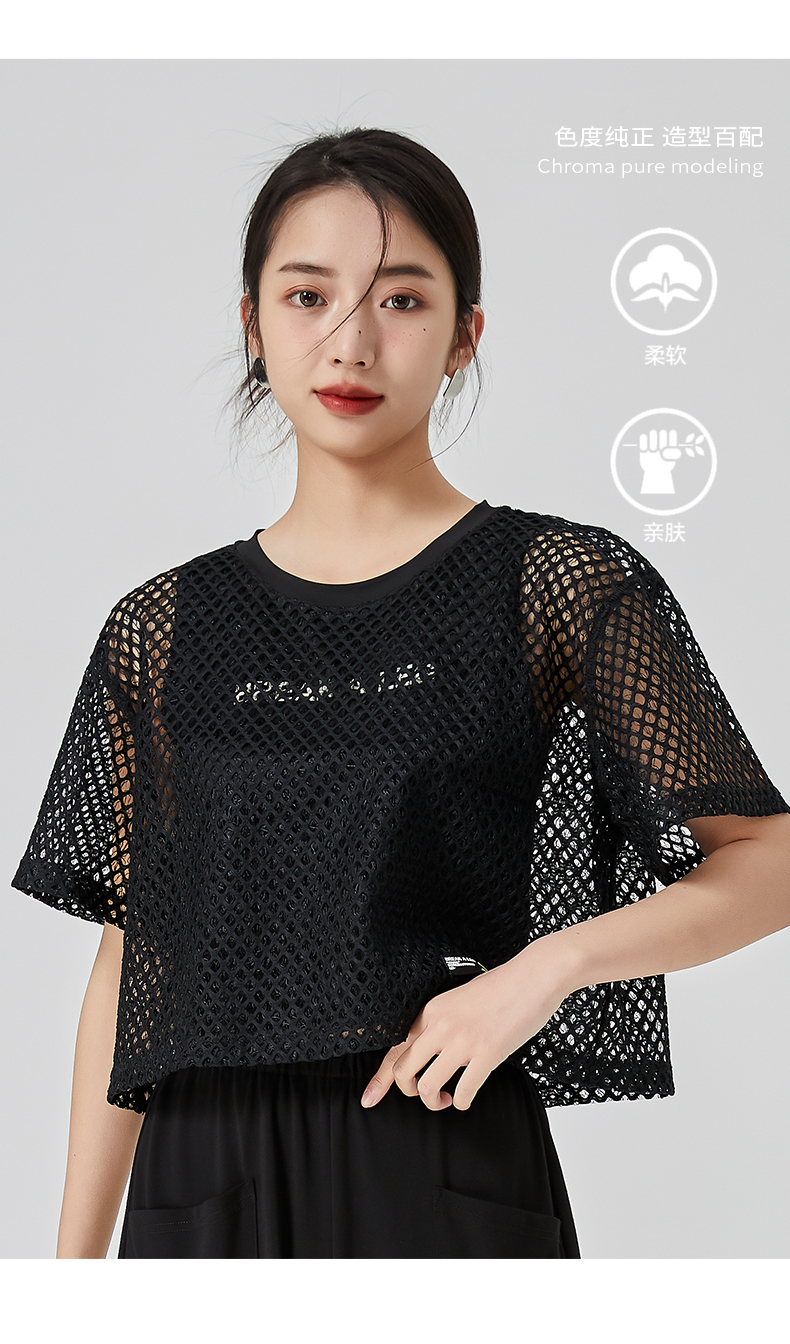 oldcolour直筒短款T恤2023夏季新款休闲网纱假两件上衣N22021274