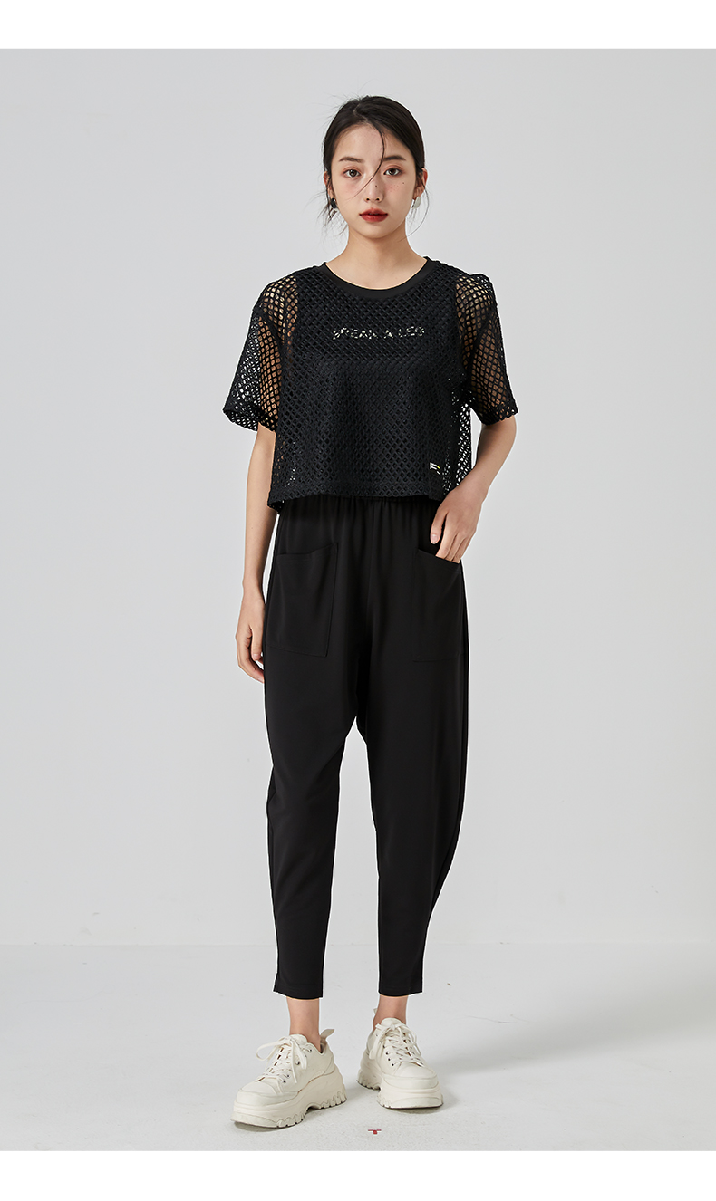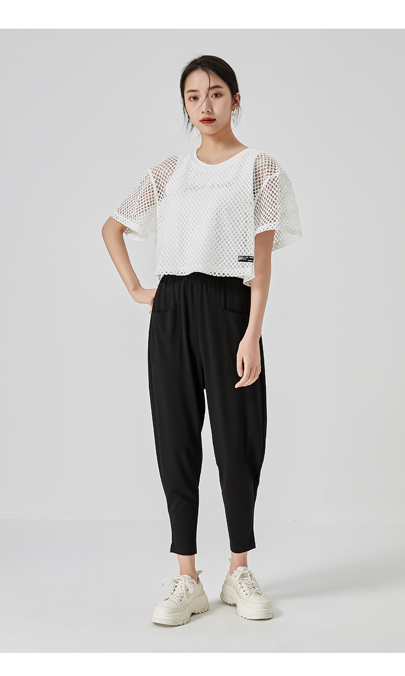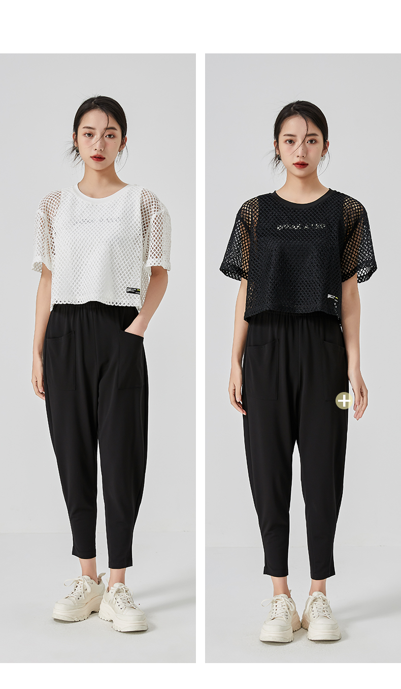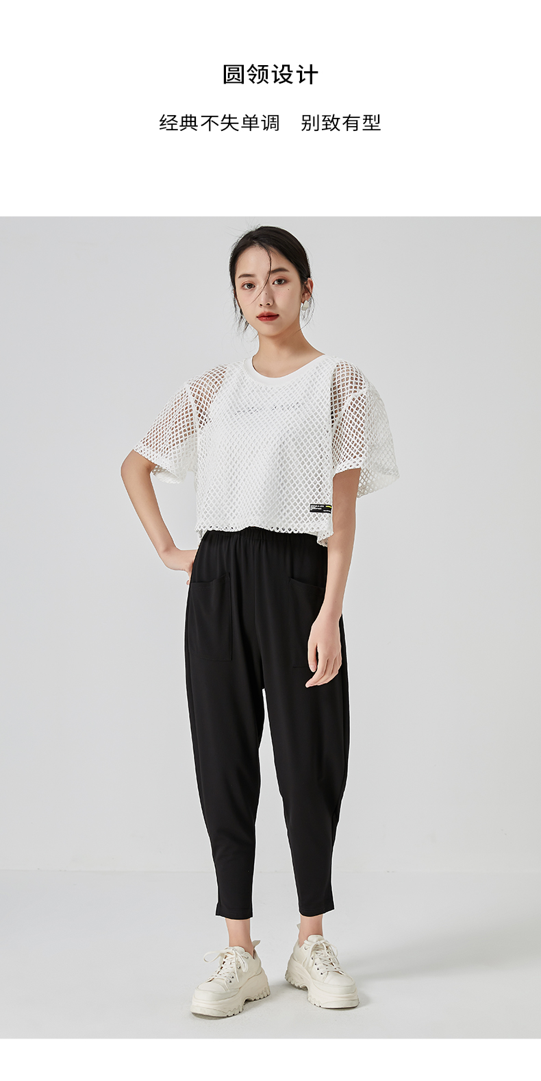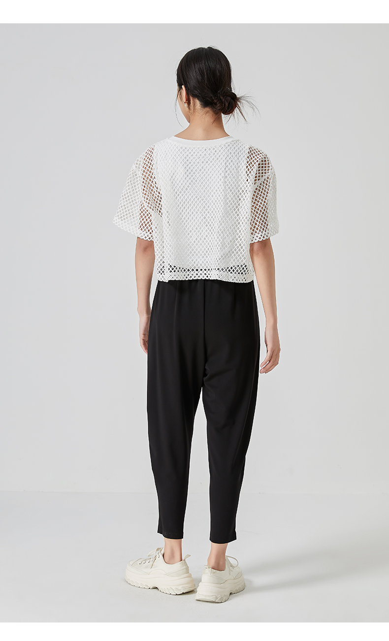 oldcolour直筒短款T恤2023夏季新款休闲网纱假两件上衣N22021274