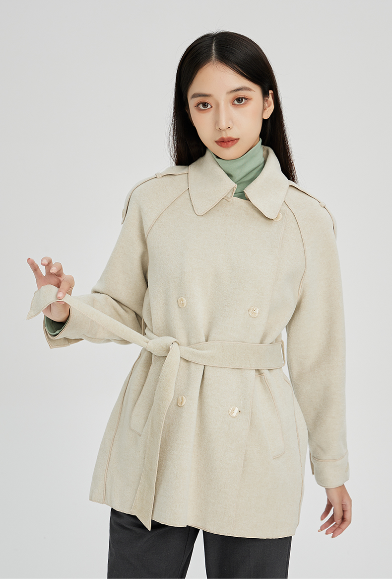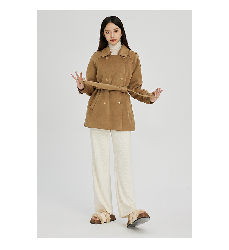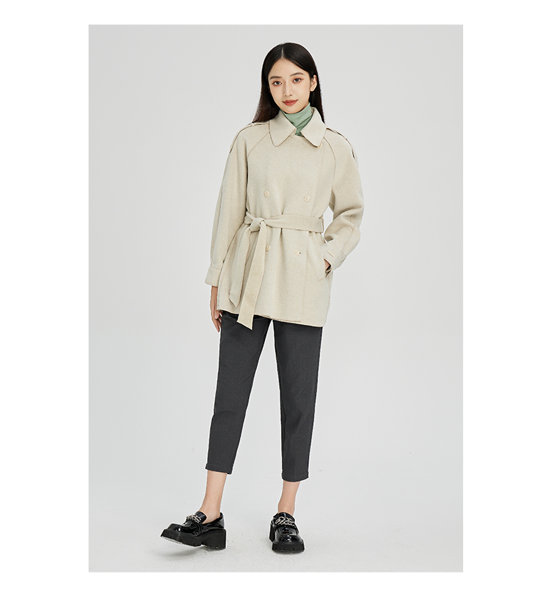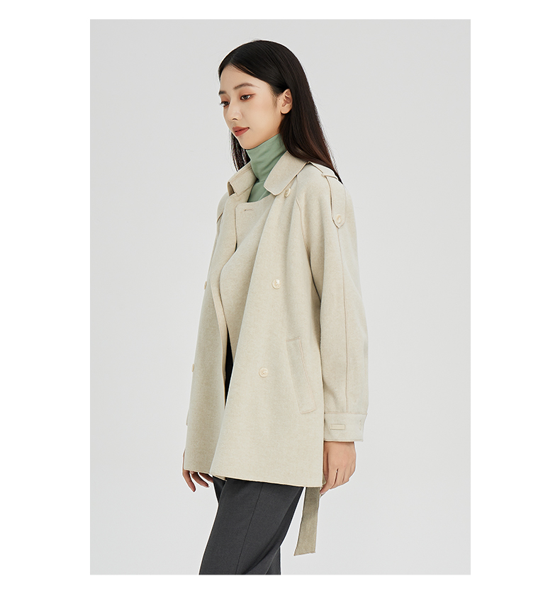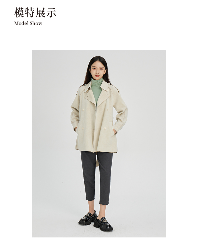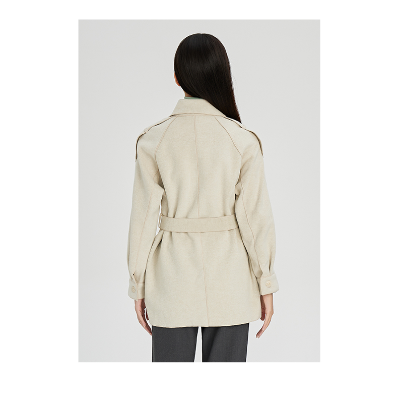 NUTS纯色翻领气质百搭收腰显瘦双排扣中款外套女241042401