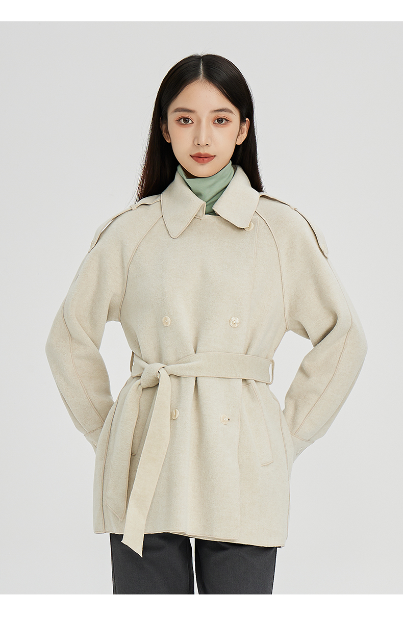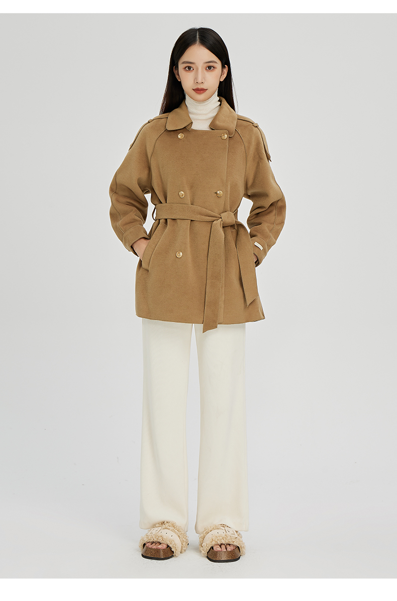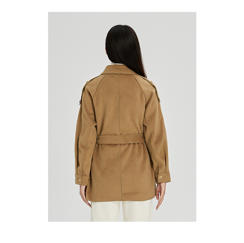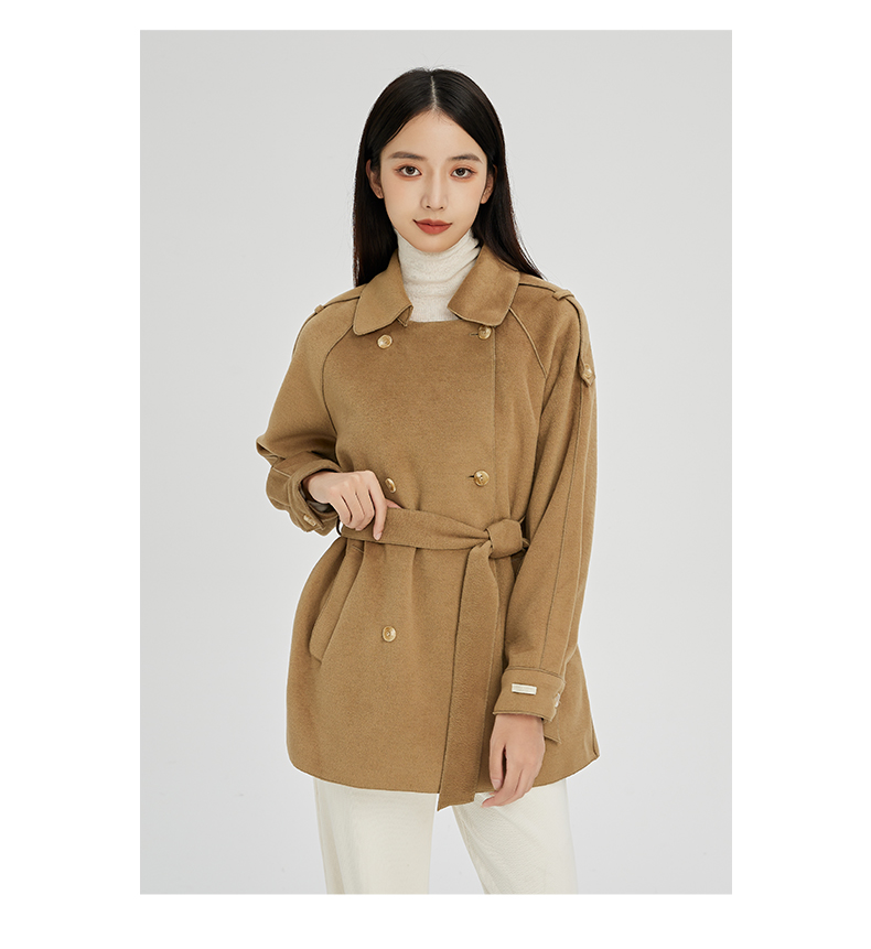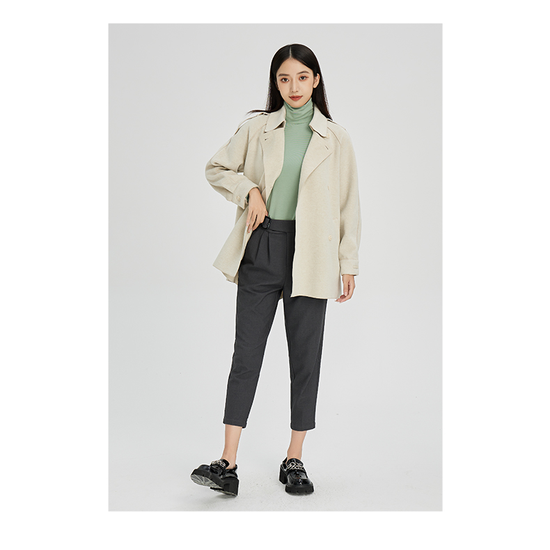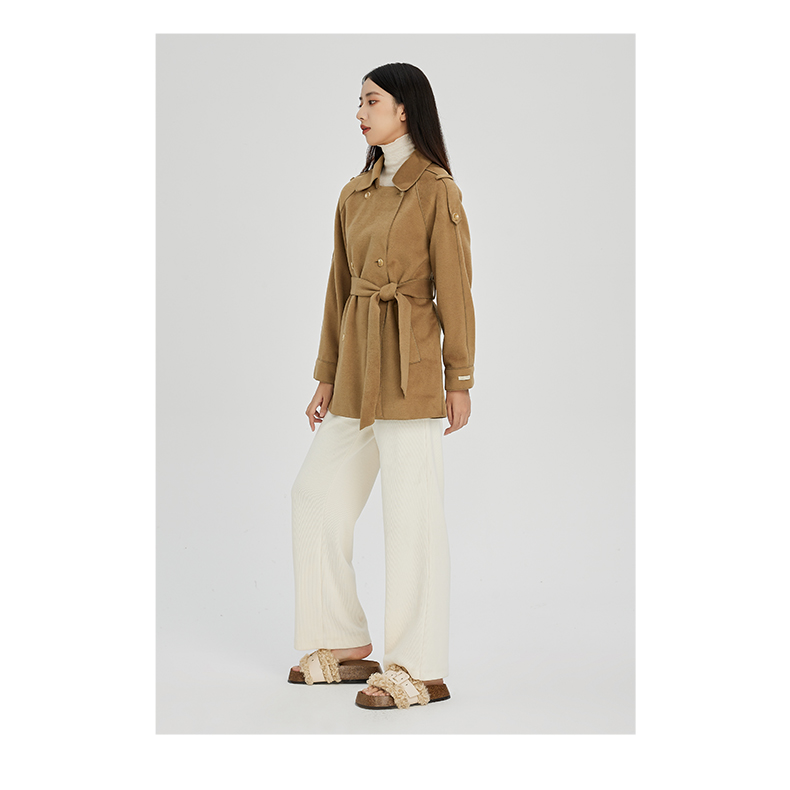 NUTS纯色翻领气质百搭收腰显瘦双排扣中款外套女241042401