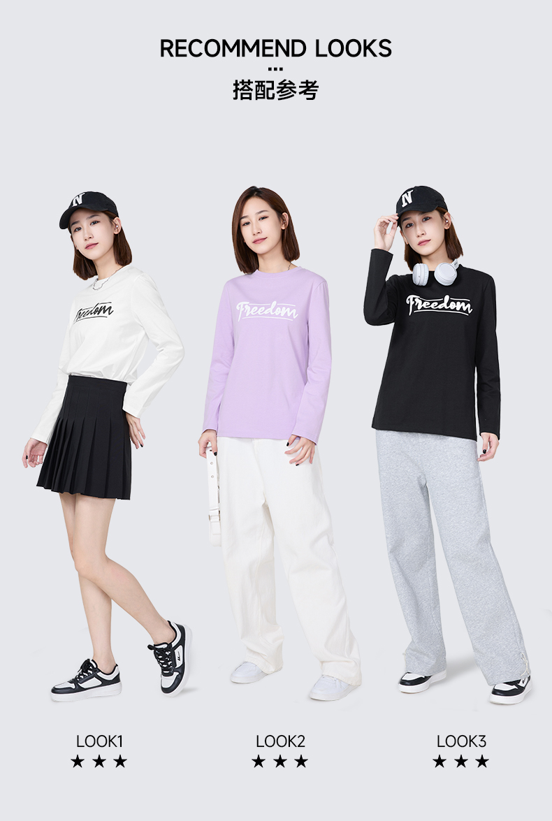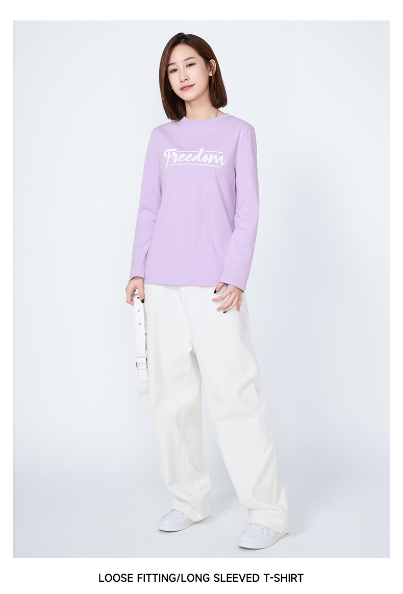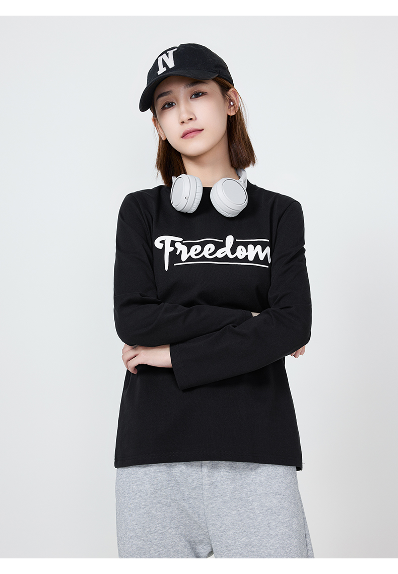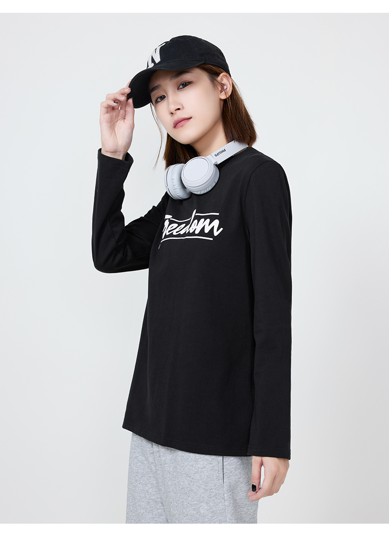 回力纯棉长袖T恤女宽松白色打底衫春季2025新款内搭正肩印花上衣