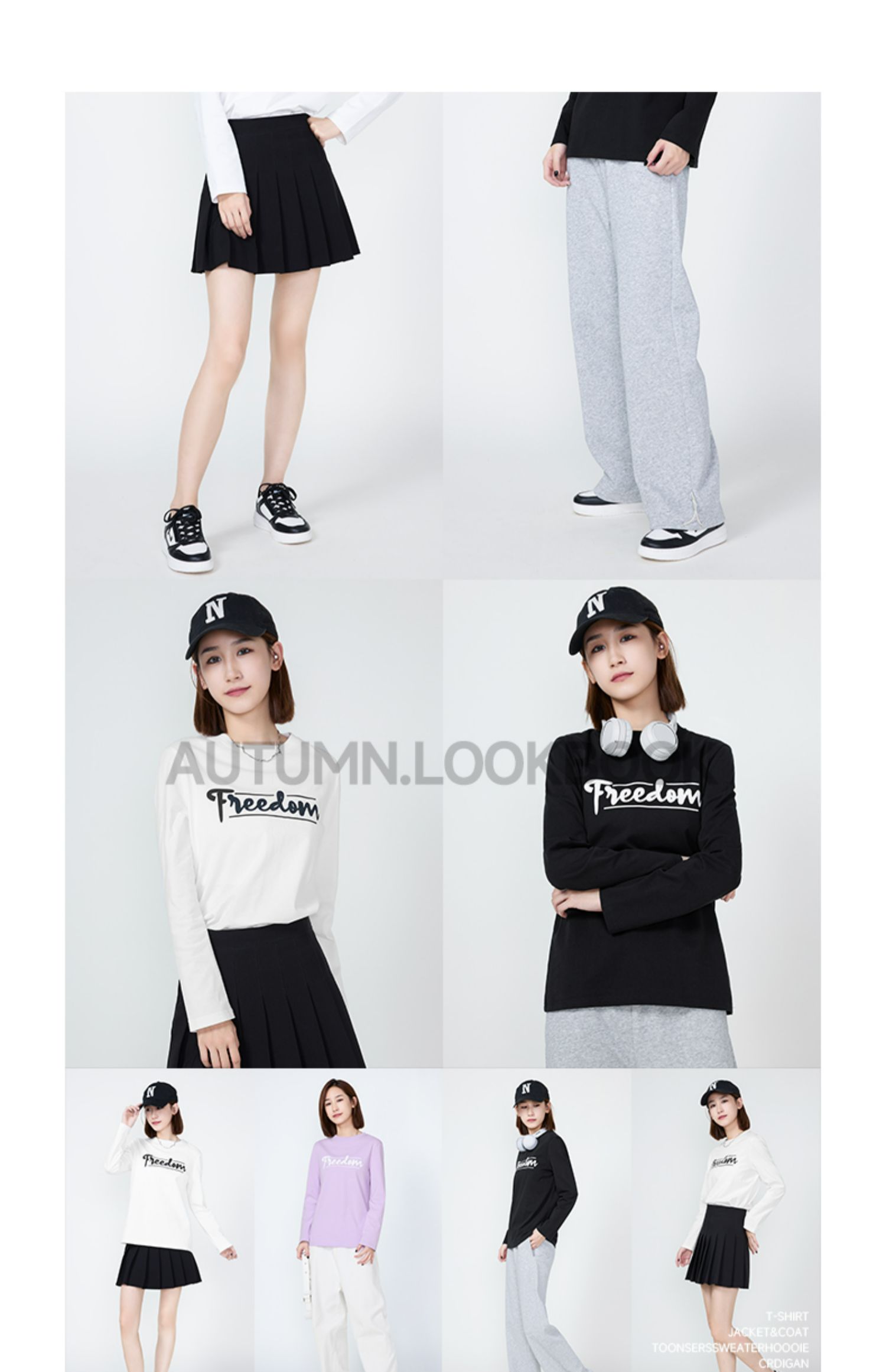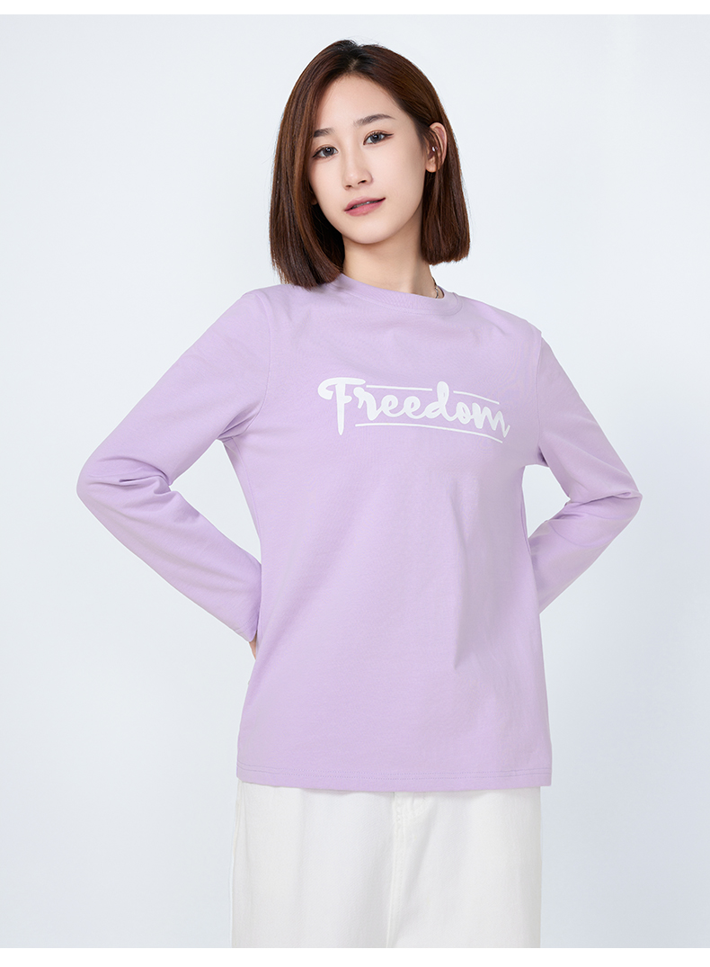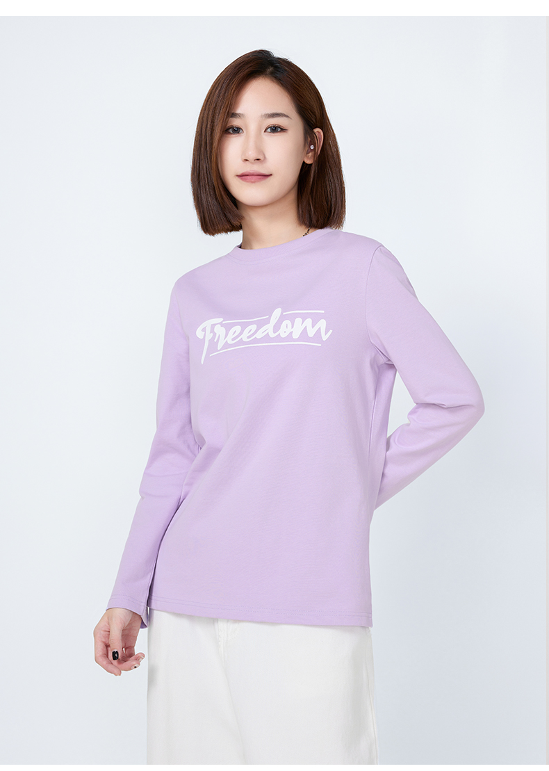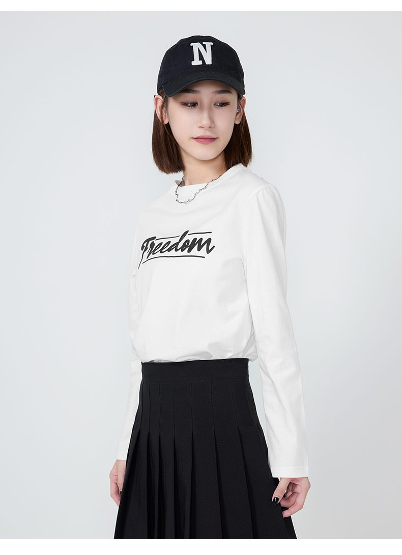 回力纯棉长袖T恤女宽松白色打底衫春季2025新款内搭正肩印花上衣