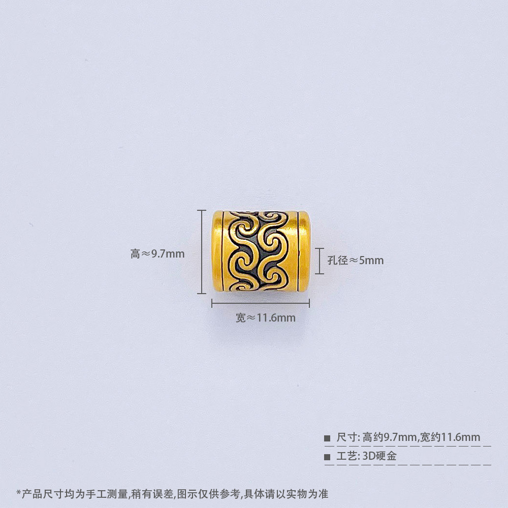【限时7.5折】【定价黄金】足金 #电黑金 3D硬金电黑金波浪纹转运珠Diy手串配件(V3DSC00446)预售产品下单后不退款不退货不换货不补差价