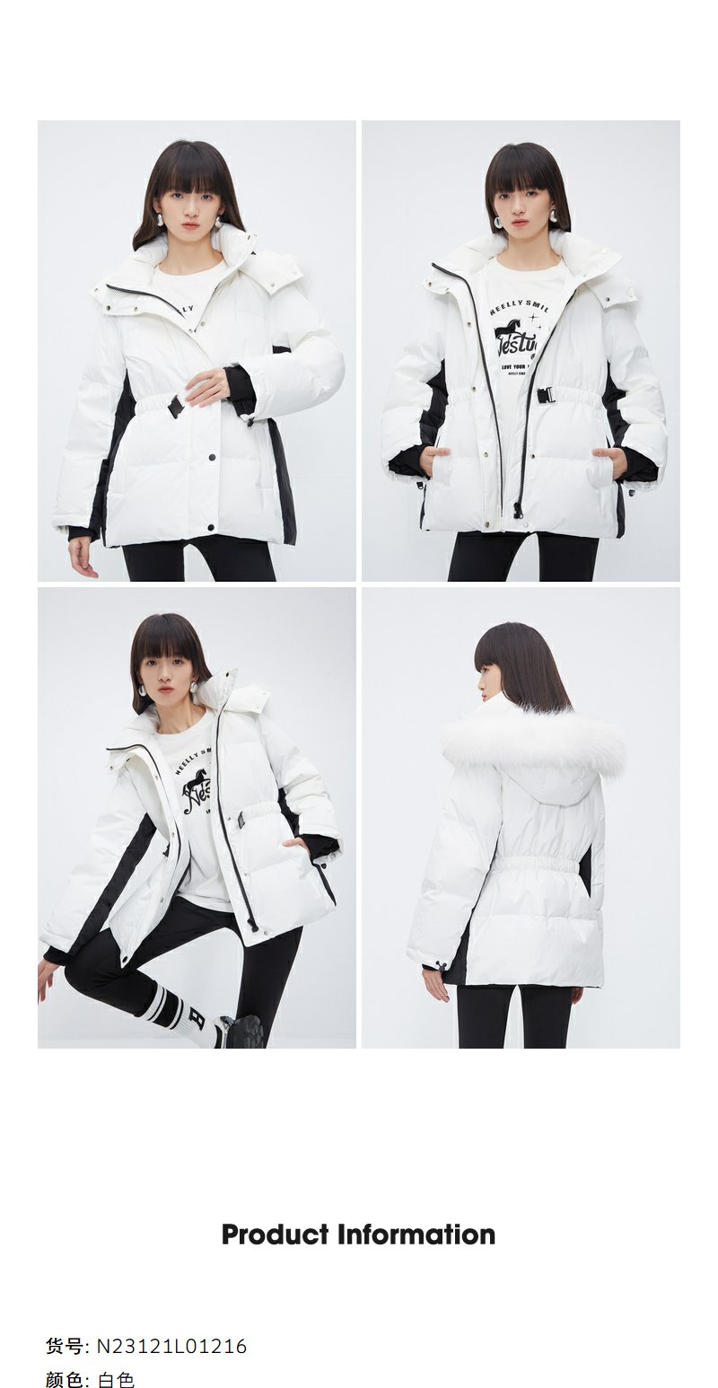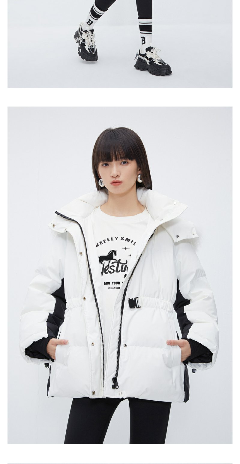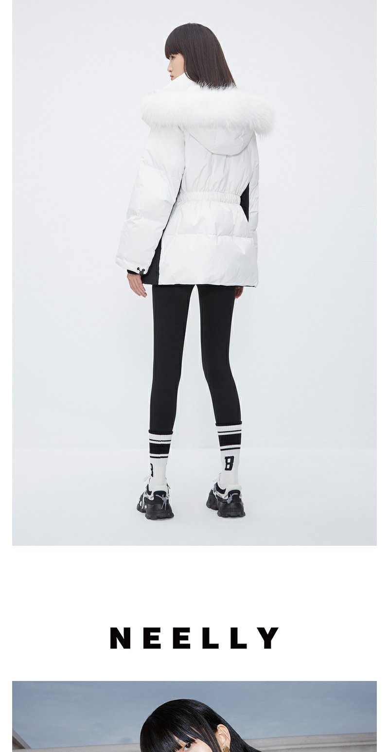 NEELLY纳俪商场同款黑白撞色工装羽绒服女真貉子毛领保暖抗寒外套N23121L01216