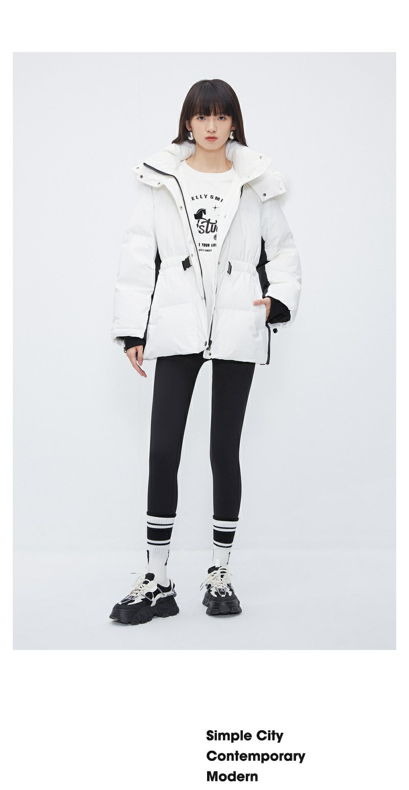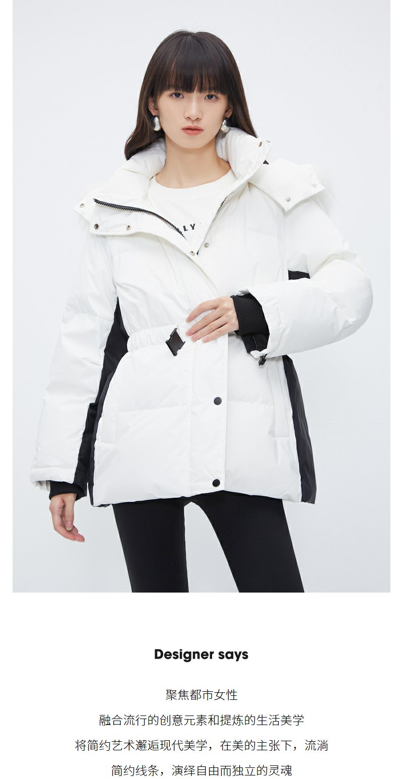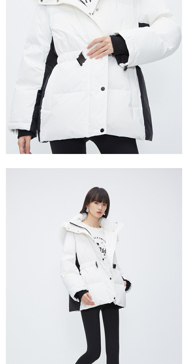NEELLY纳俪商场同款黑白撞色工装羽绒服女真貉子毛领保暖抗寒外套N23121L01216