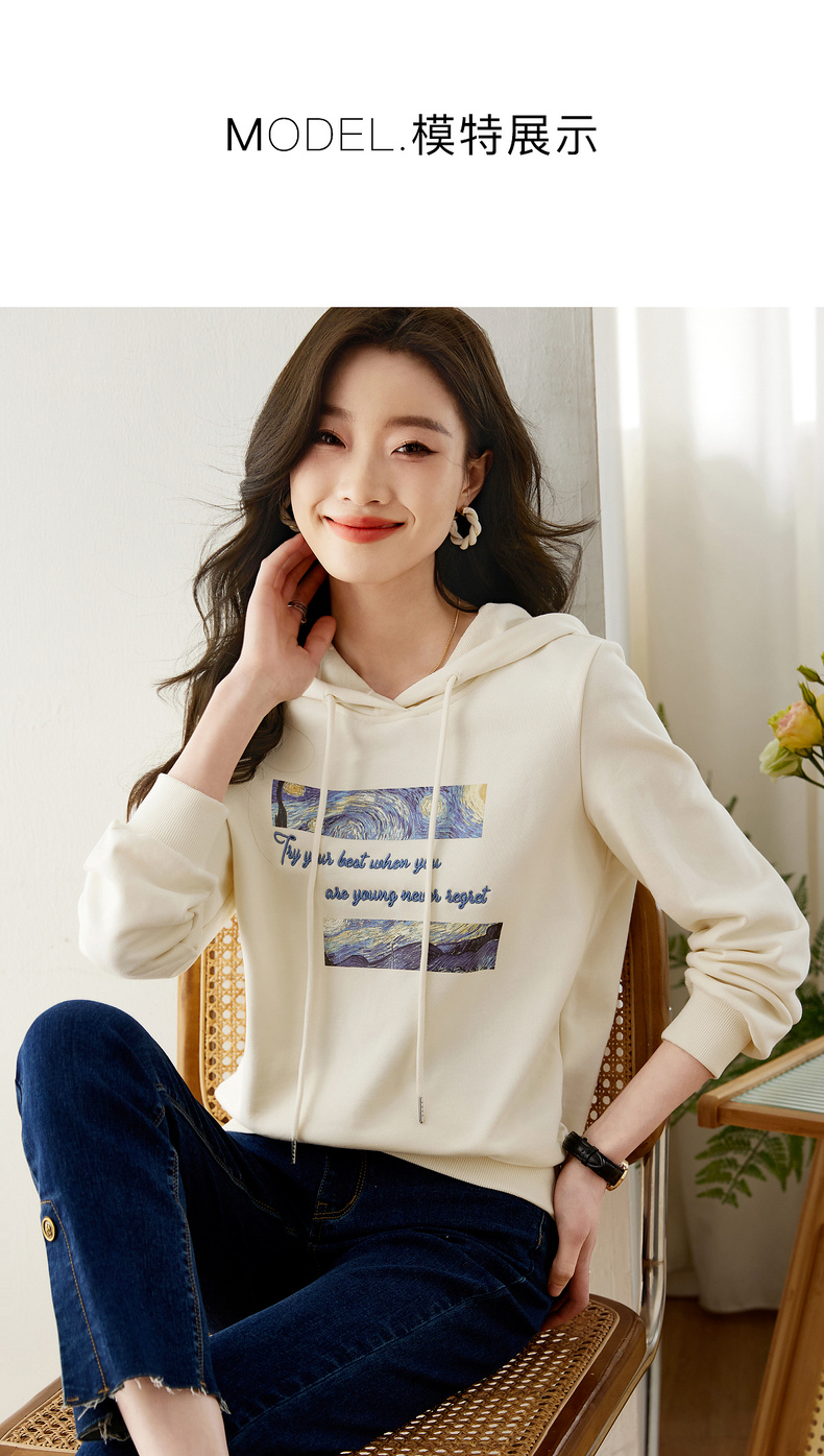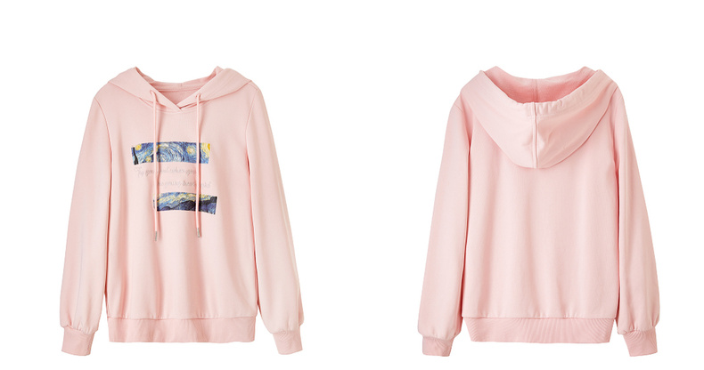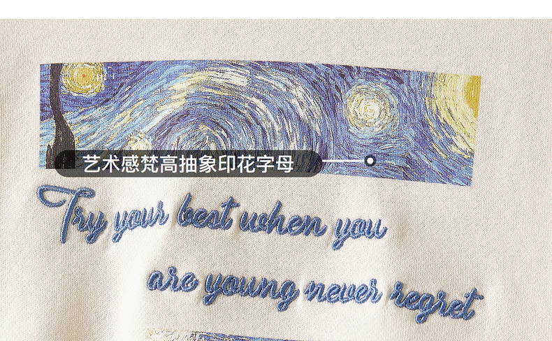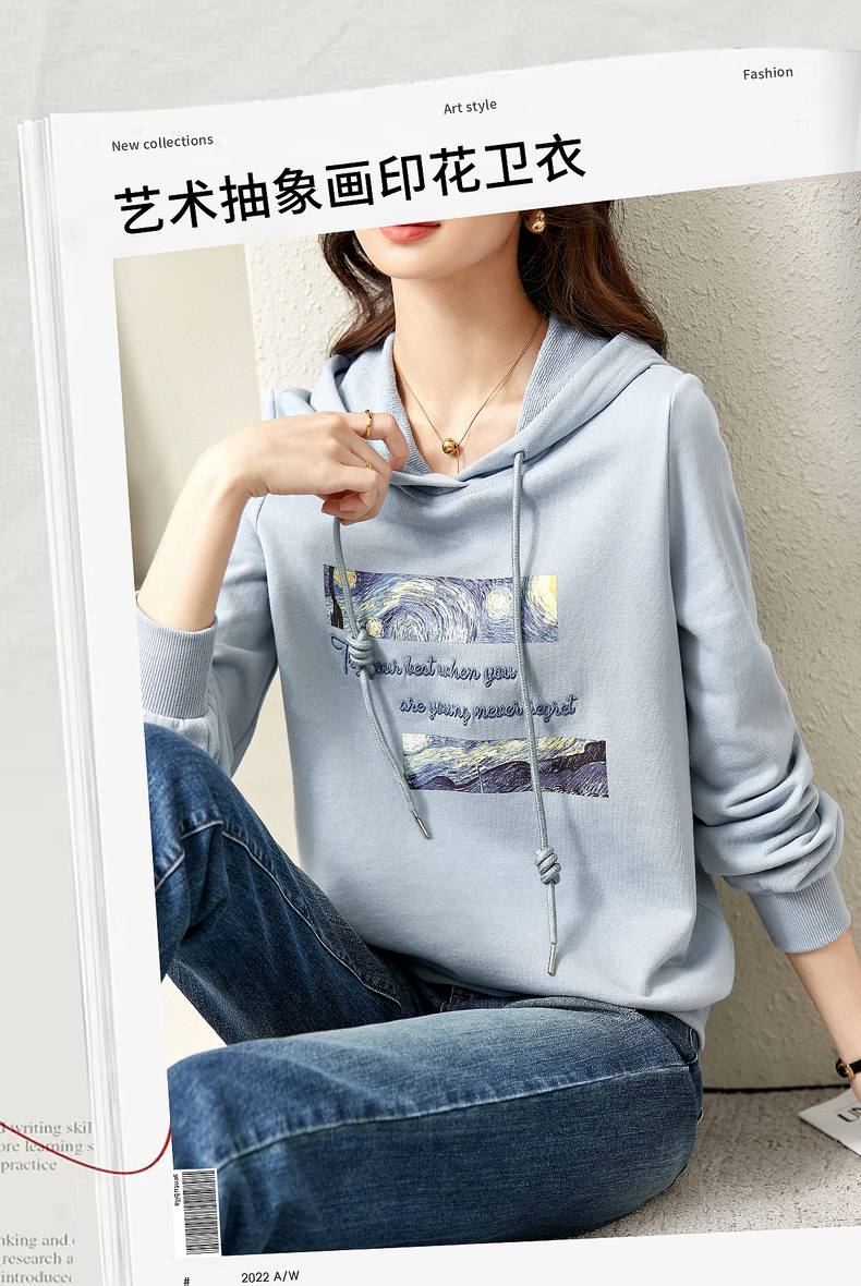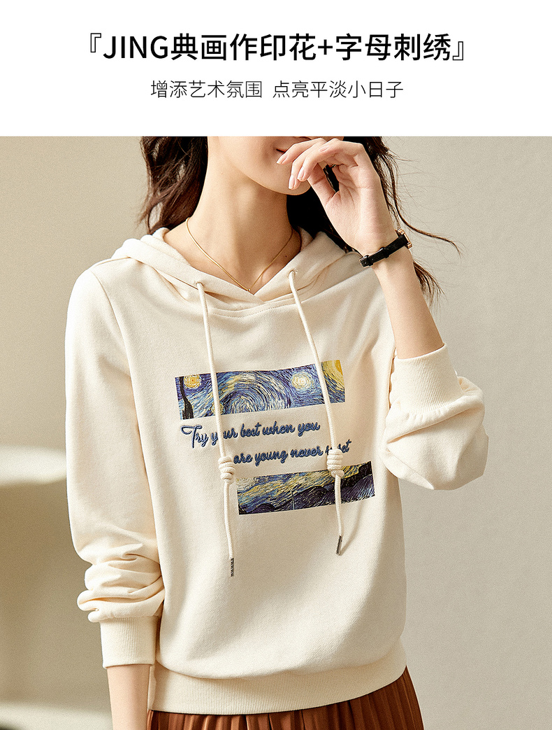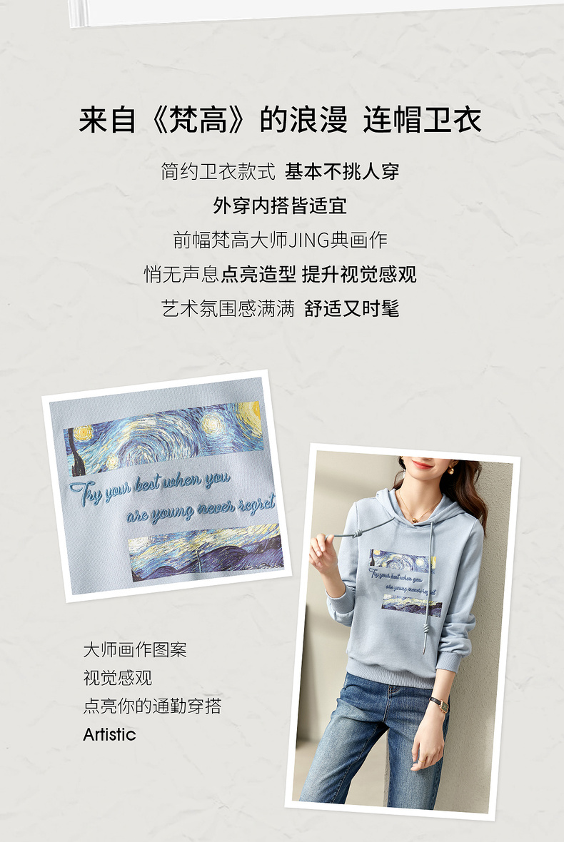 【内购】慵懒显瘦抽绳连帽梵高星空抽象字母刺绣印花设计感卫衣-153AC3904X