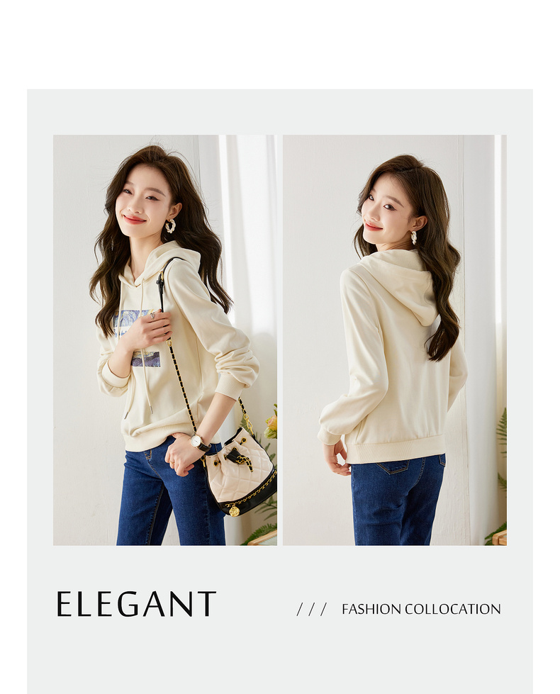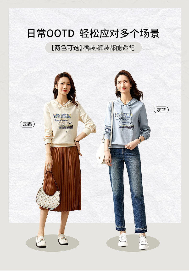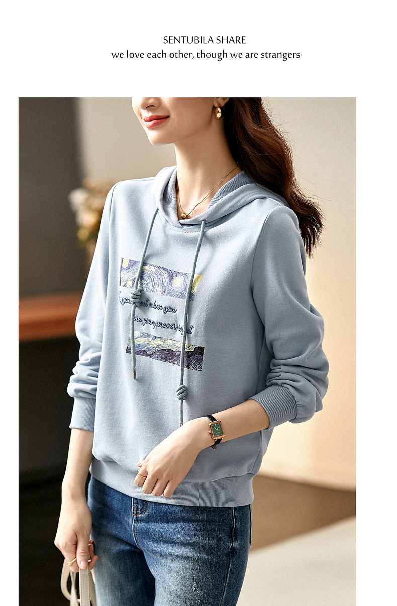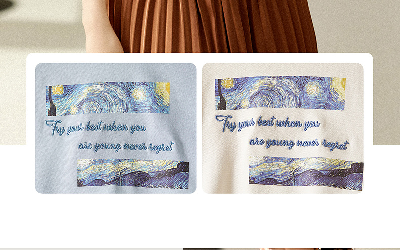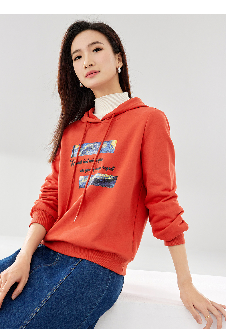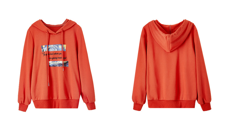 【内购】慵懒显瘦抽绳连帽梵高星空抽象字母刺绣印花设计感卫衣-153AC3904X