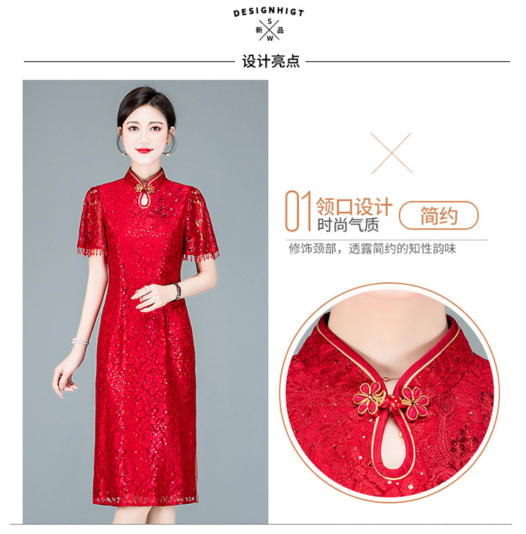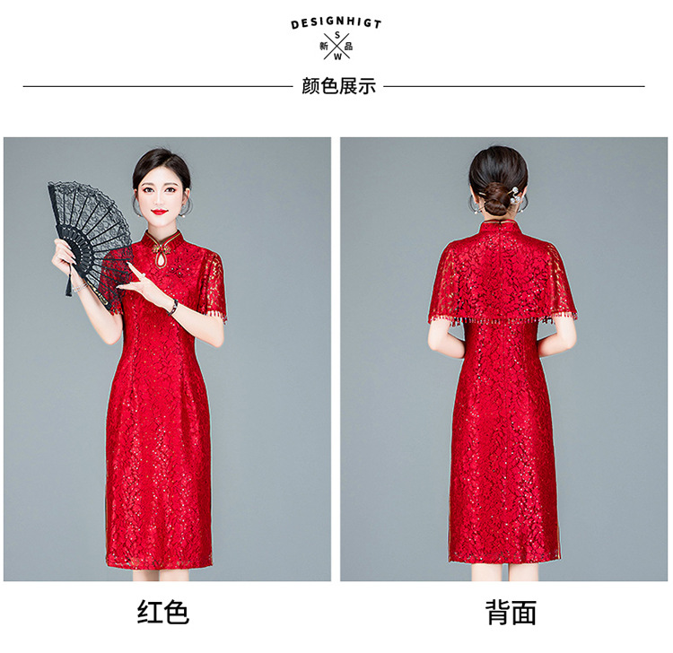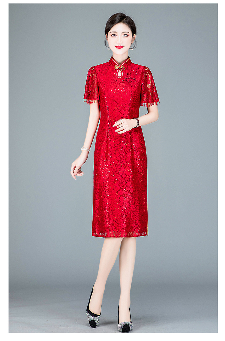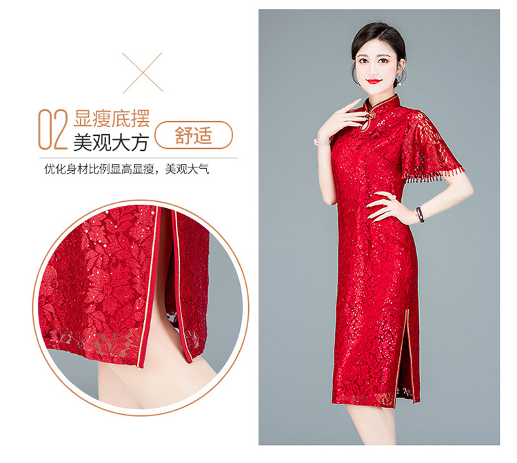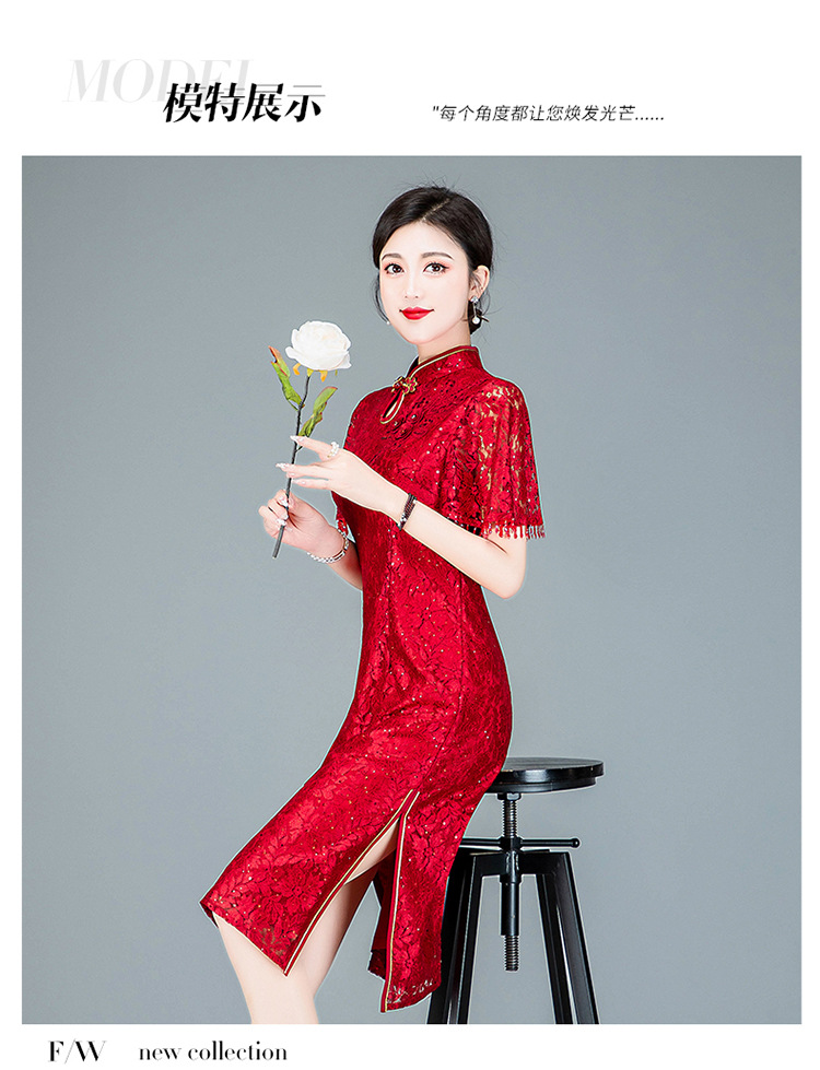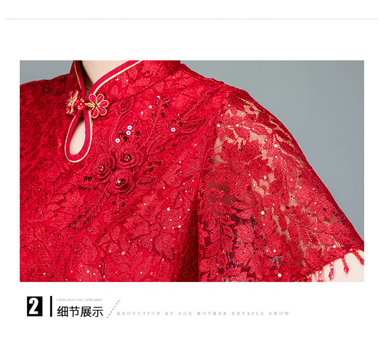 夏款中长款国风优雅时尚礼服旗袍裙立领短袖流苏气质连衣裙QYM-YJY-23AF37-L