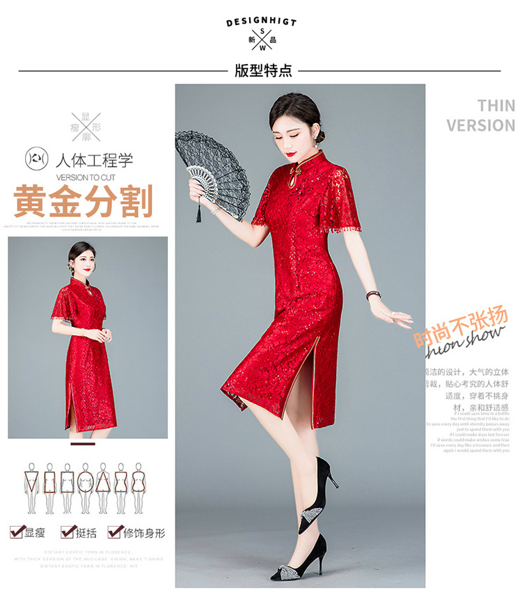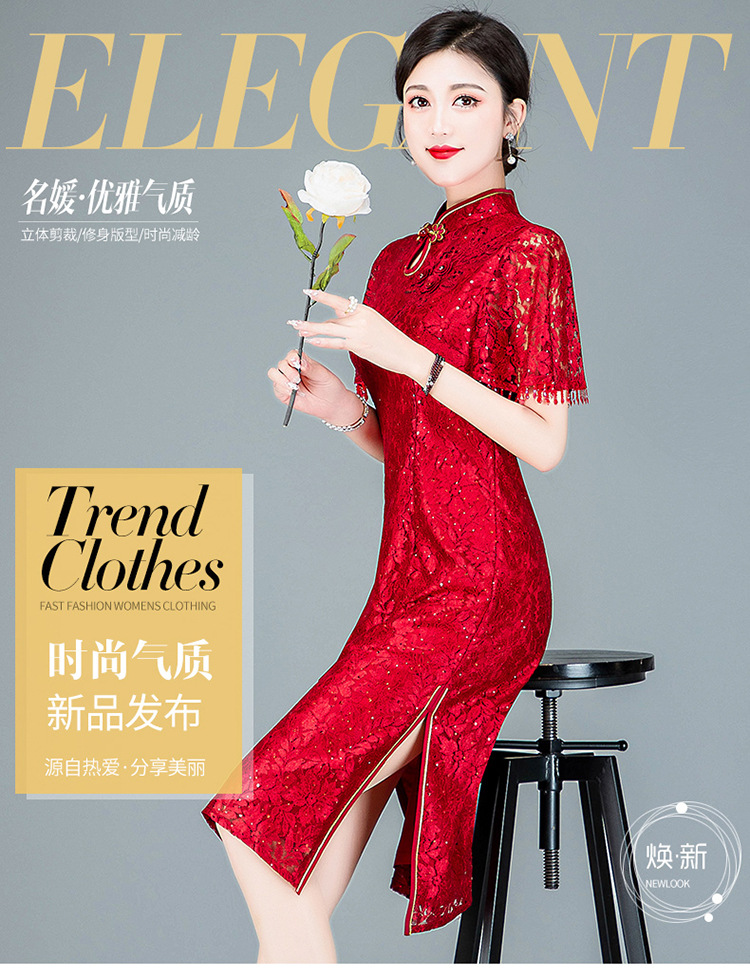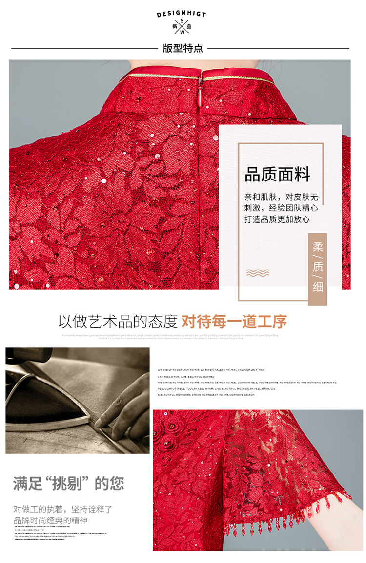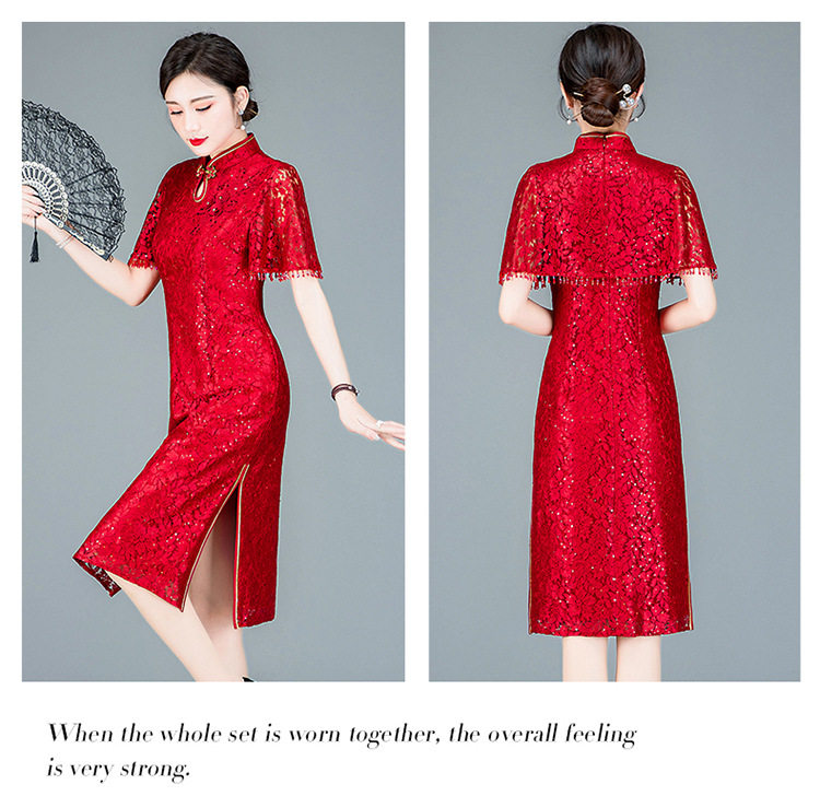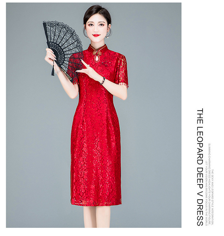 夏款中长款国风优雅时尚礼服旗袍裙立领短袖流苏气质连衣裙QYM-YJY-23AF37-L
