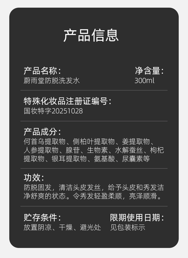 【洗发水护发素CP】蔚雨堂防脱洗发水300ml—防脱固发防断发 二硫化硒头皮净化洗发水300ml—控油去屑 拒绝油屑痒 银耳多肽护发素—顺滑光泽 一梳到底