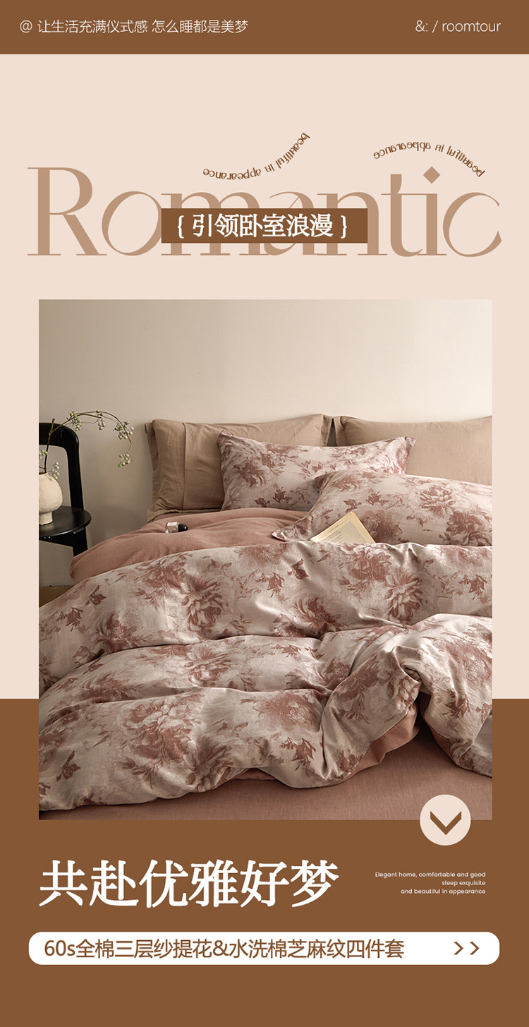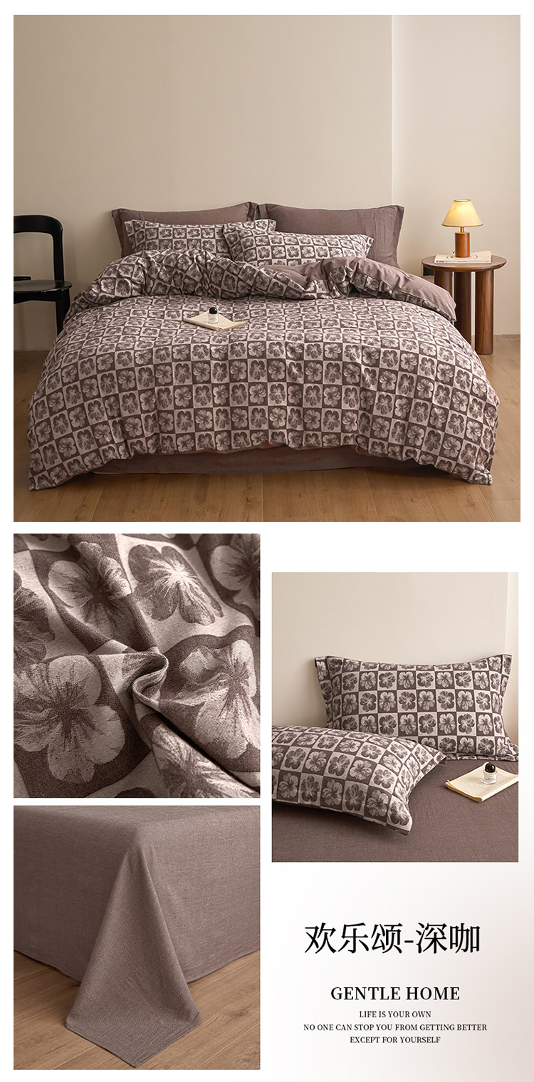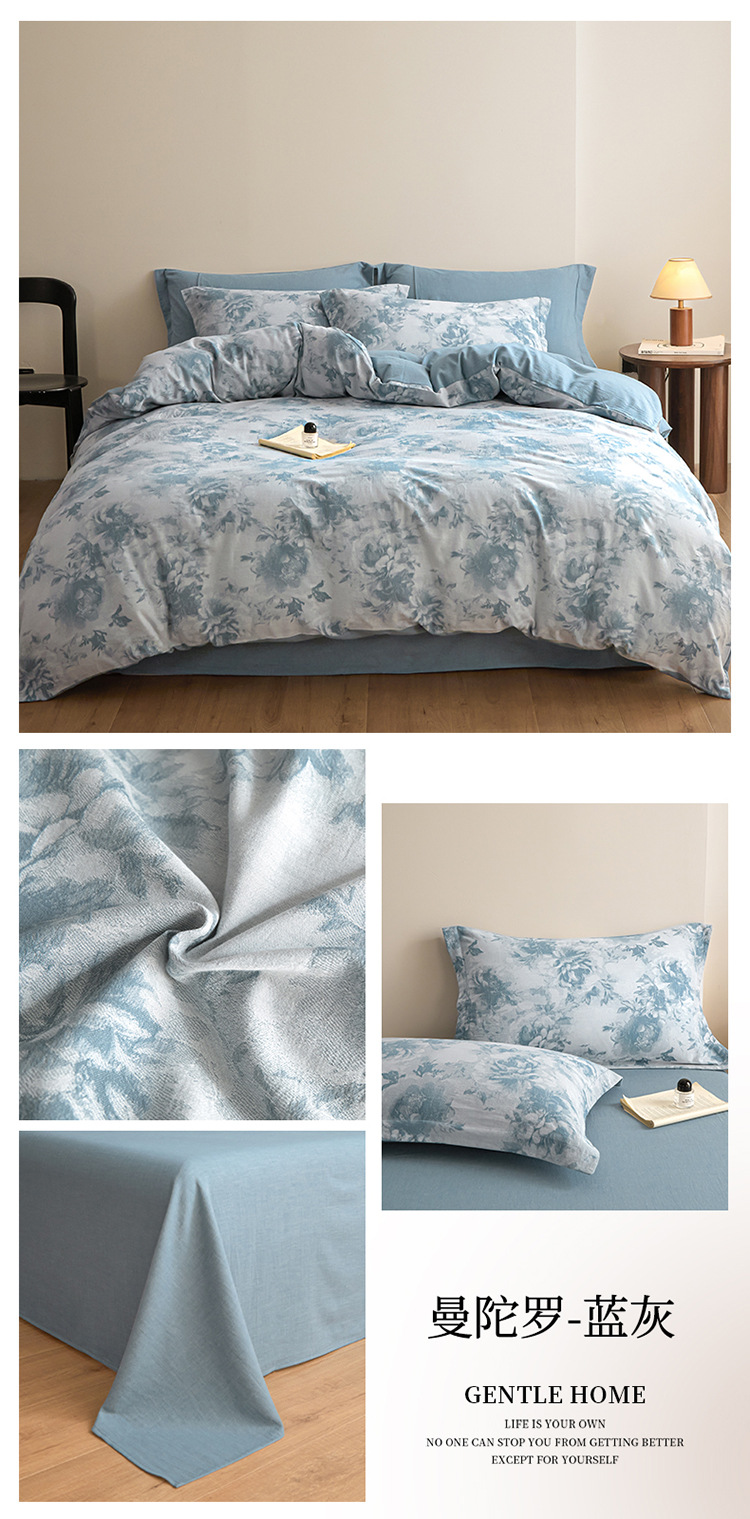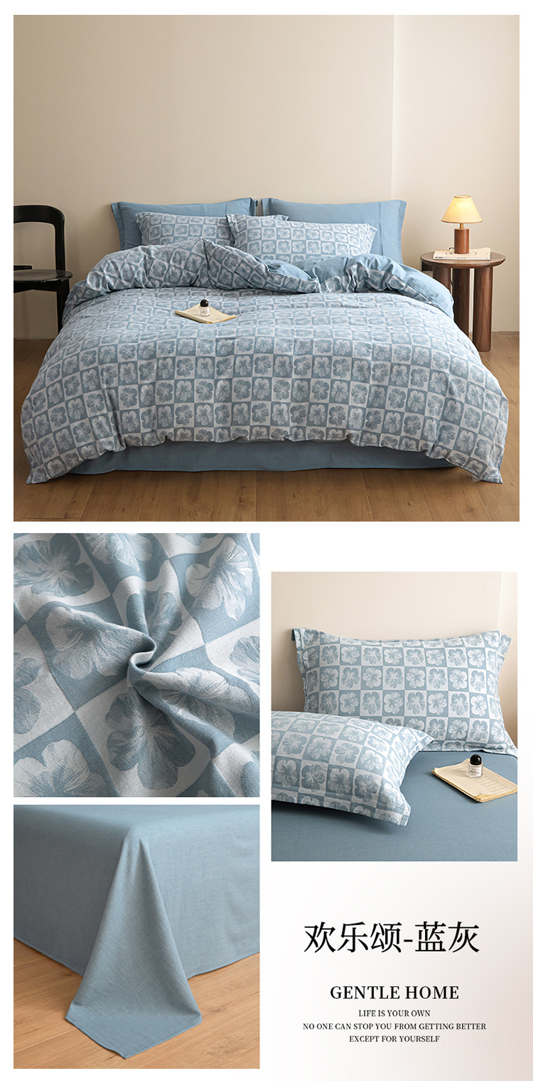 【复古三层纱提花四件套】复古三层纱四件套良品提花全棉套件全棉柔软纱布民宿床品