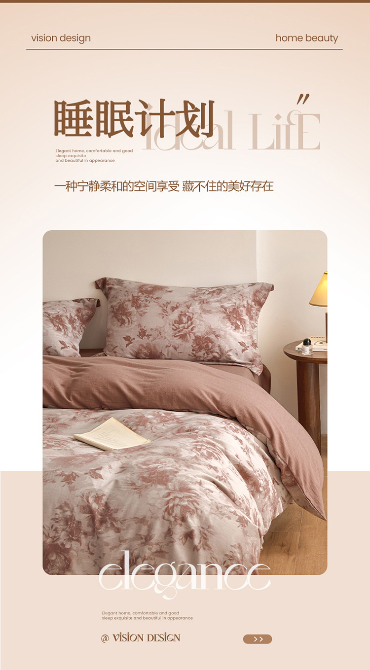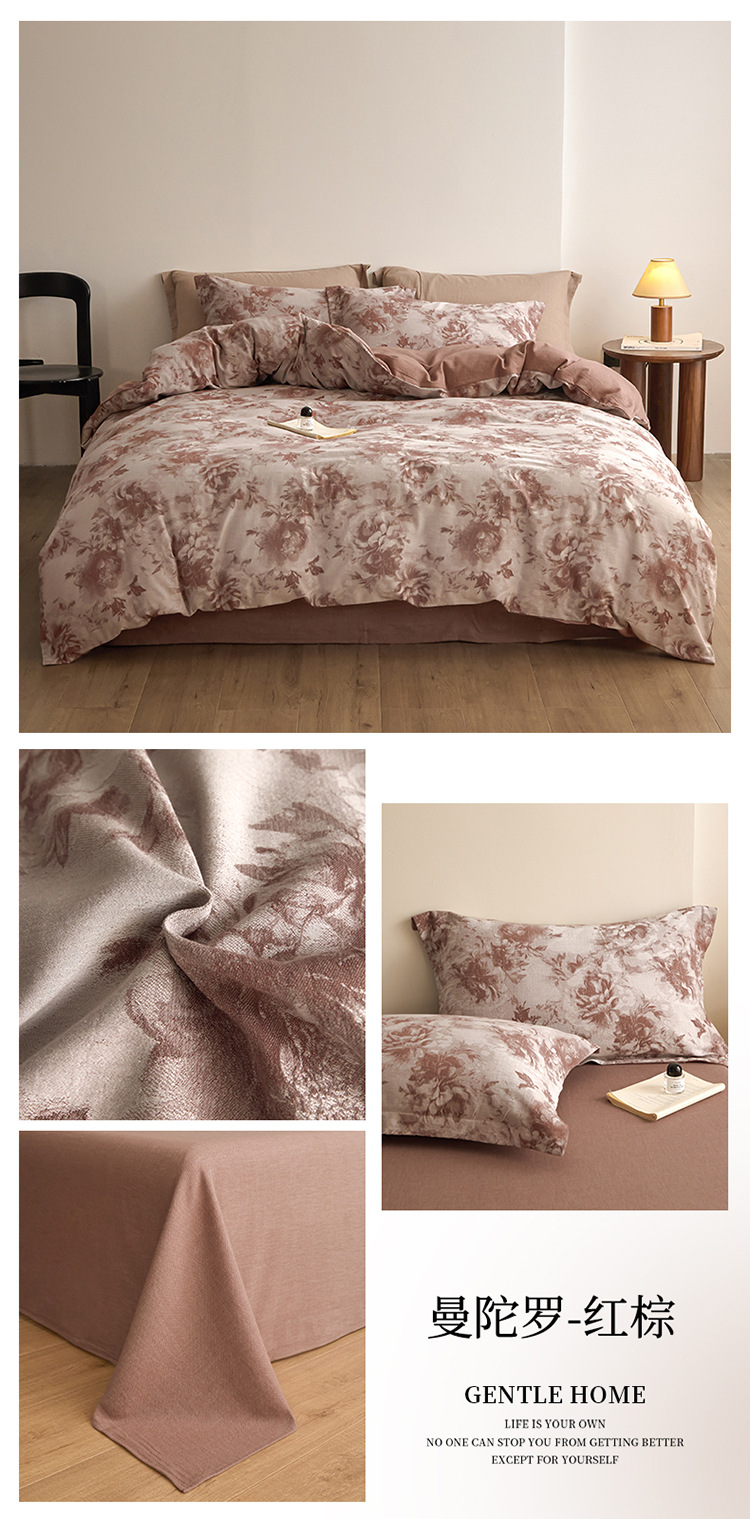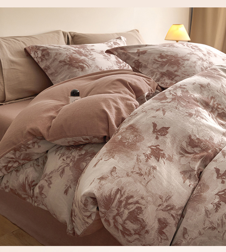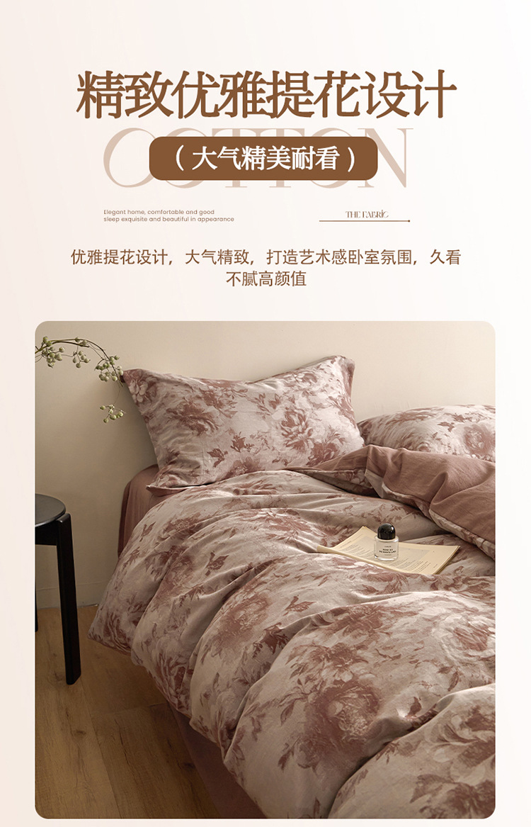 【复古三层纱提花四件套】复古三层纱四件套良品提花全棉套件全棉柔软纱布民宿床品