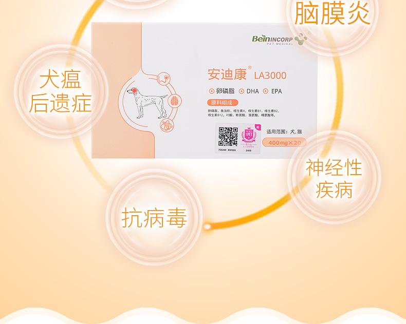 拜恩安迪康LA3000狗猫神经炎脑膜炎犬瘟后遗症抽搐癫痫神经营养剂