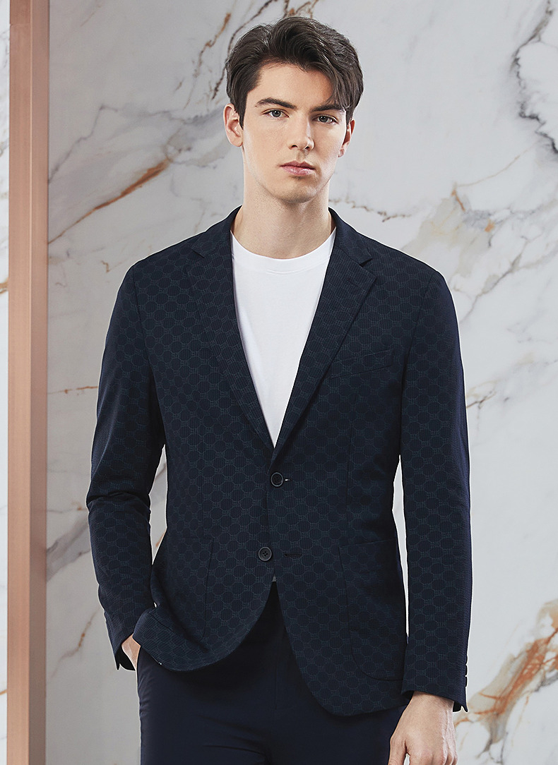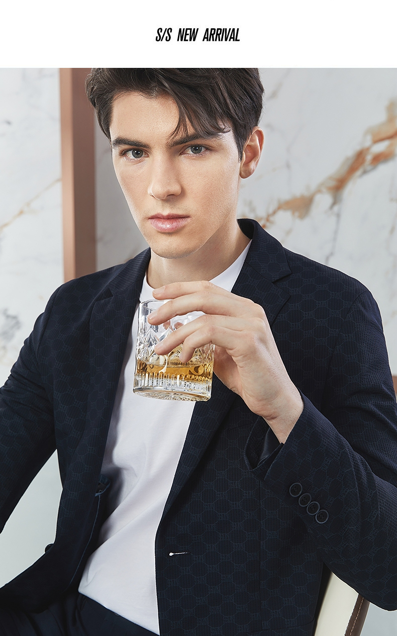 柒牌平驳领西装男2024春季新款商务休闲肌理条纹修身男士西服外套 126C70800