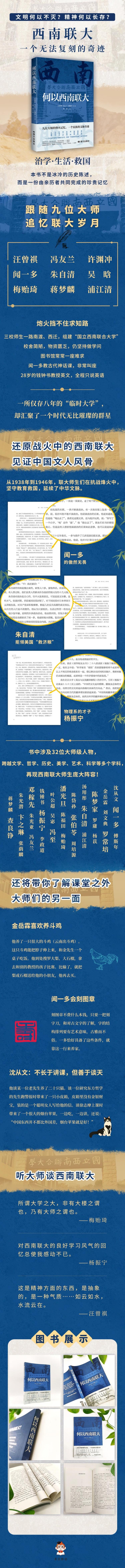 ●辑一 汪曾祺:星斗其文,赤子其人 沈从文先生在西南联大 闻一多先生上课 金岳霖先生 西南联大中文系 七载云烟 辑二 冯友兰:斯人斯事,可怀可念 西南联大时期的回忆 怀念金岳霖先生 怀念梅贻琦先生——致梅贻琦铜像揭幕典礼 回念朱佩弦先生与闻一多先生 辑三 许渊冲:流年似水,浮生若梦 追忆逝水年华 再忆逝水年华 我眼中的联大三校长 叶公超、钱锺书、杨振宁 冯友兰讲哲学 辑四 闻一多:行走人间,无惧无畏 八年来的回忆与感想 是原始,还是野蛮? “一二 一”运动始末记 五四历史座谈 给西南联大的从军回校同学讲话 辑五 朱自清:君子如斯,卓尔不凡 西南联合大学九周年校庆祝辞 有意义的民俗记录 蒙自杂记 闻一多先生怎样走着中国文学的道路 中国学术界的大损失——悼闻一多先生 辑六 吴晗:先生之风,山高水长 联大精神 校庆献辞 记张荫麟 闻一多的“手工业” 关于朱自清不领美国“救济粮” 辑七 梅贻琦:至暗时刻,屹立不倒 国立西南联合大学要览 关于联大校舍被炸的启事 日军轰炸下的西南联大 在联大校庆九周年纪念会上的讲话摘要 记录李公朴、闻一多先生被暗杀的日记 辑八 蒋梦麟:弦歌不辍,刚毅坚卓 边城昆明 战时之昆明 大学逃难 北大之精神 纪念日话联大回忆当年 辑九 浦江清:但行前路,无问西东 西行日记(节选) 论大学文学院的文学系 朱自清先生传略 纪念闻一多先生 在昆明过新年