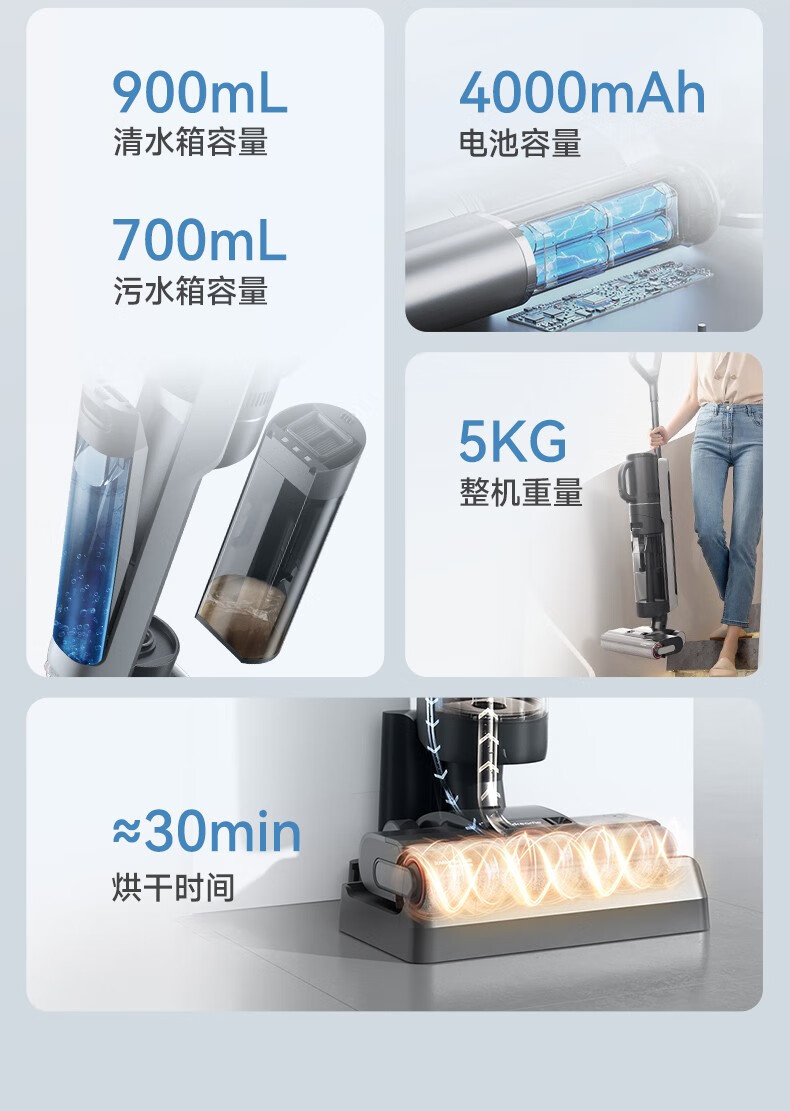 追觅dreame家用洗地机M13Beta吸拖一体洗地机无线智能除螨拖地吸尘器热风烘干双贴边深度自清洁 追觅M13beta洗地机
