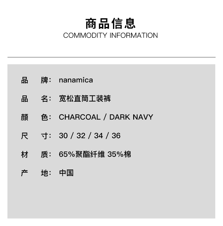 nanamica Cargo Deck 男女款高密度混纺机能性宽松直筒工装裤