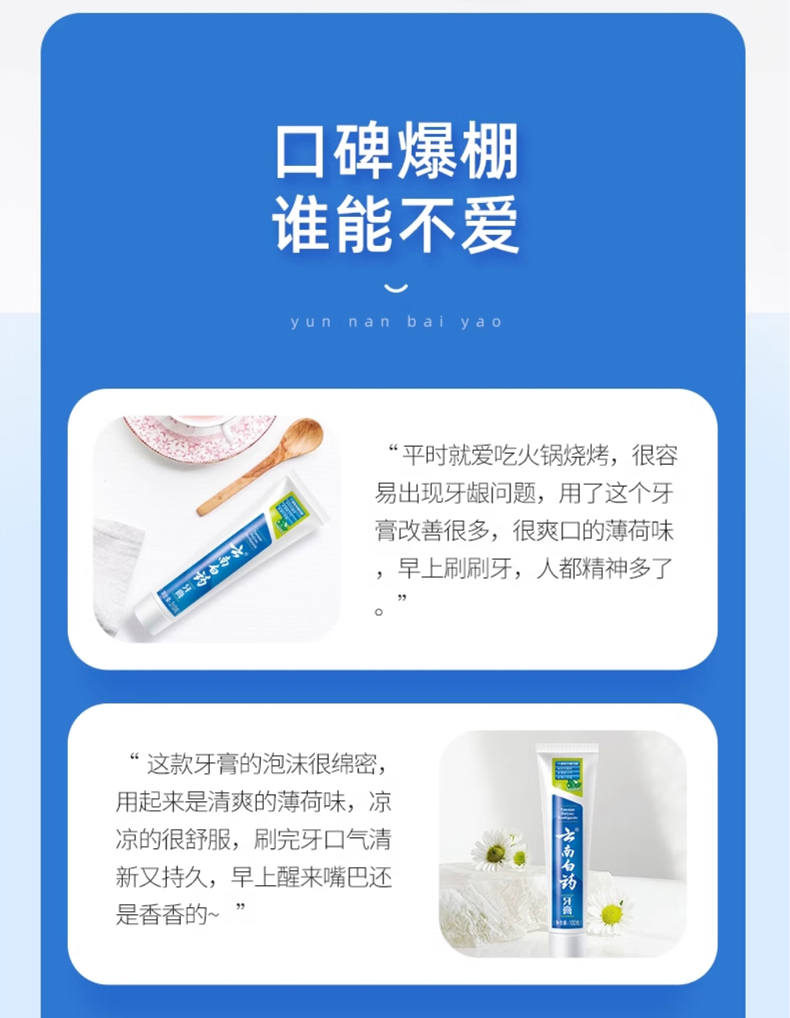 【白药精选】云南白药牙膏薄荷清爽型多规格可选改善牙龈及口腔不适减轻牙龈问题