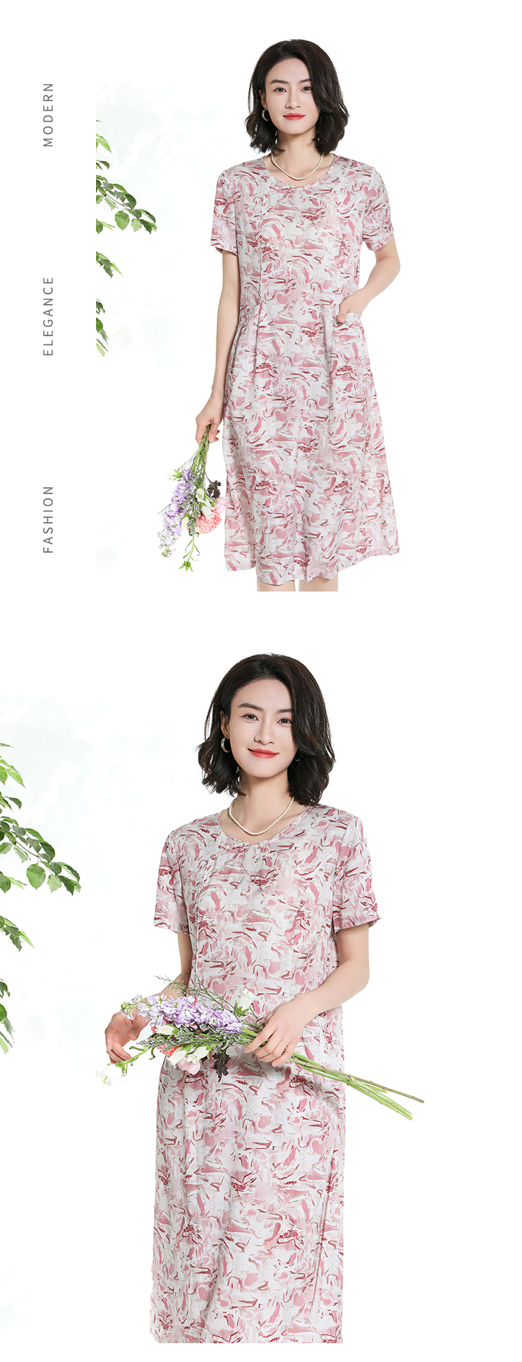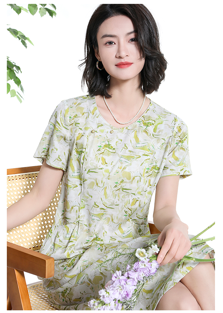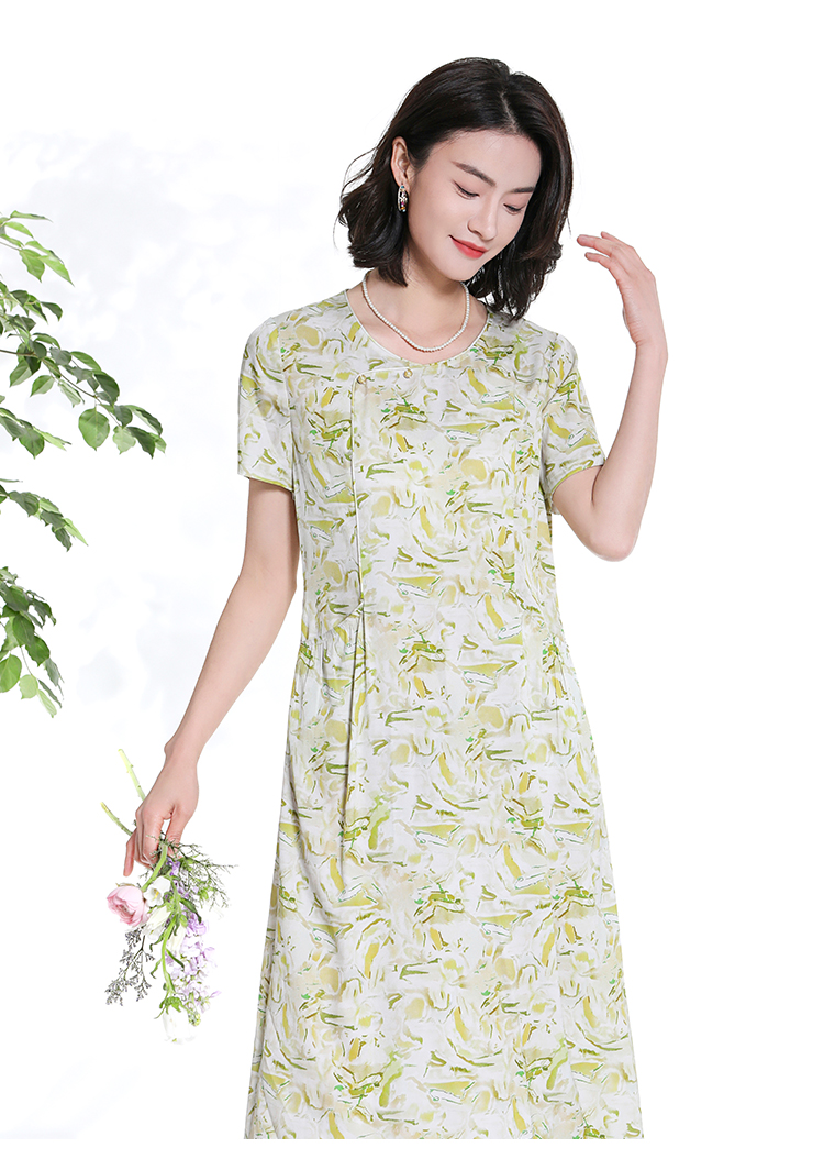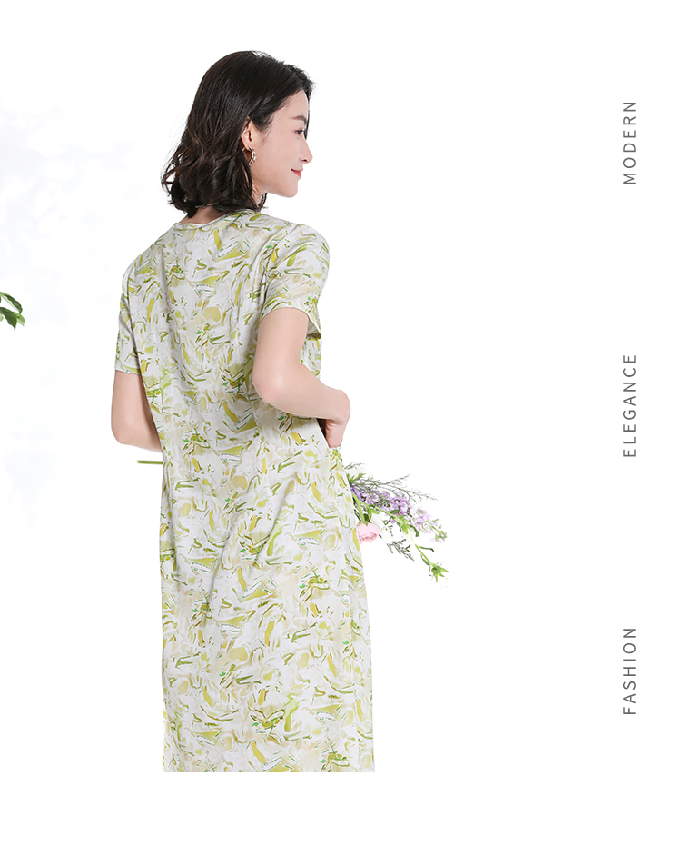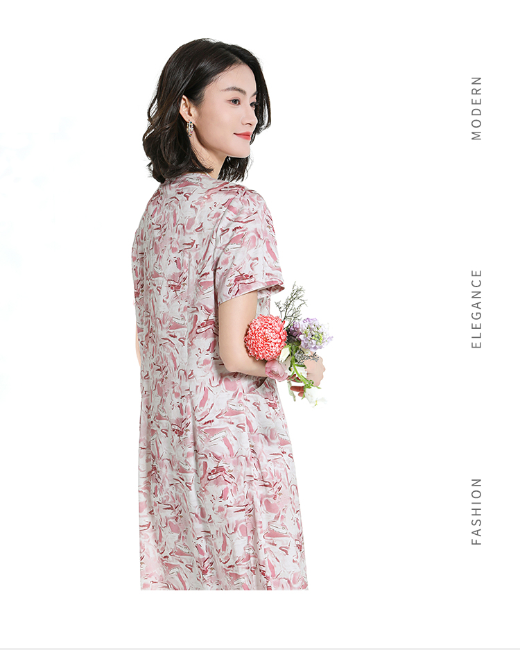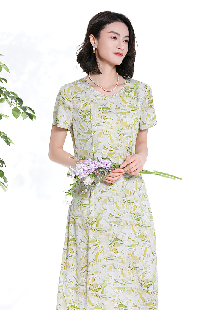 佐尔美夏季新款时尚气质碎花桑蚕丝短袖连衣裙女M42LS34