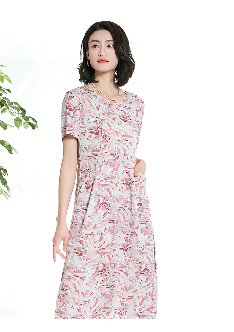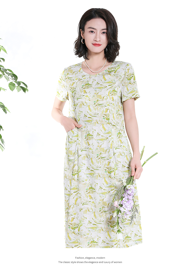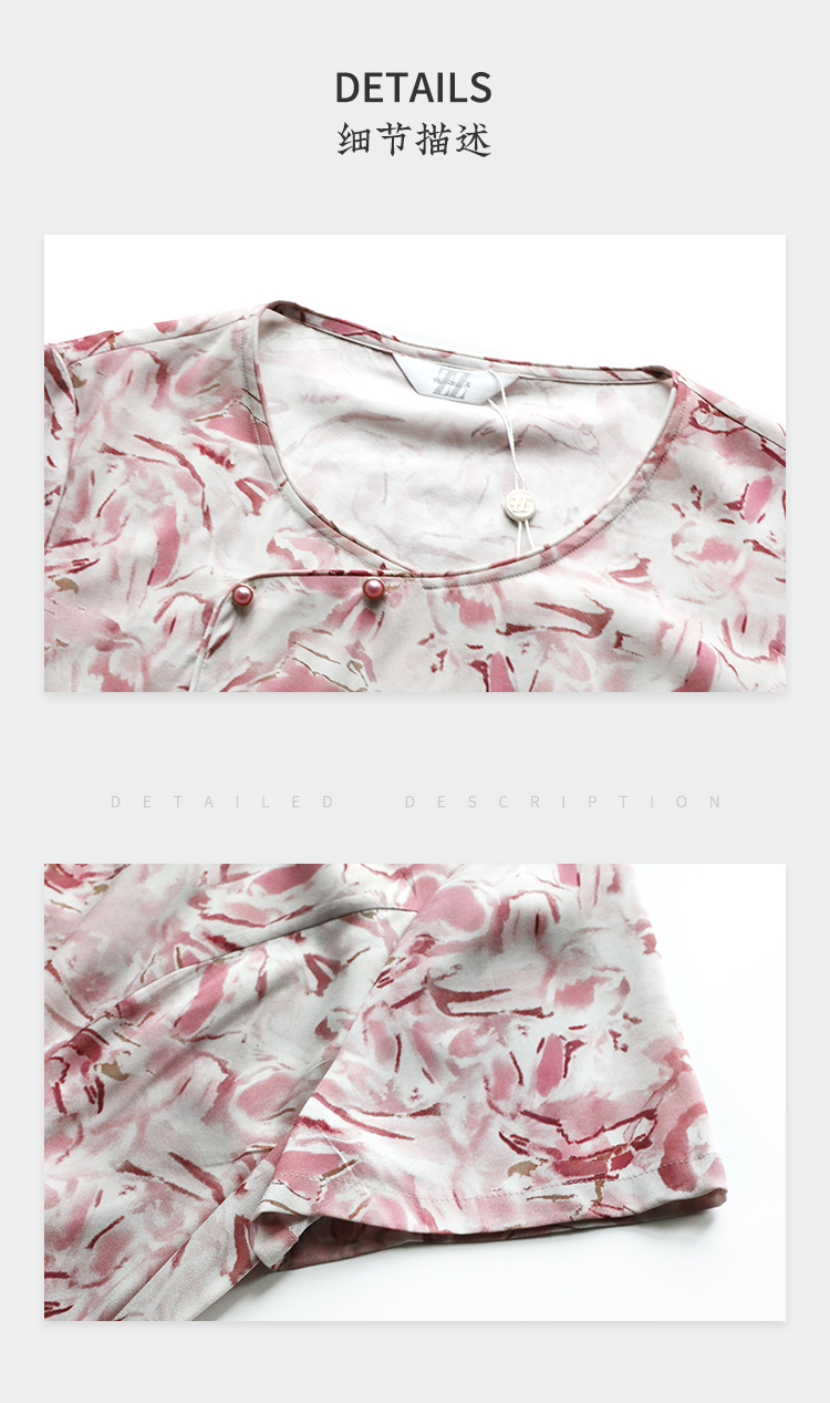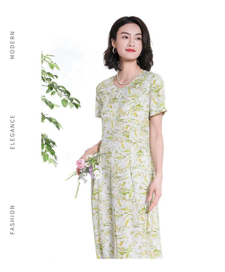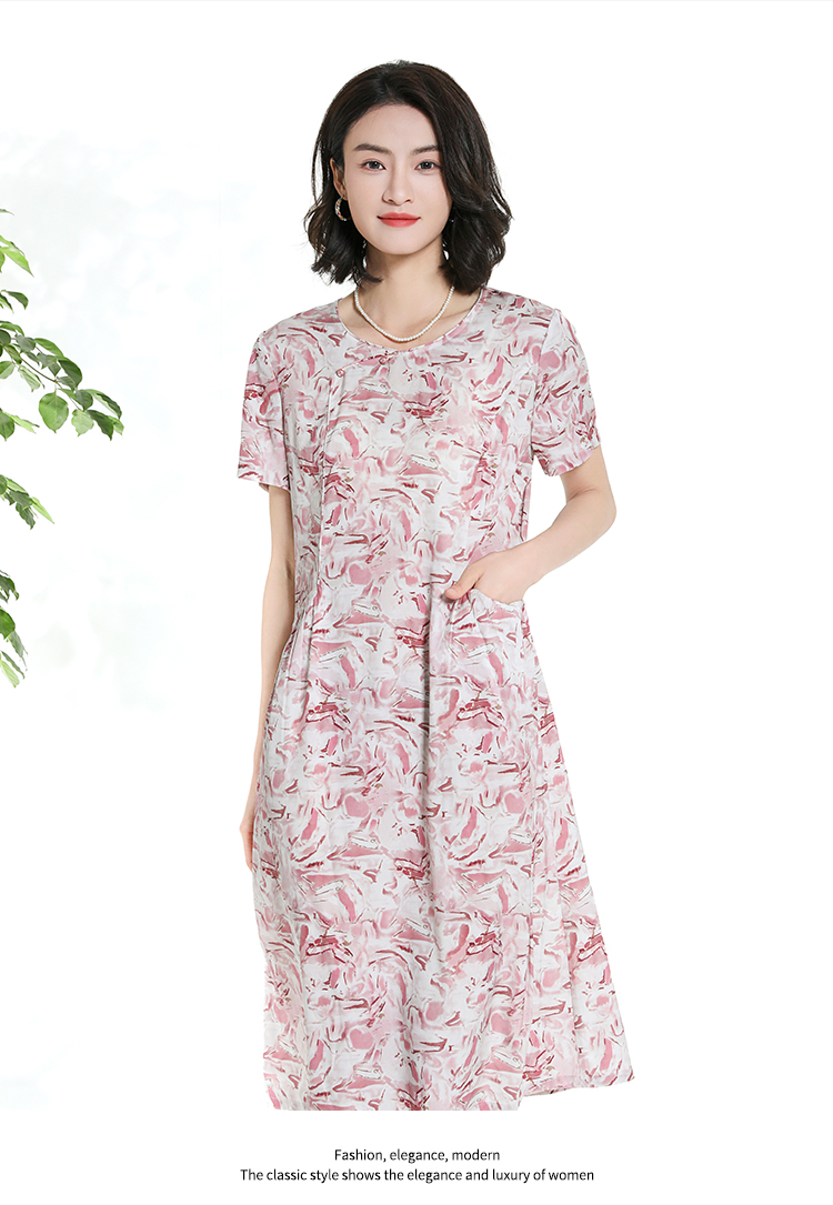 佐尔美夏季新款时尚气质碎花桑蚕丝短袖连衣裙女M42LS34