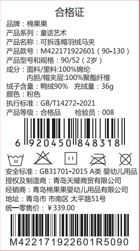 | 充绒量(G) | 36 | 40 | 45 | 50 | 56 |
