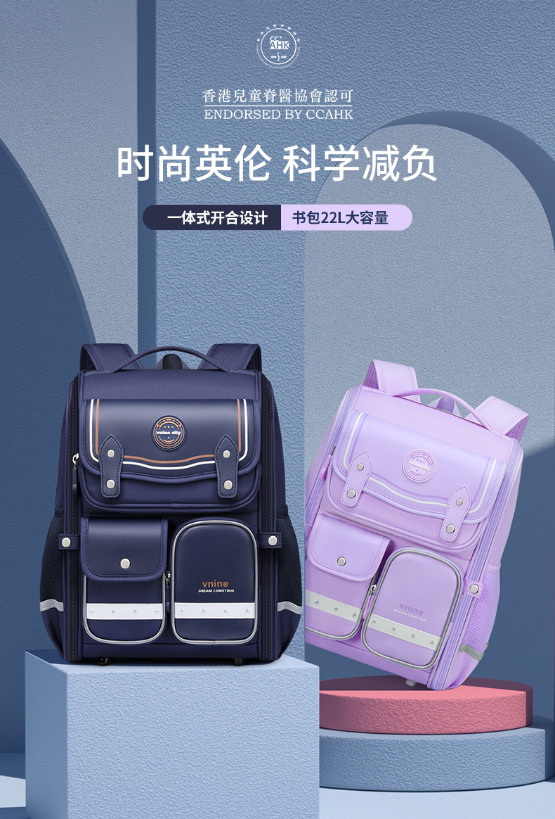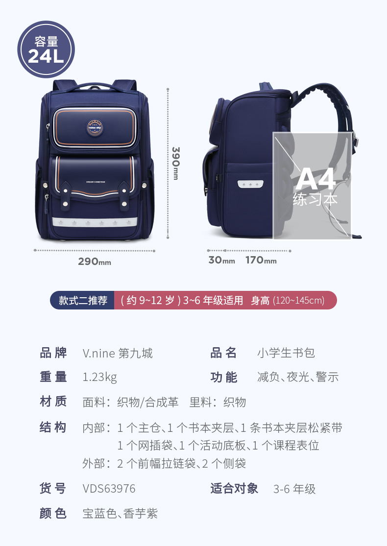 第九城 VDS63976 书包小学生1-6年级大容量护脊减负儿童书包2色可选