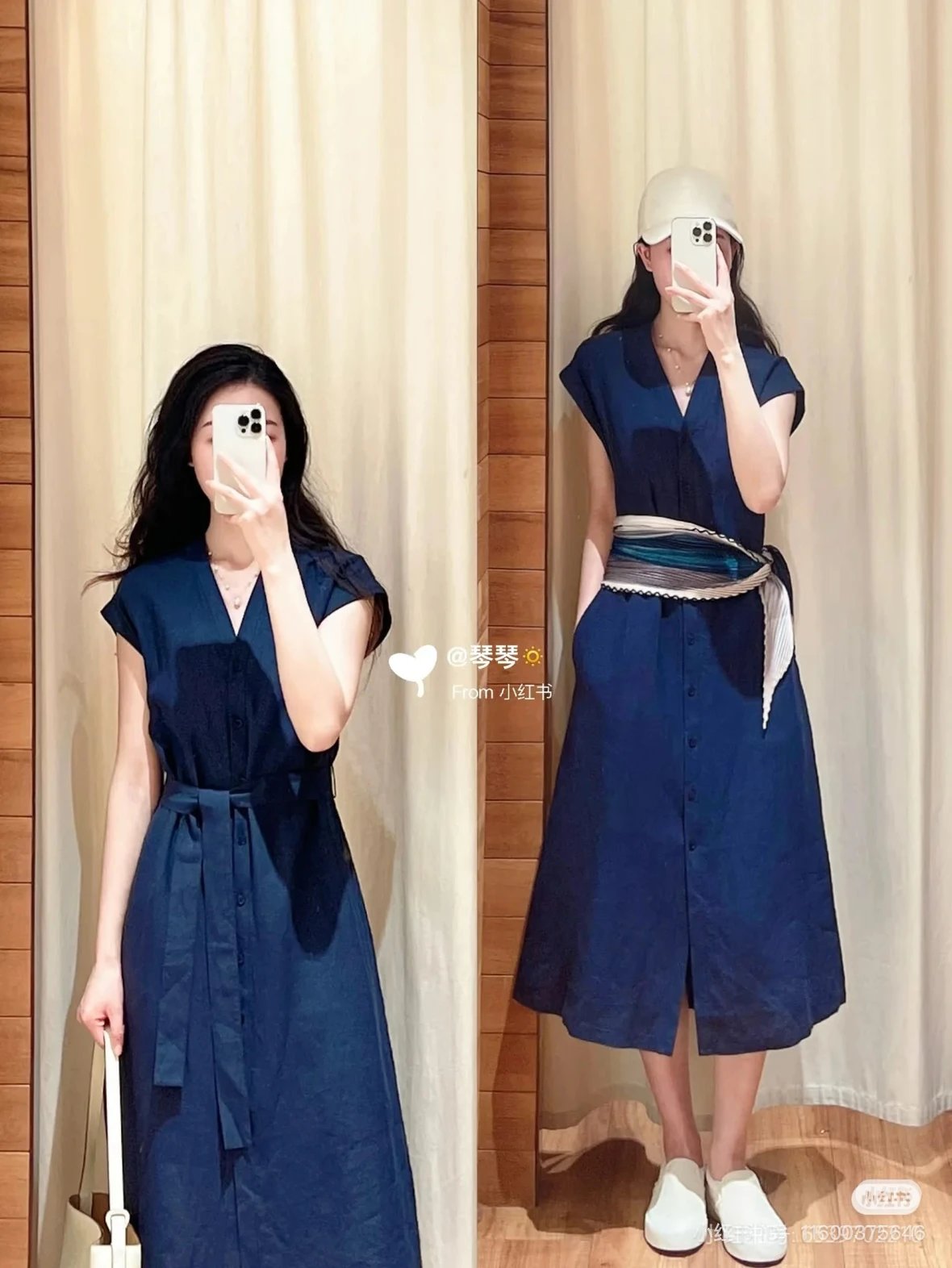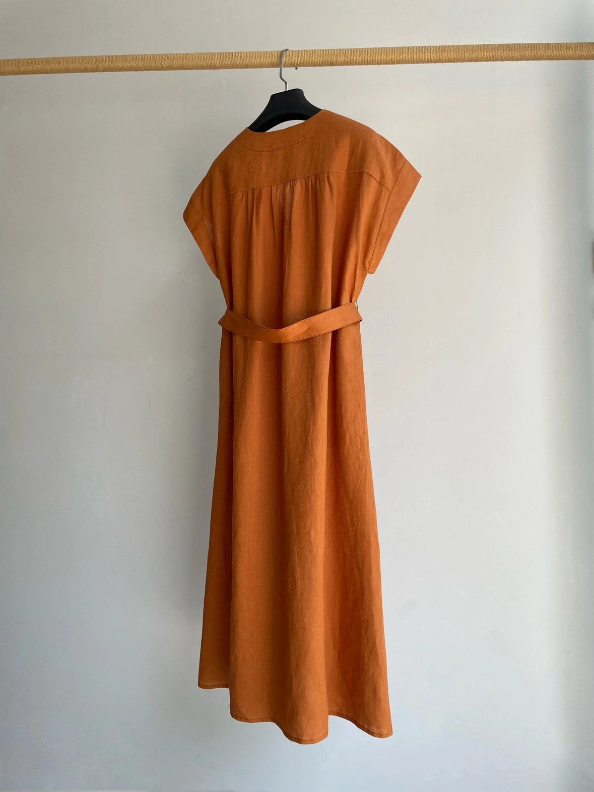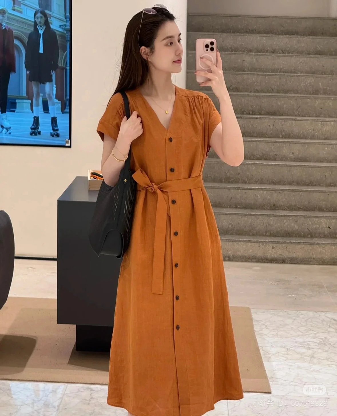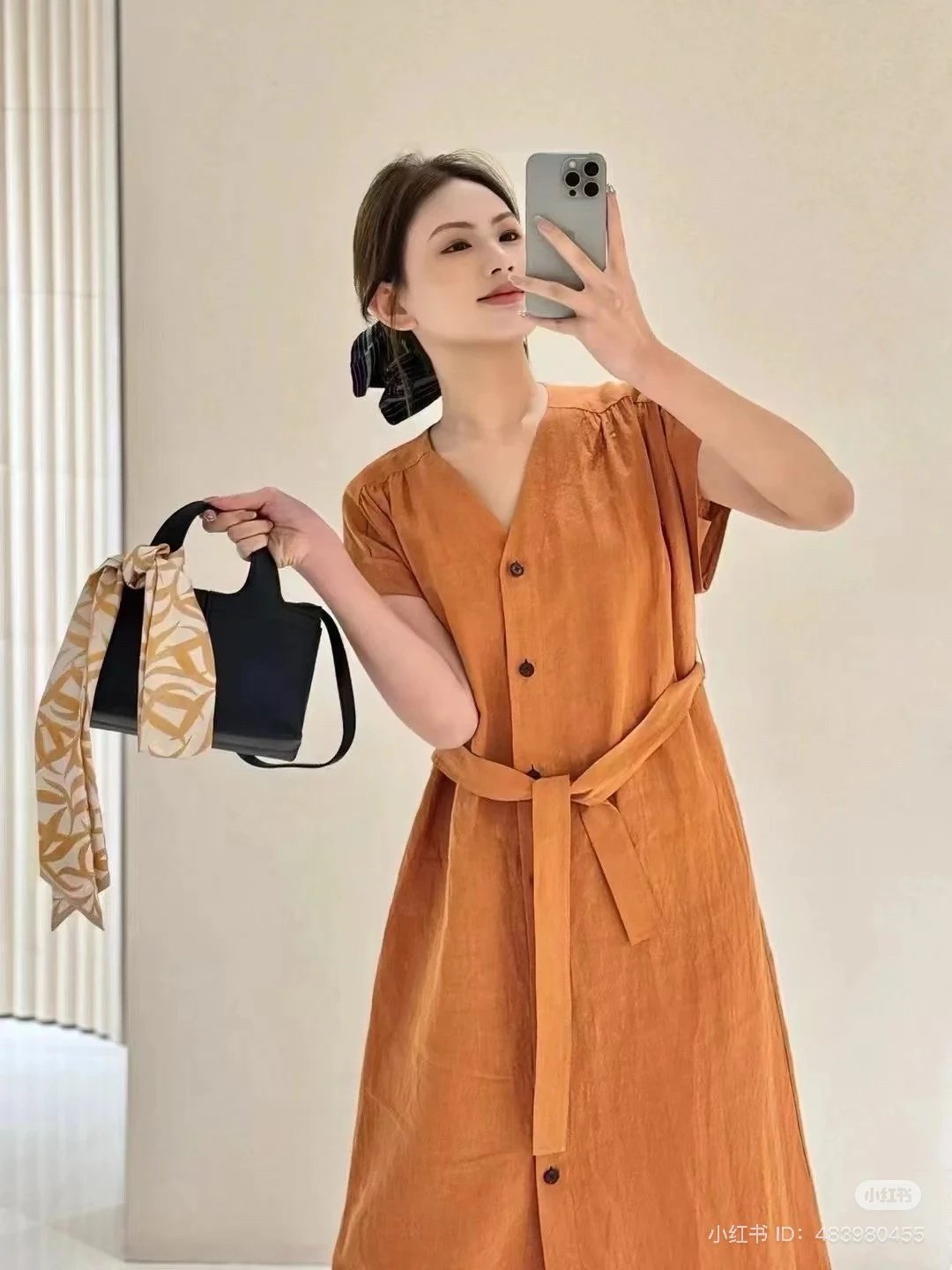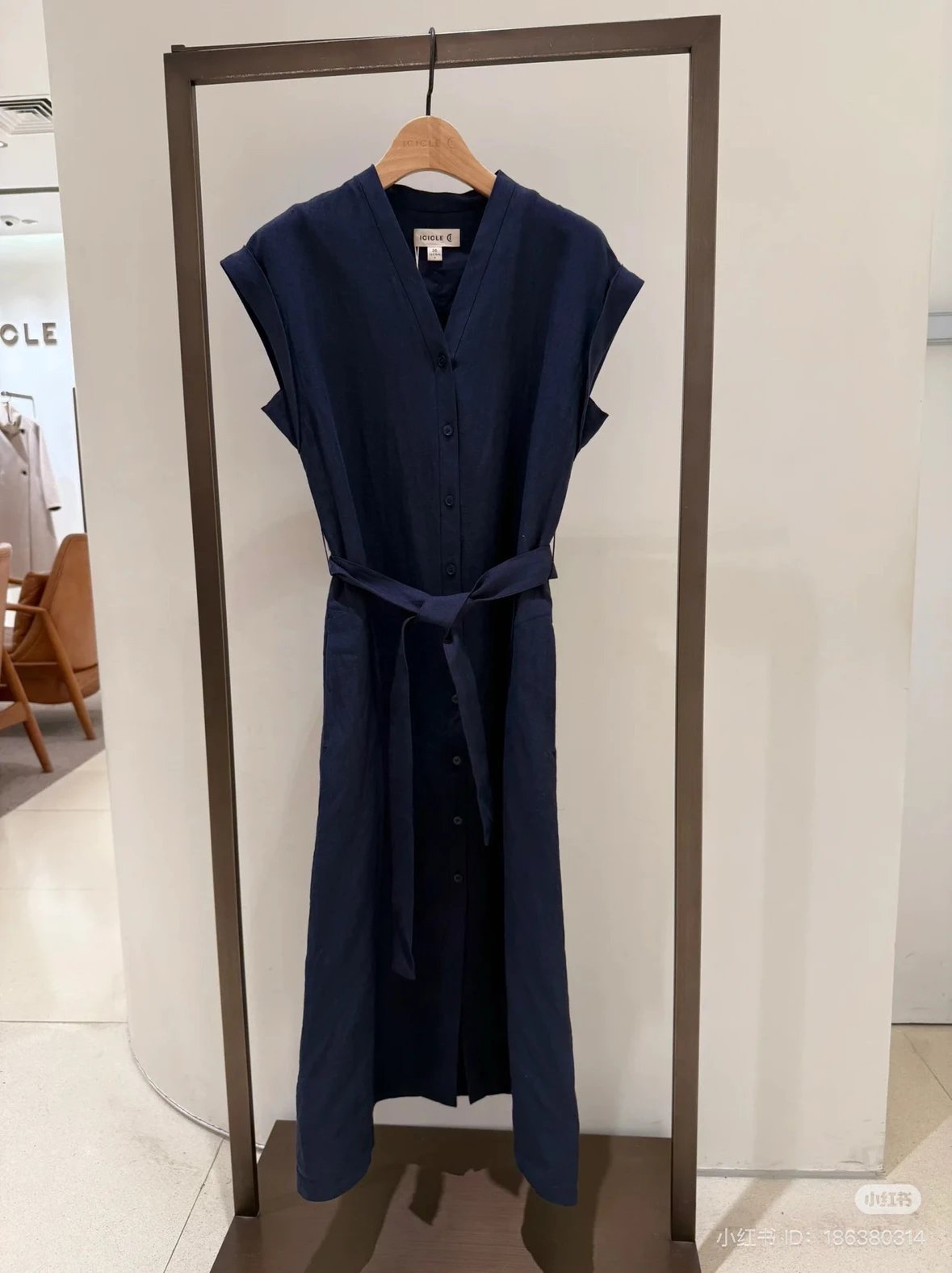 通勤必备 贸易公司 小禾V领风衣式亚麻连衣裙 比利时亚麻连衣裙 轻盈透气