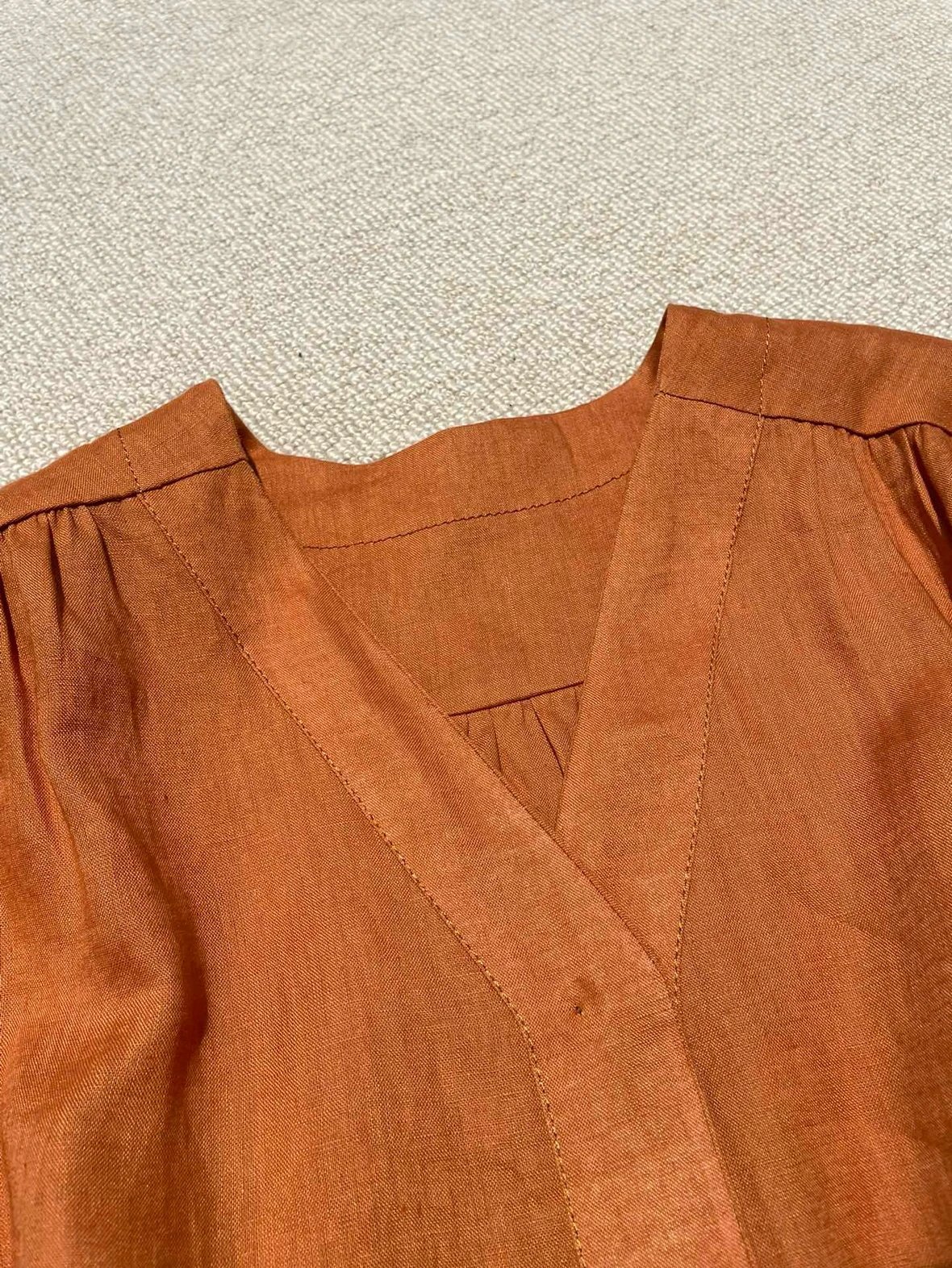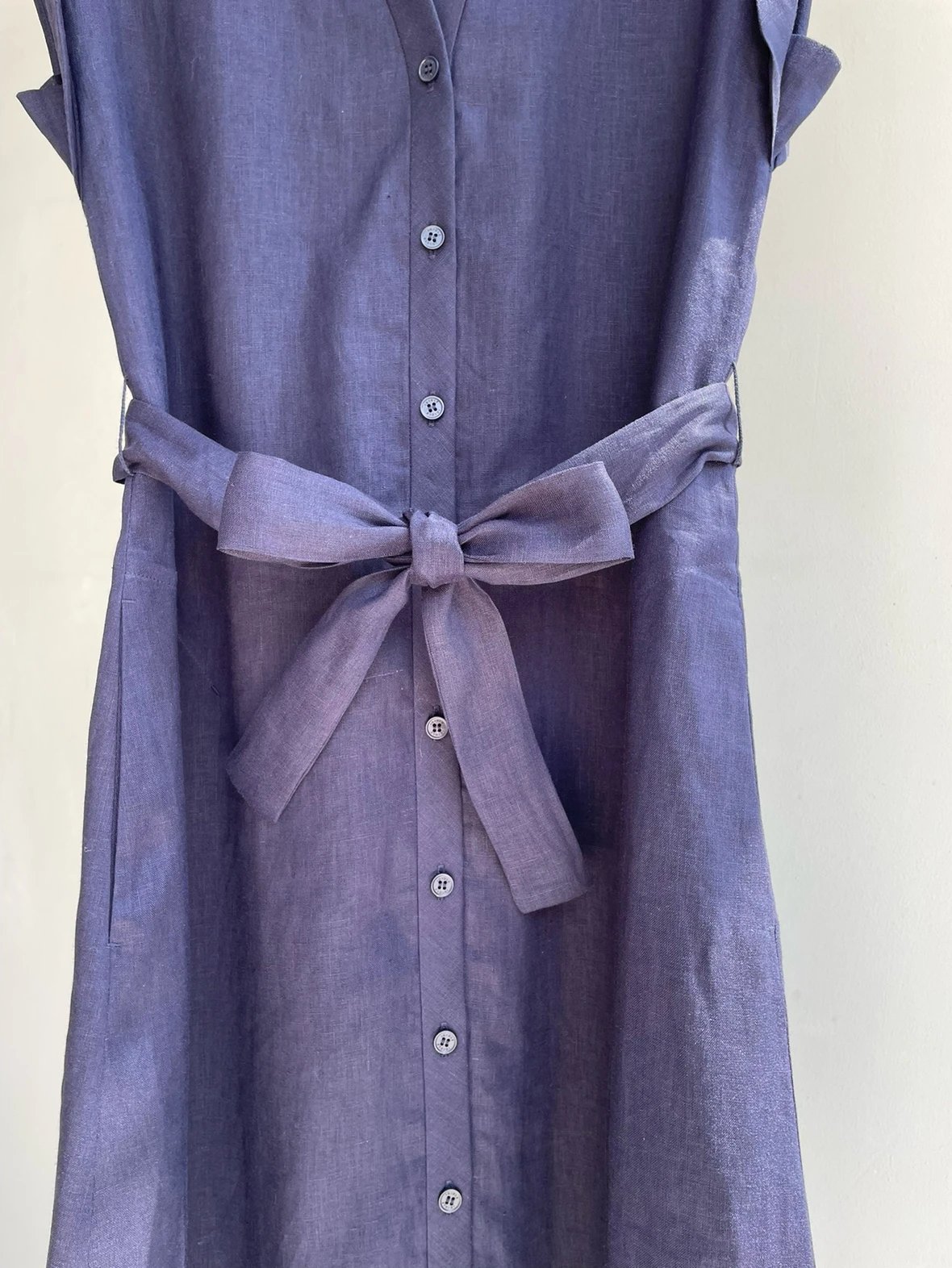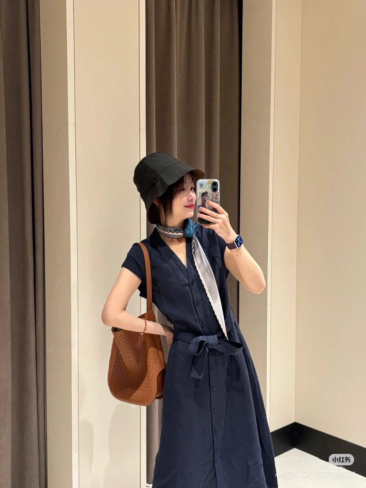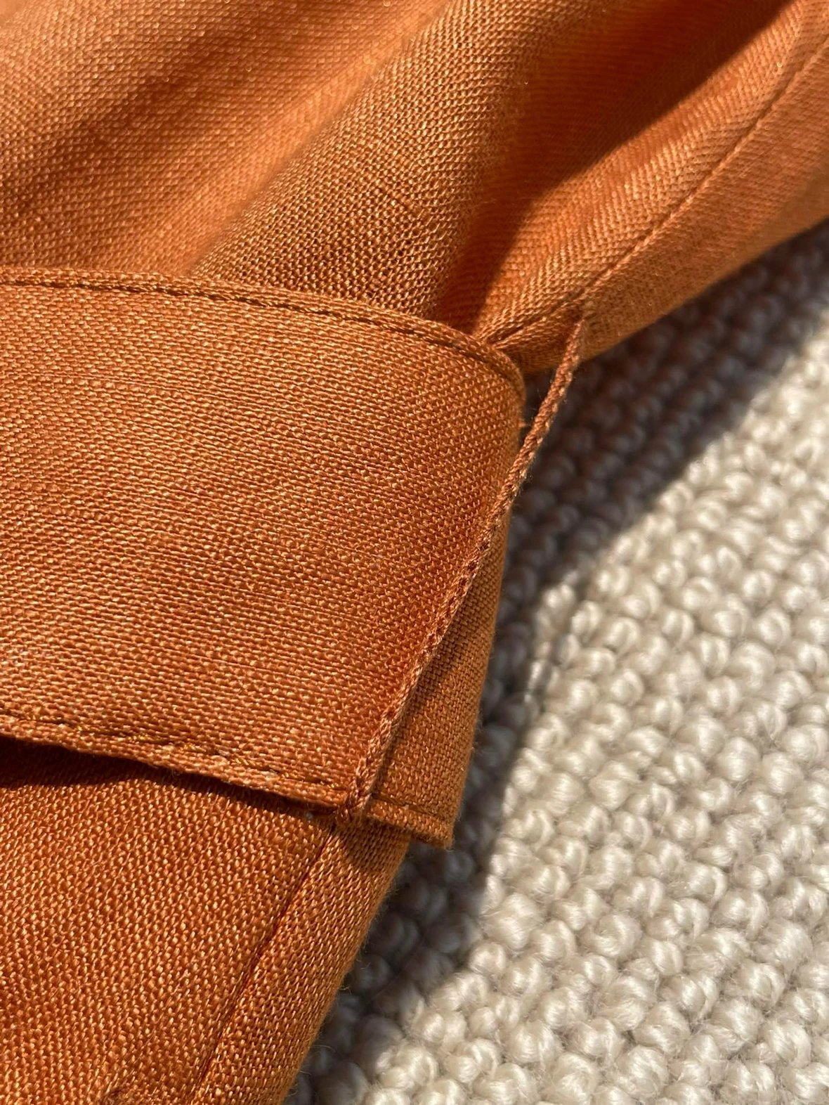 通勤必备 贸易公司 小禾V领风衣式亚麻连衣裙 比利时亚麻连衣裙 轻盈透气