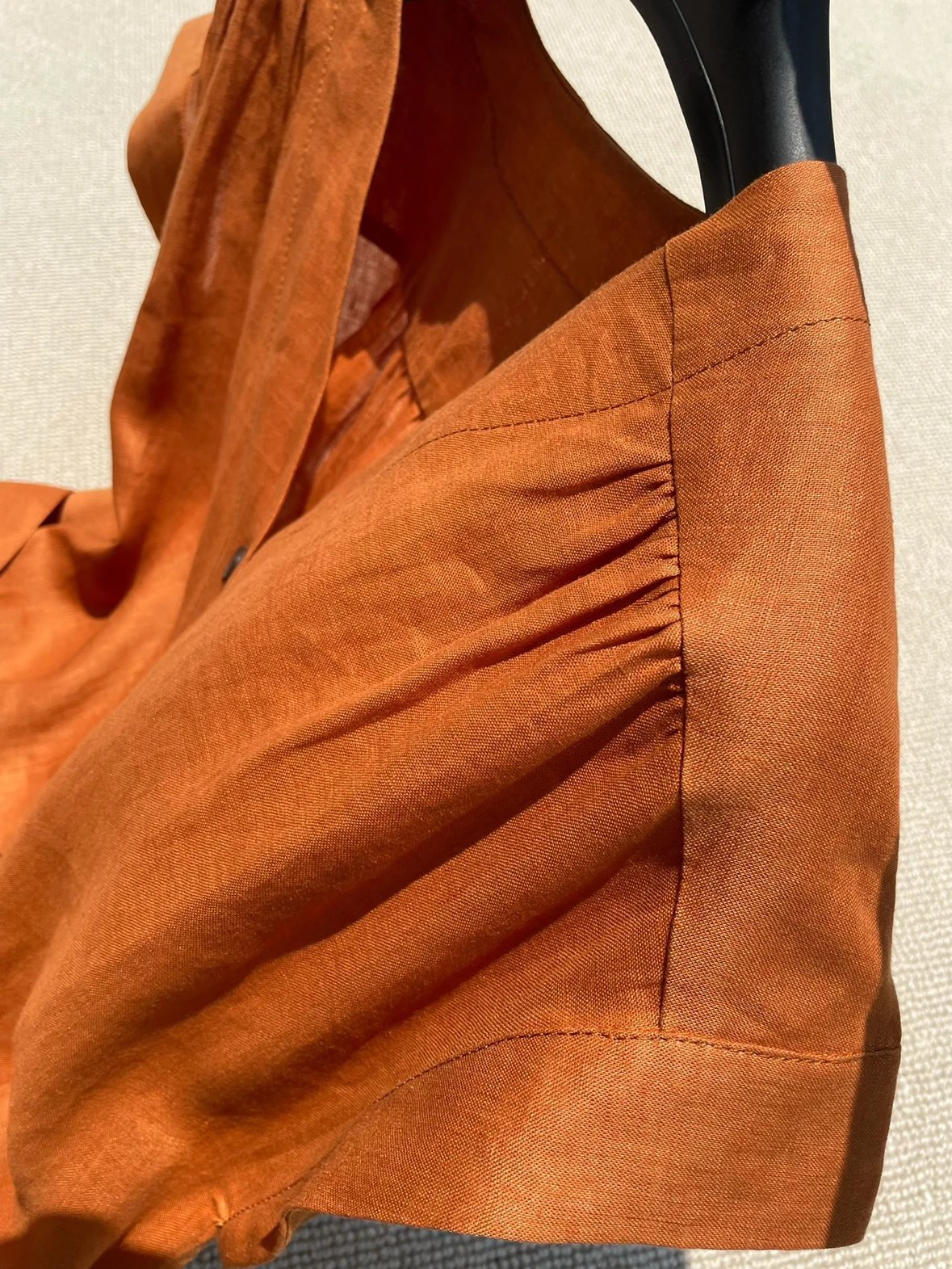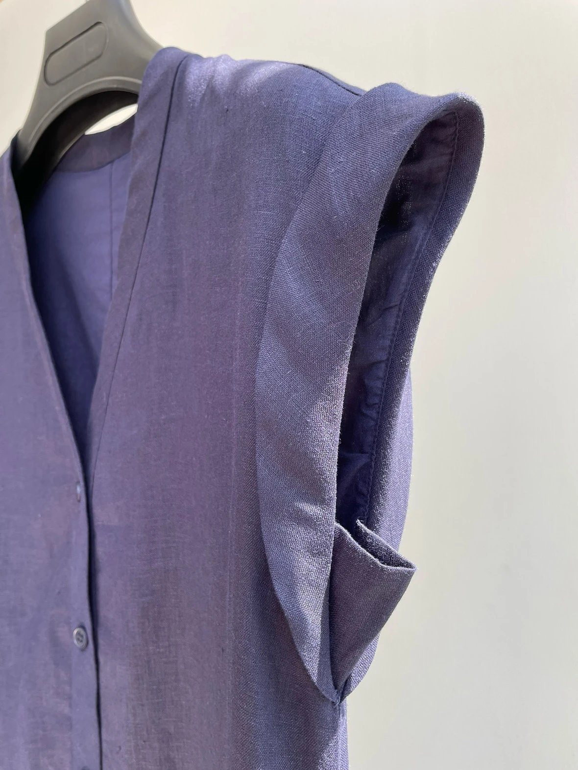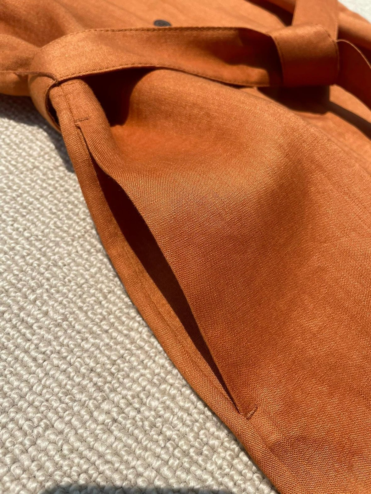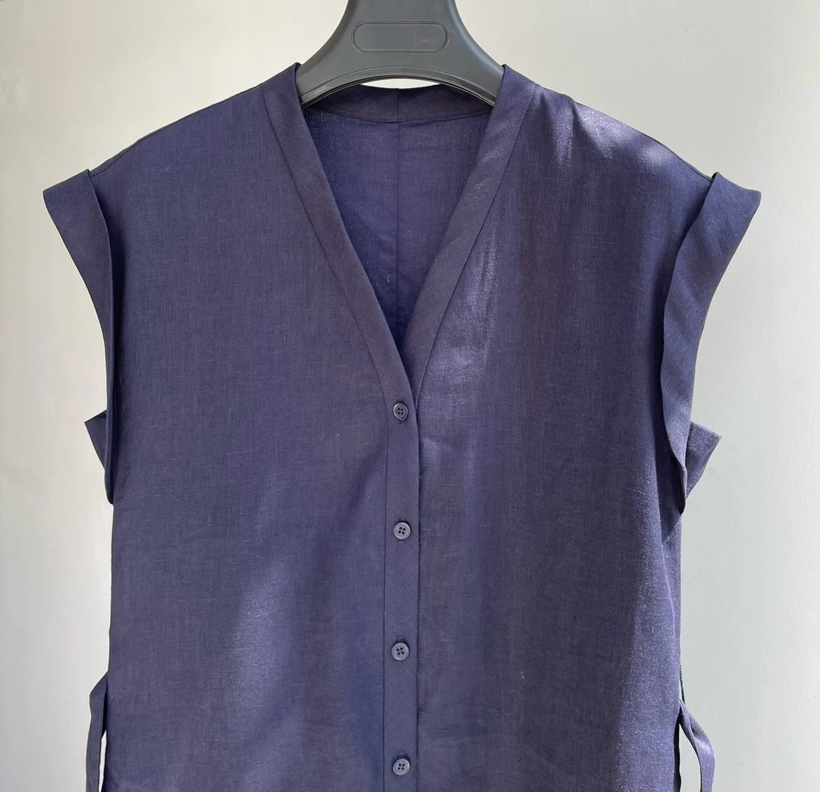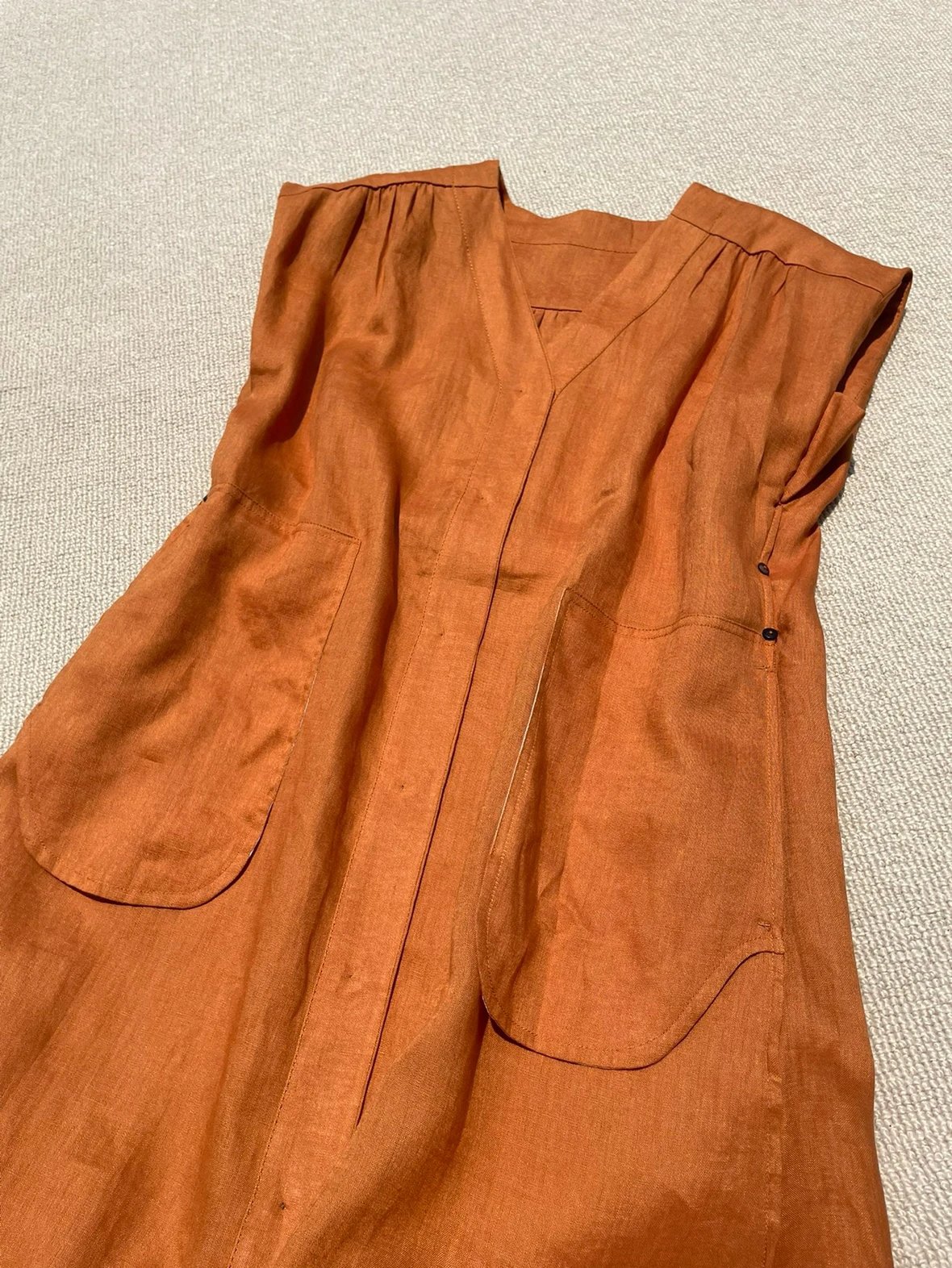 通勤必备 贸易公司 小禾V领风衣式亚麻连衣裙 比利时亚麻连衣裙 轻盈透气