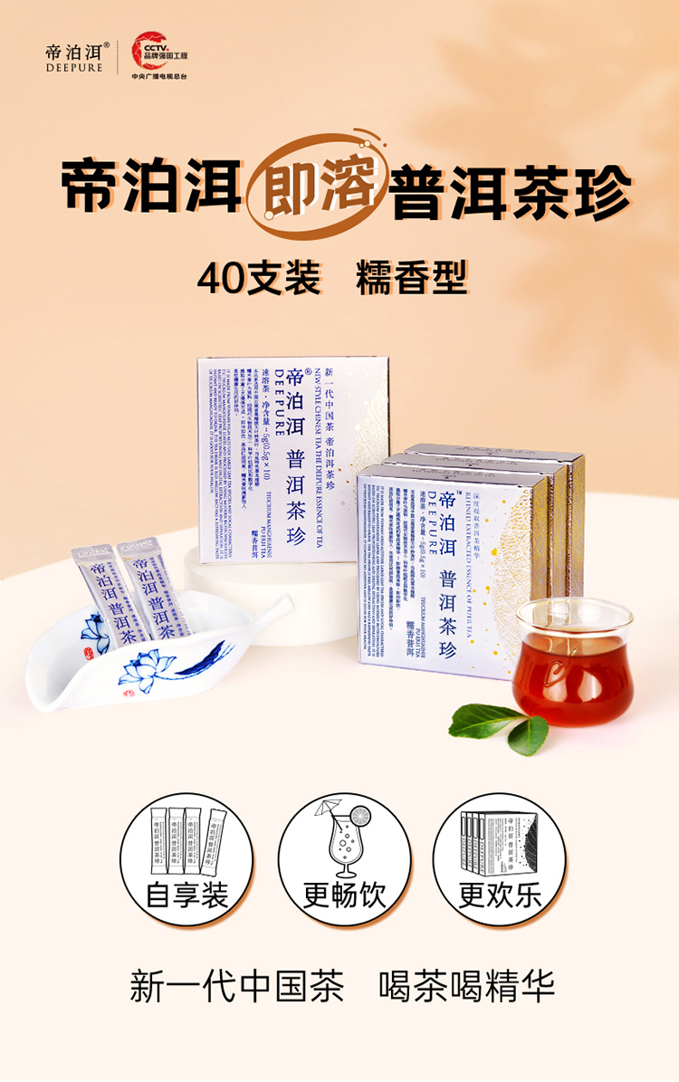 帝泊洱醇粹即溶云南大叶种普洱熟茶糯米香叶萃取40支
