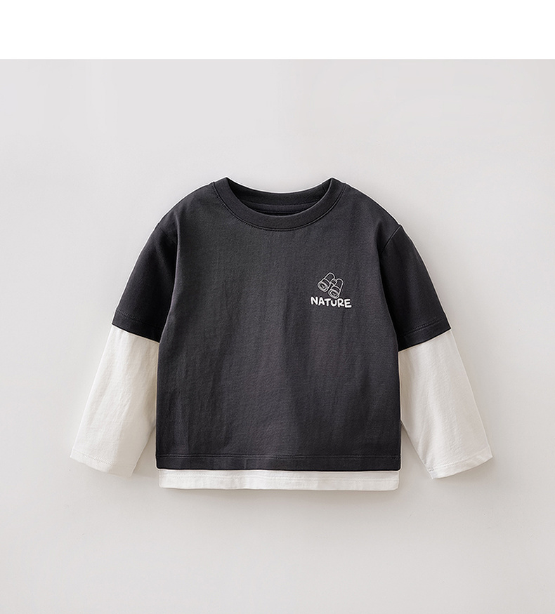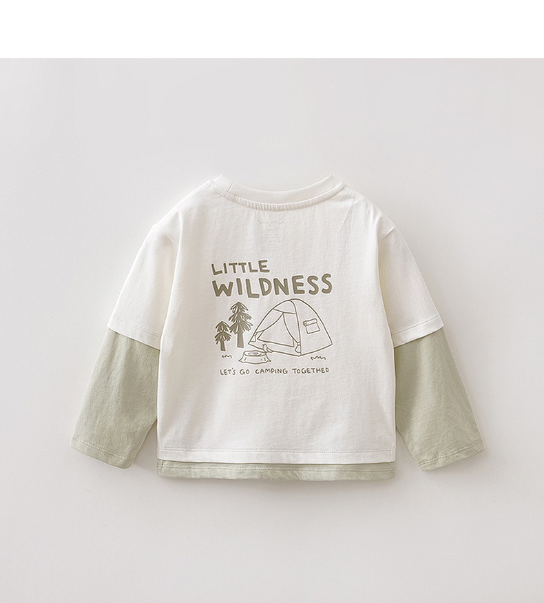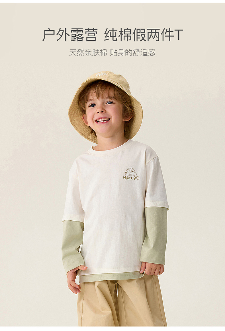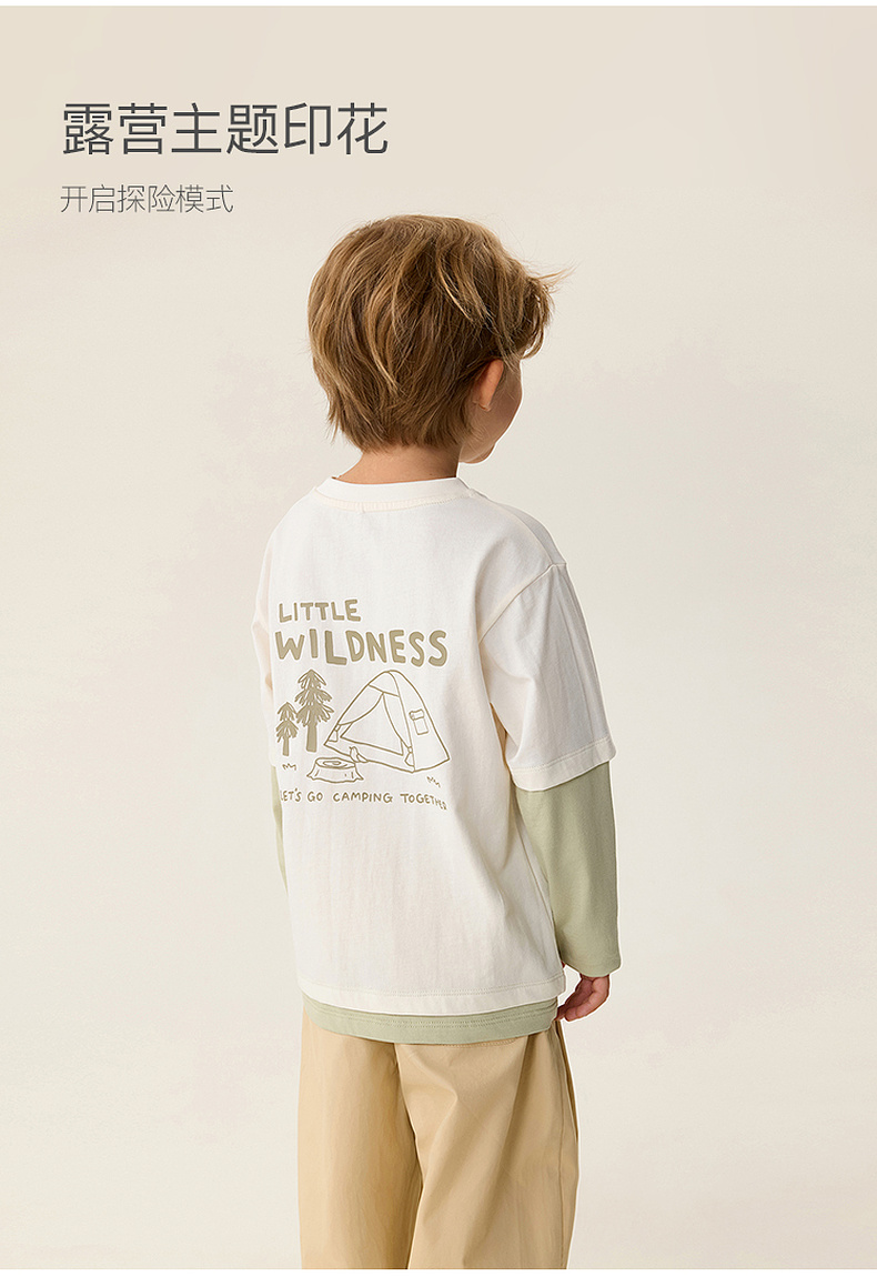 马克珍妮户外露营男童纯棉假两件T恤2026年春装新款560017