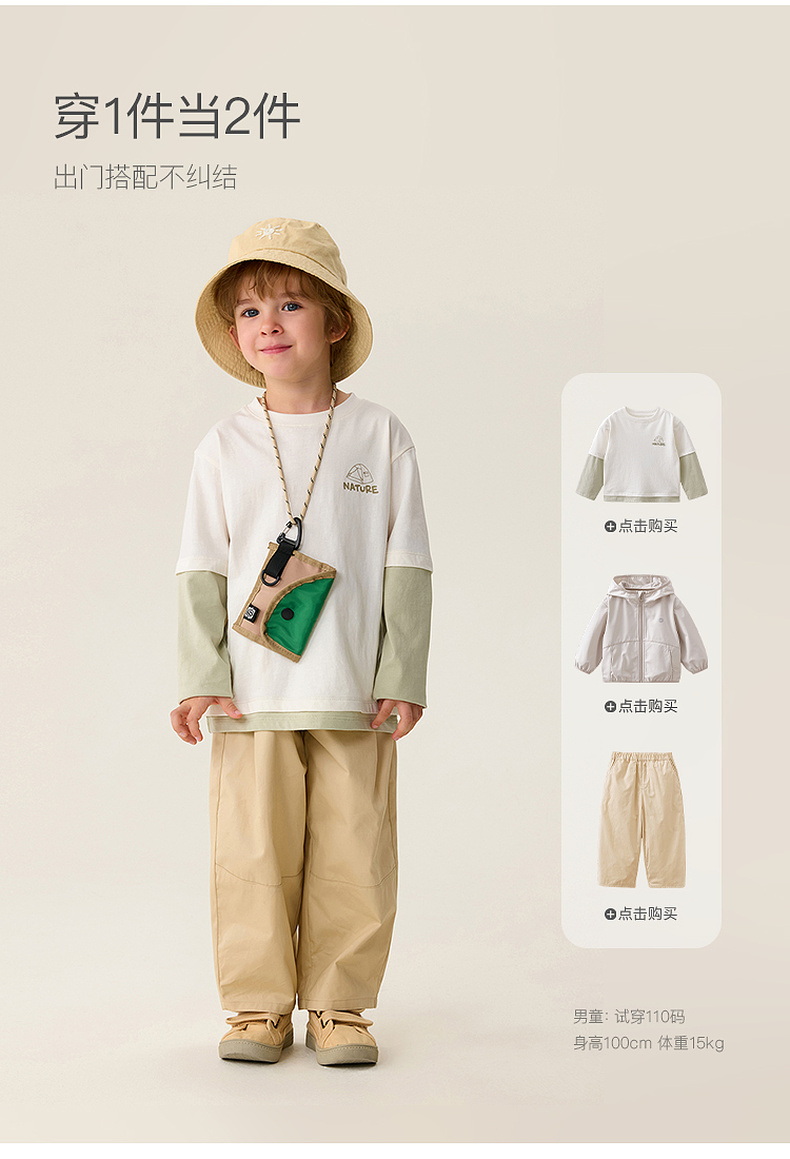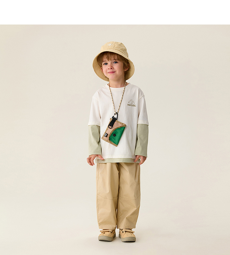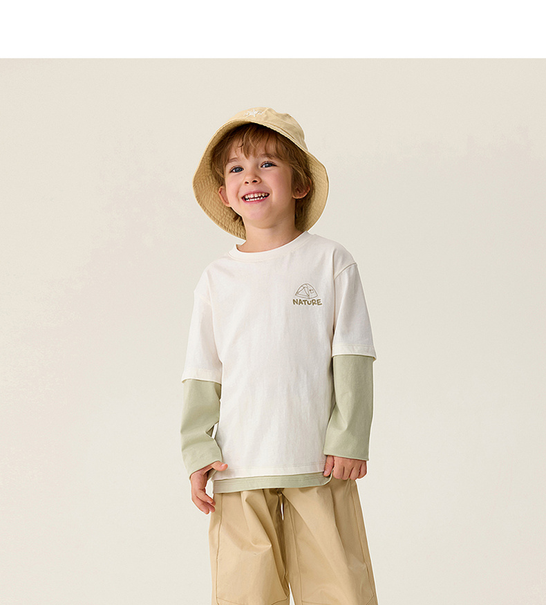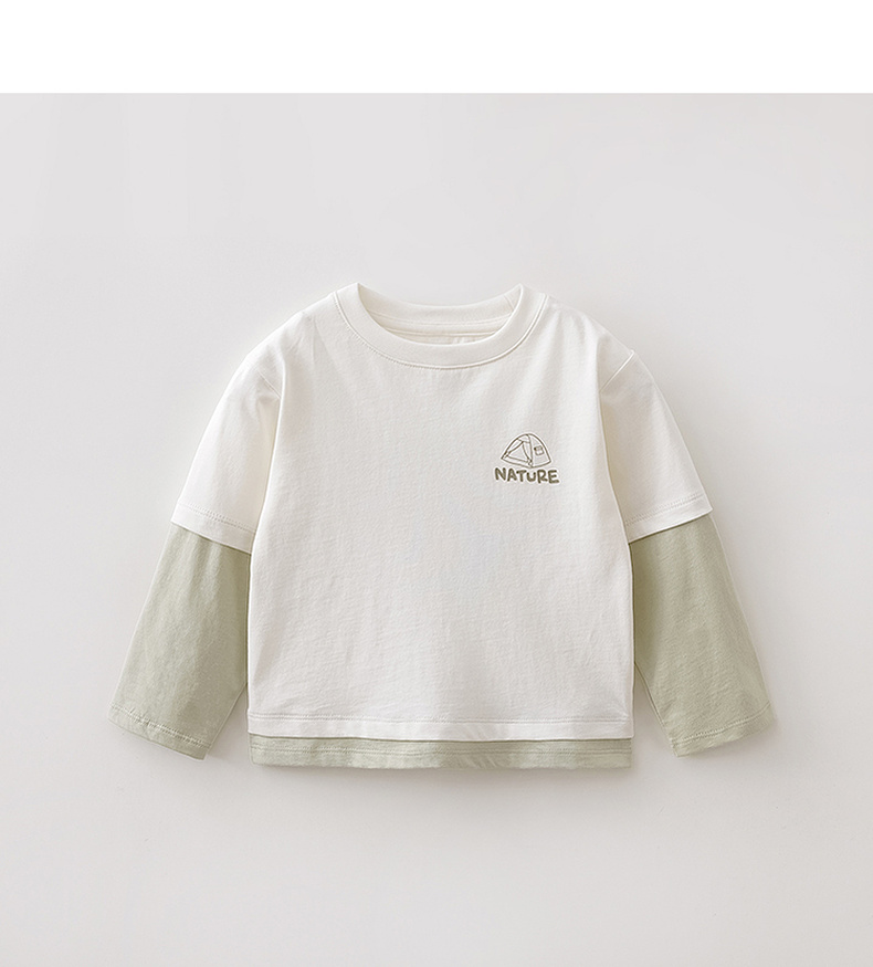 马克珍妮户外露营男童纯棉假两件T恤2026年春装新款560017
