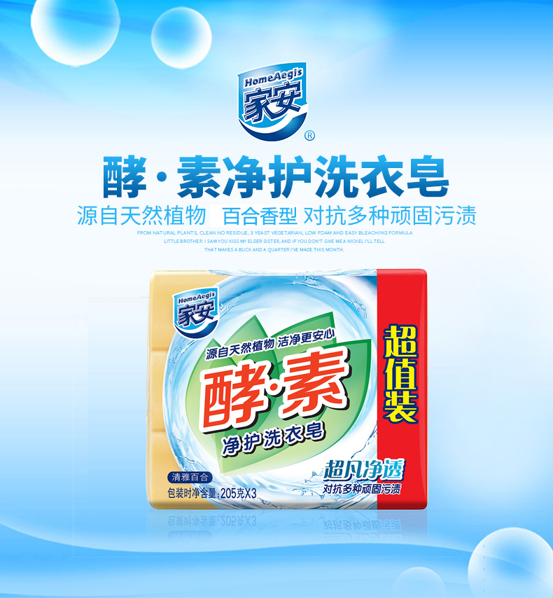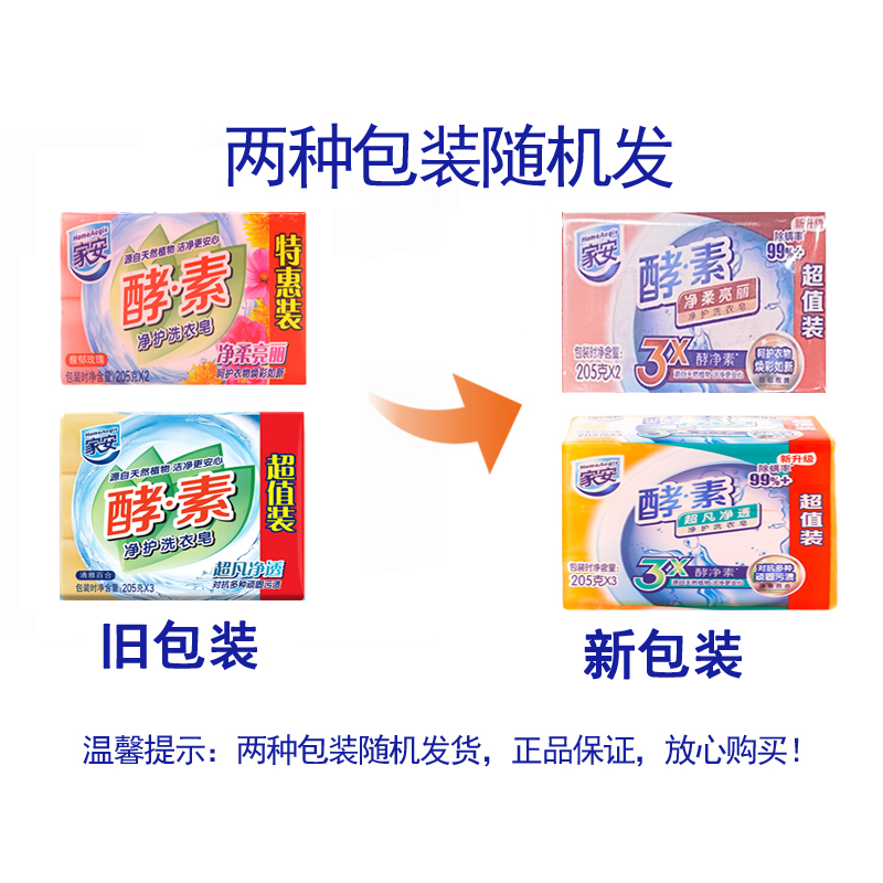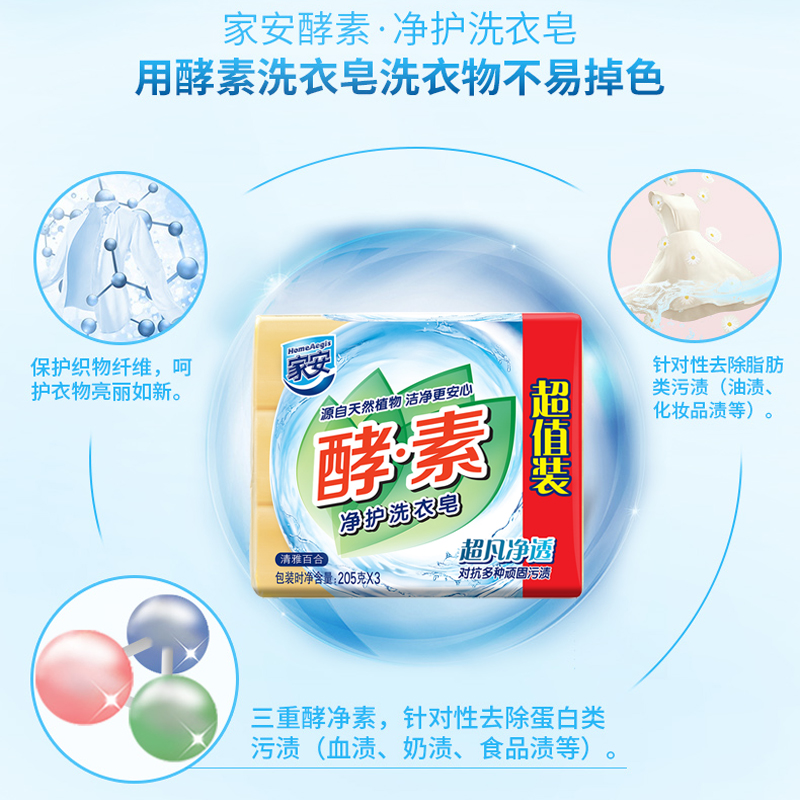家安酵素净护洗衣皂净柔亮丽 超凡净透去污渍护衣家庭装 净柔亮丽玫瑰香205g*2块