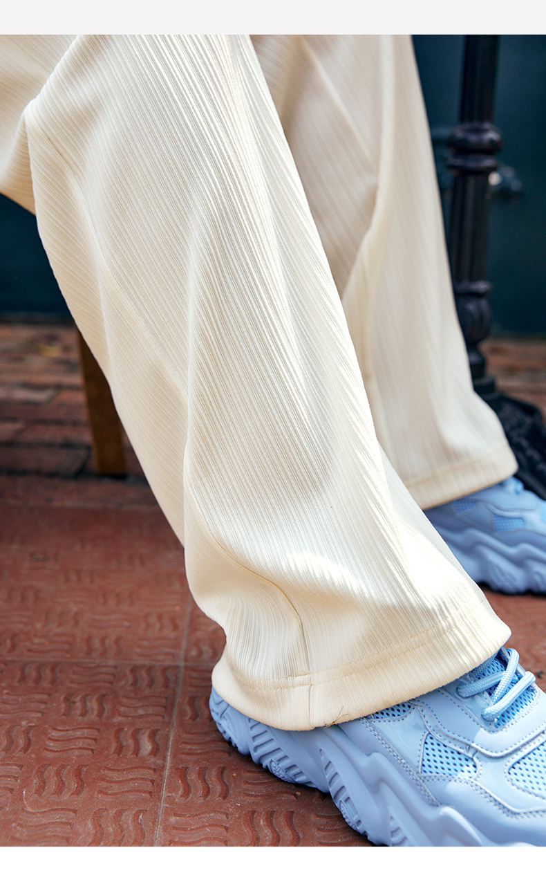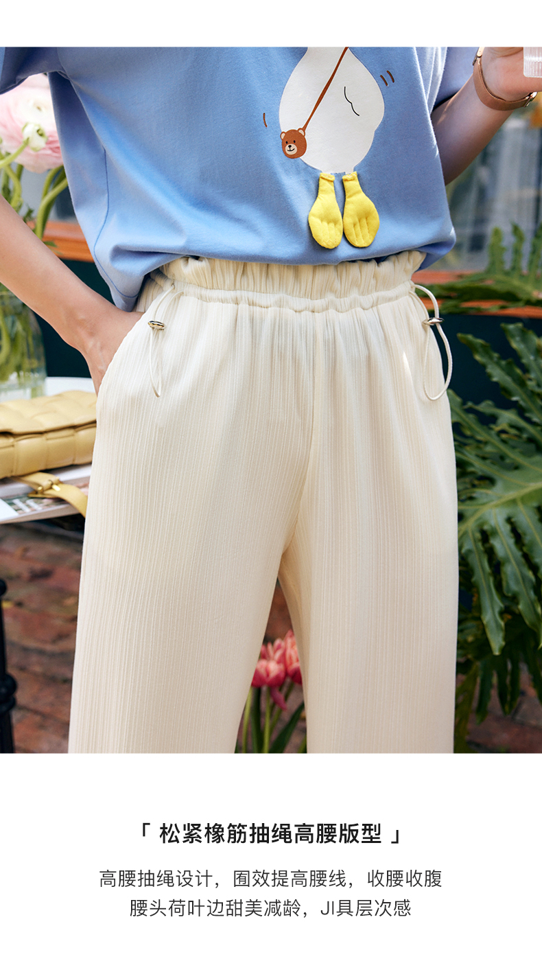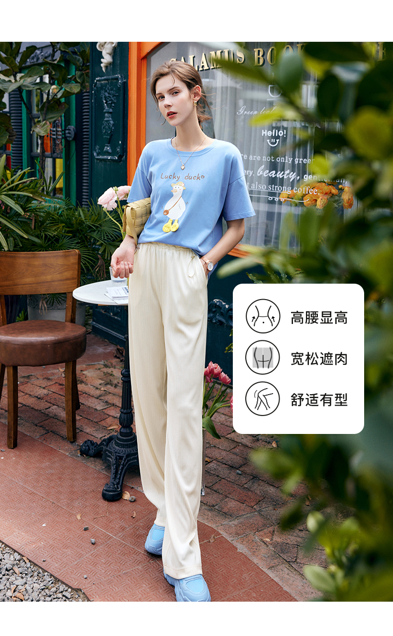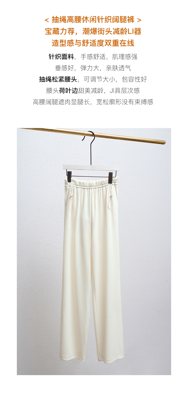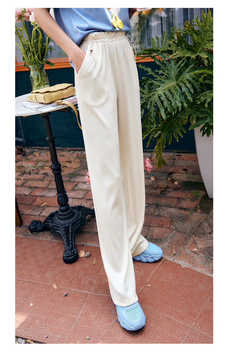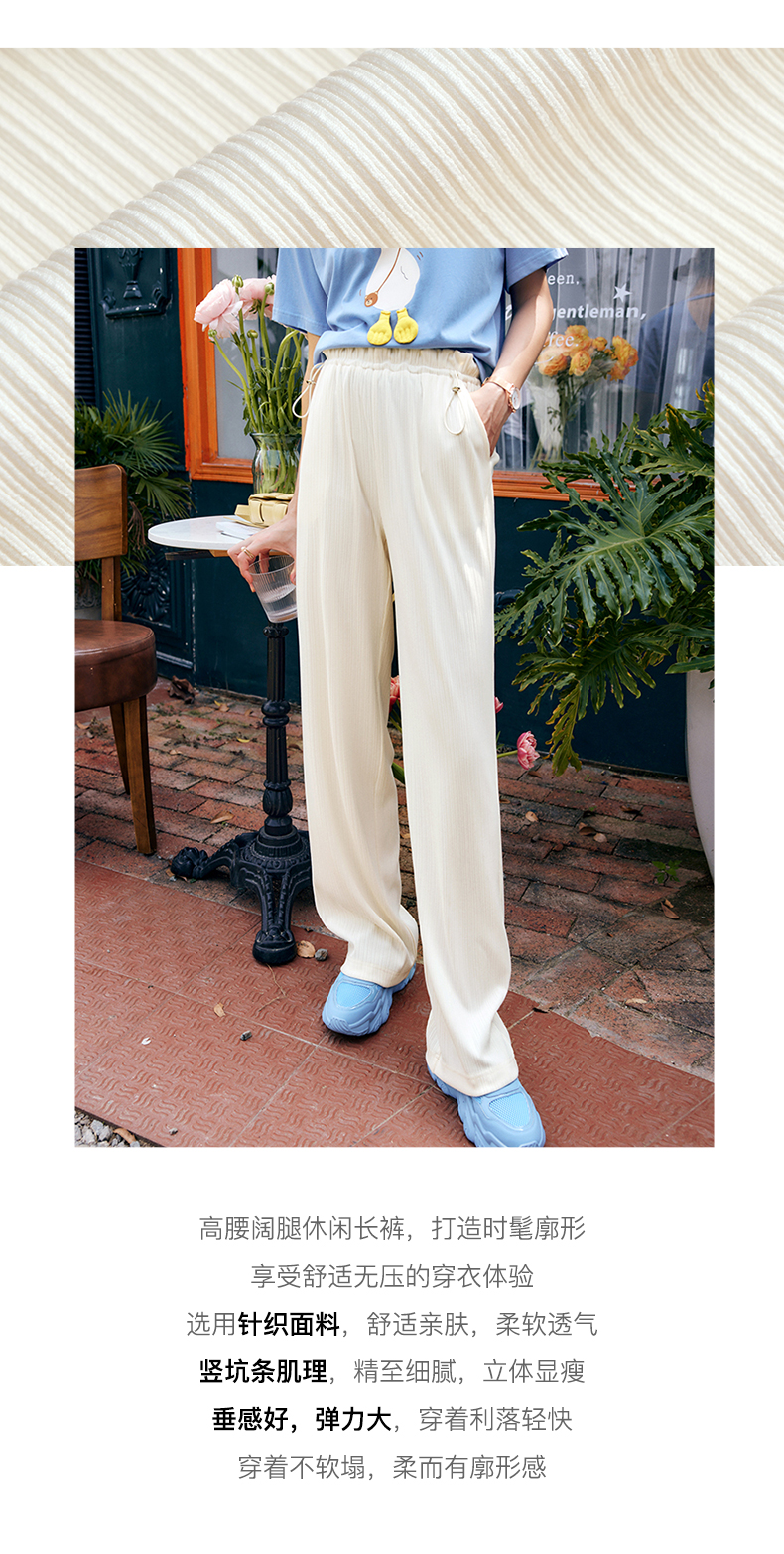 欧芮儿针织休闲裤女夏季2022新款高腰时尚直筒阔腿运动抽绳拖地裤