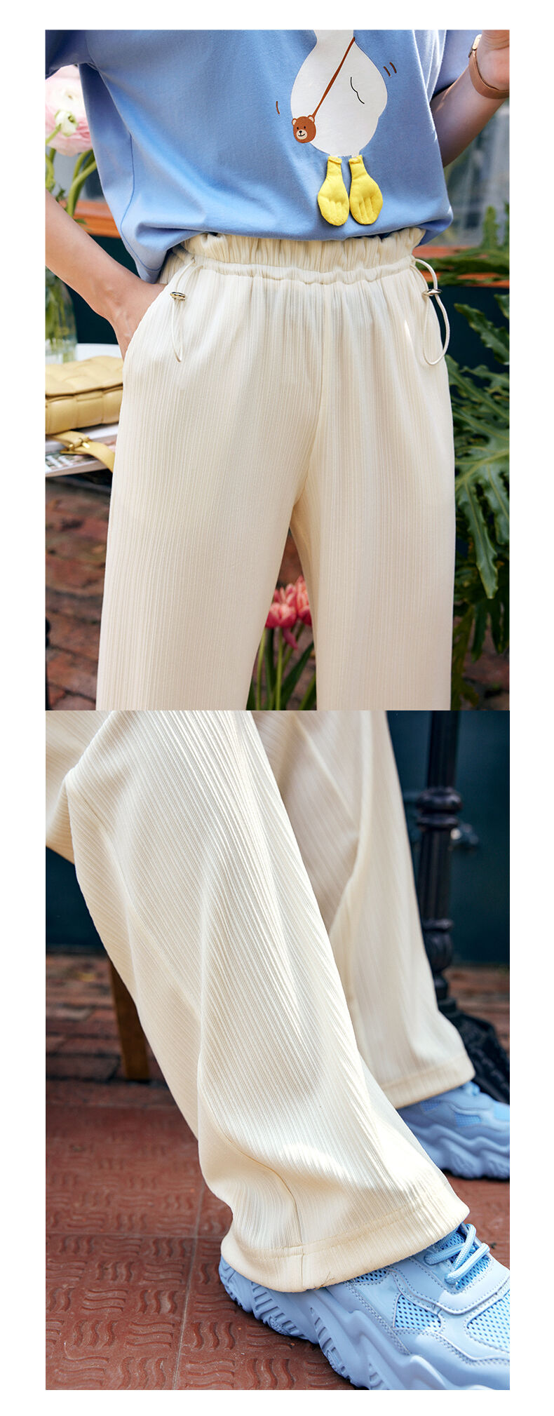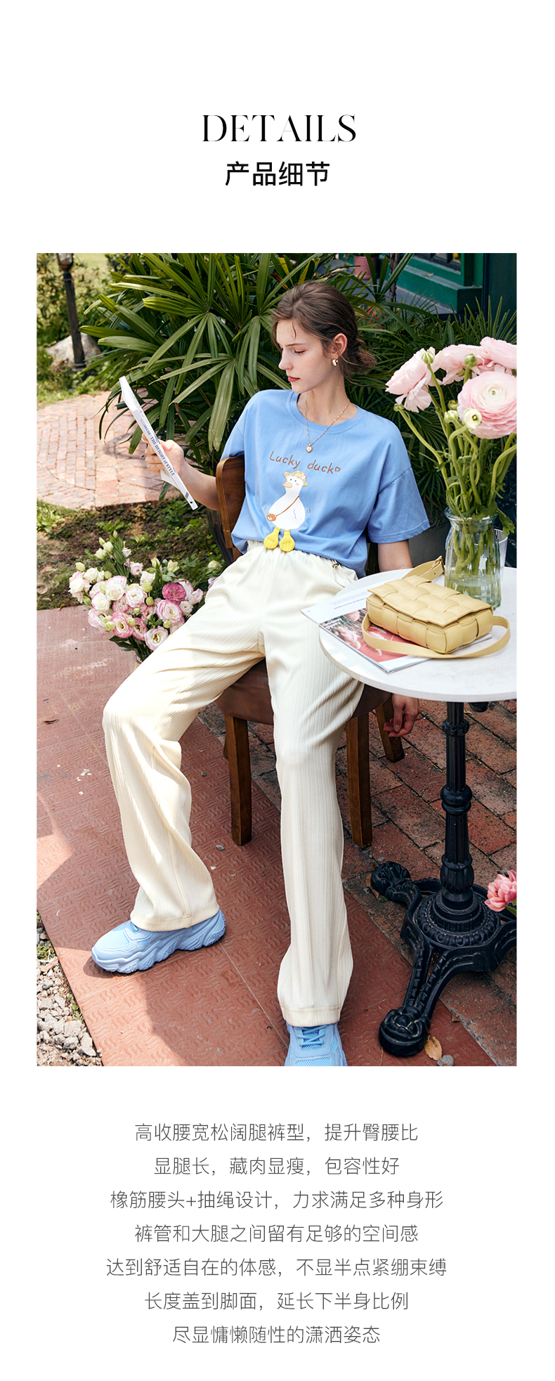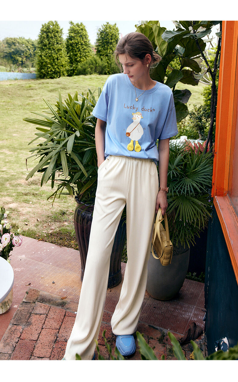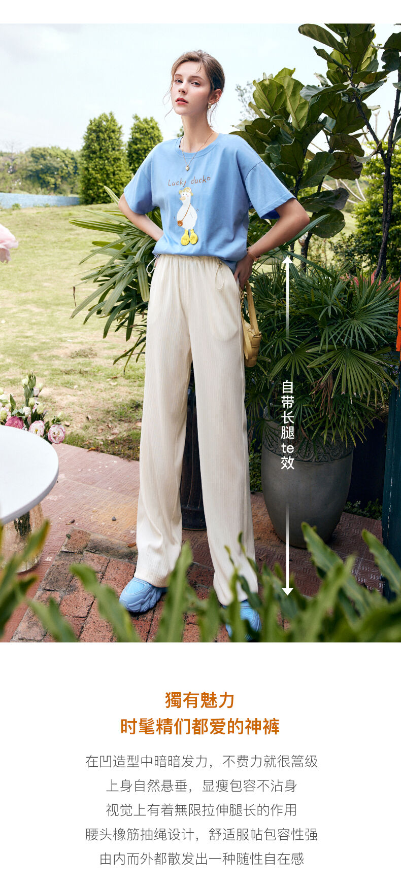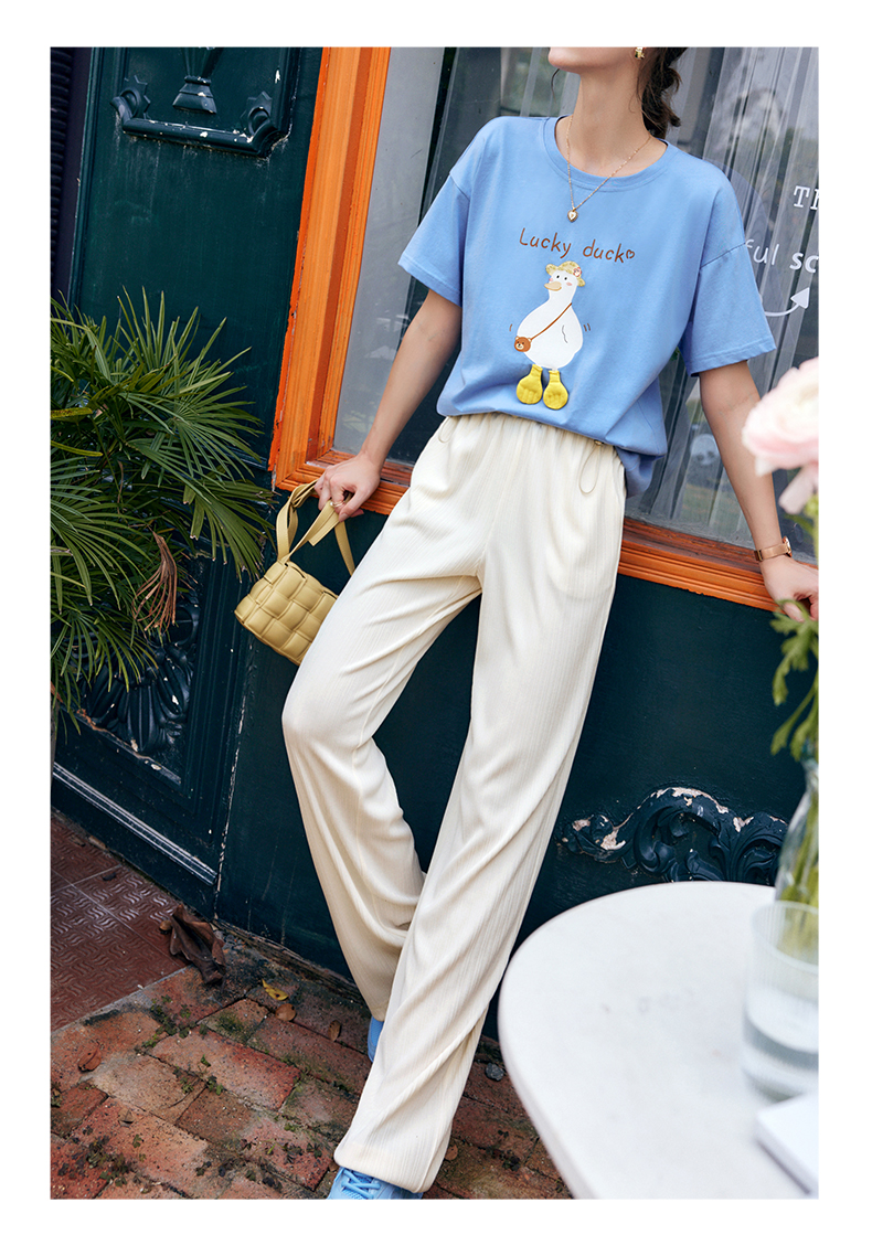 欧芮儿针织休闲裤女夏季2022新款高腰时尚直筒阔腿运动抽绳拖地裤