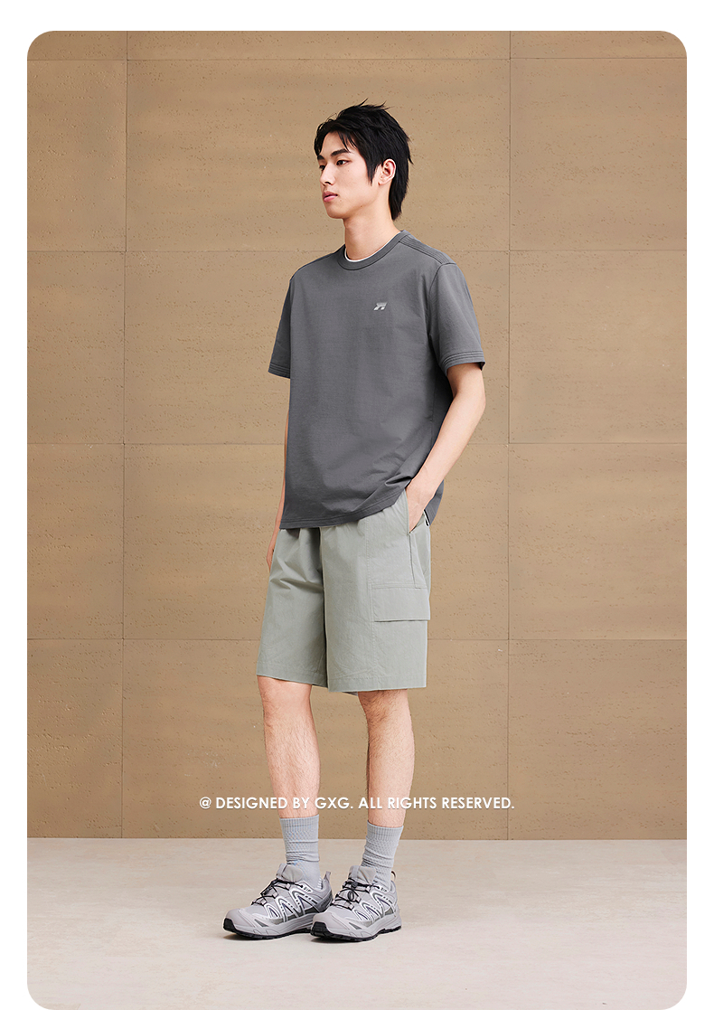GXG男装 轻水洗质感休闲短裤分割五分裤通勤男裤子 2025夏季新品
