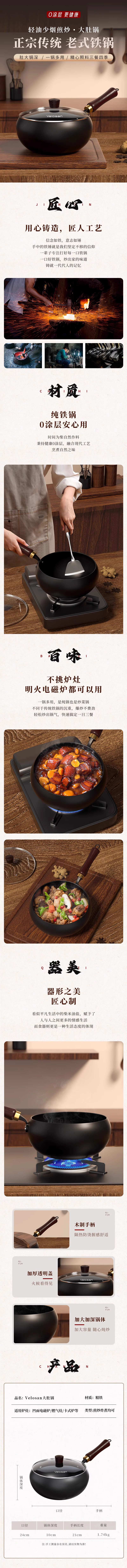 温仑山 鹅卵石锻打大肚炒锅26cm VP-1FCG01