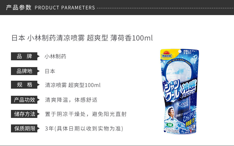 KOBAYASHI/小林制药 清凉喷雾 超爽型 薄荷香新款 100MLJPY带授权招加盟代理
