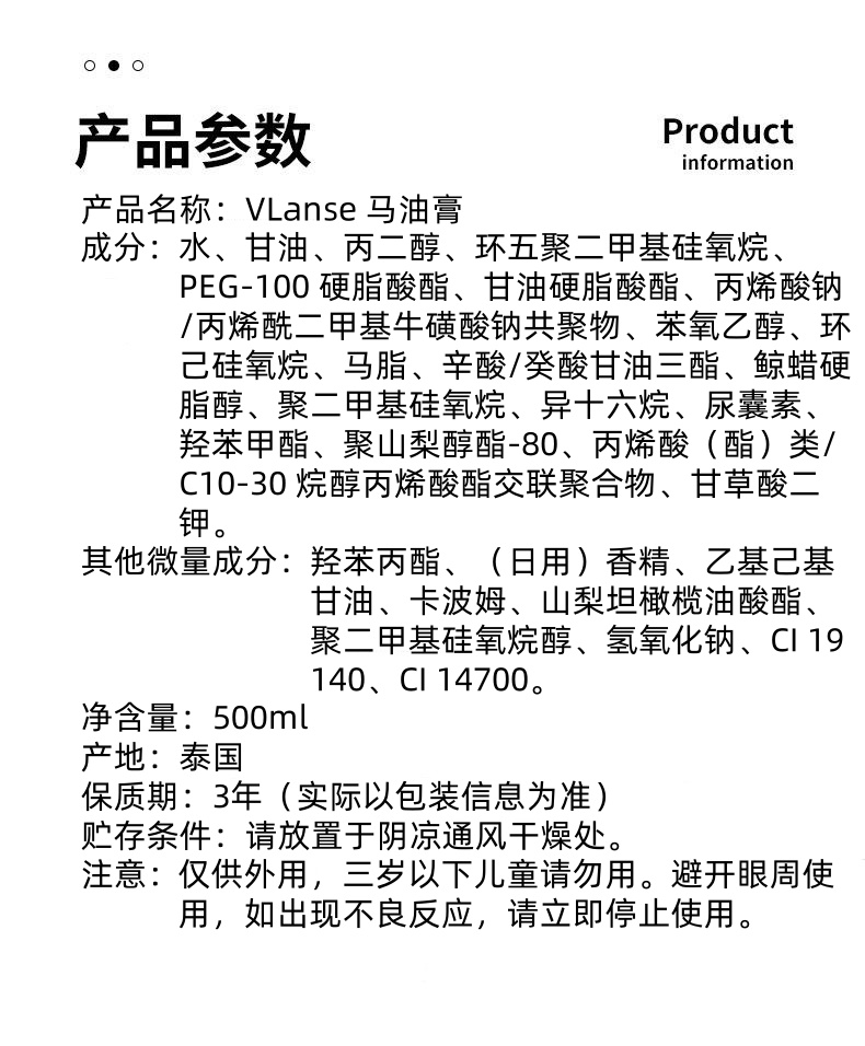 泰国进口VLanse 马油膏500ml